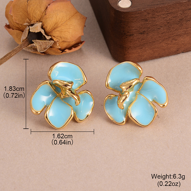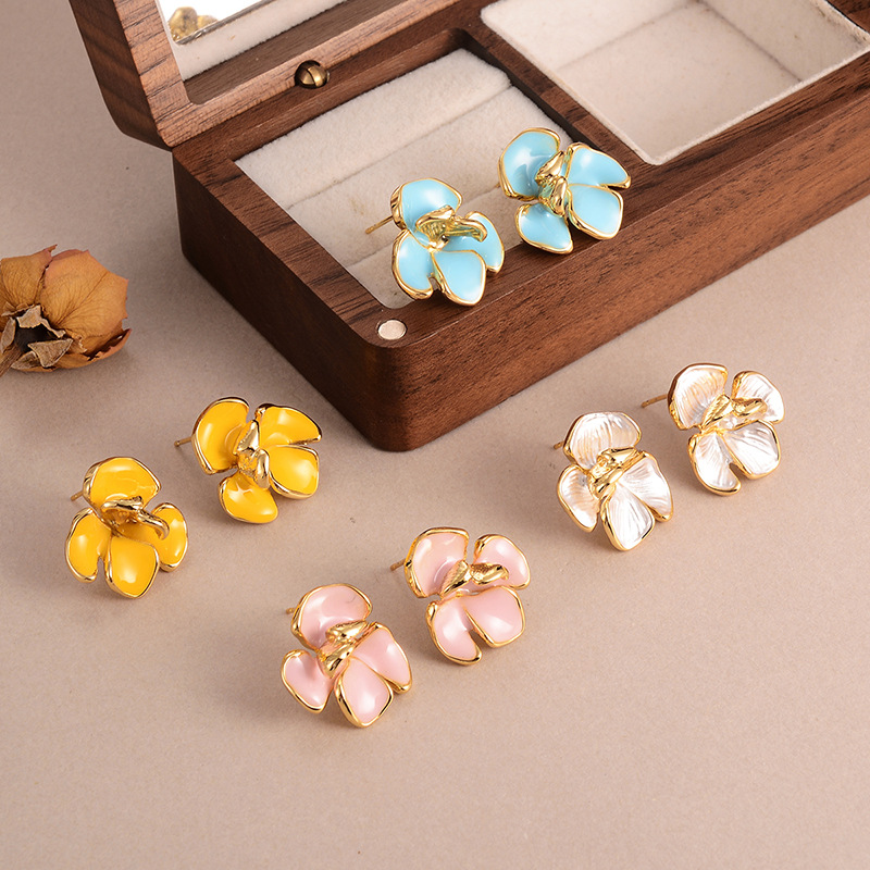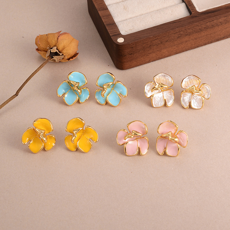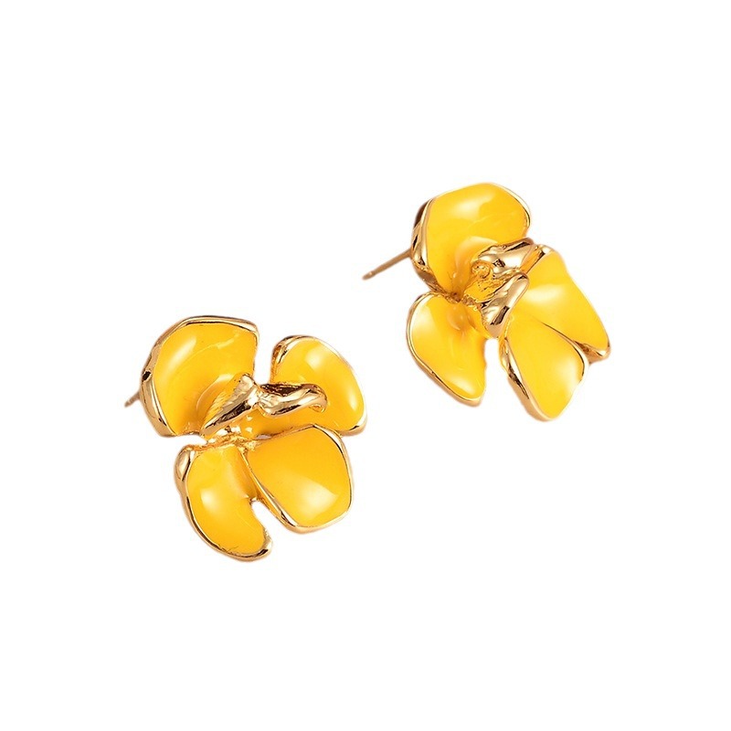 Zinklegering oorknoppen, Zinc Alloy, Bloem, plated, mode sieraden & voor vrouw & glazuur, gouden, Verkocht door pair