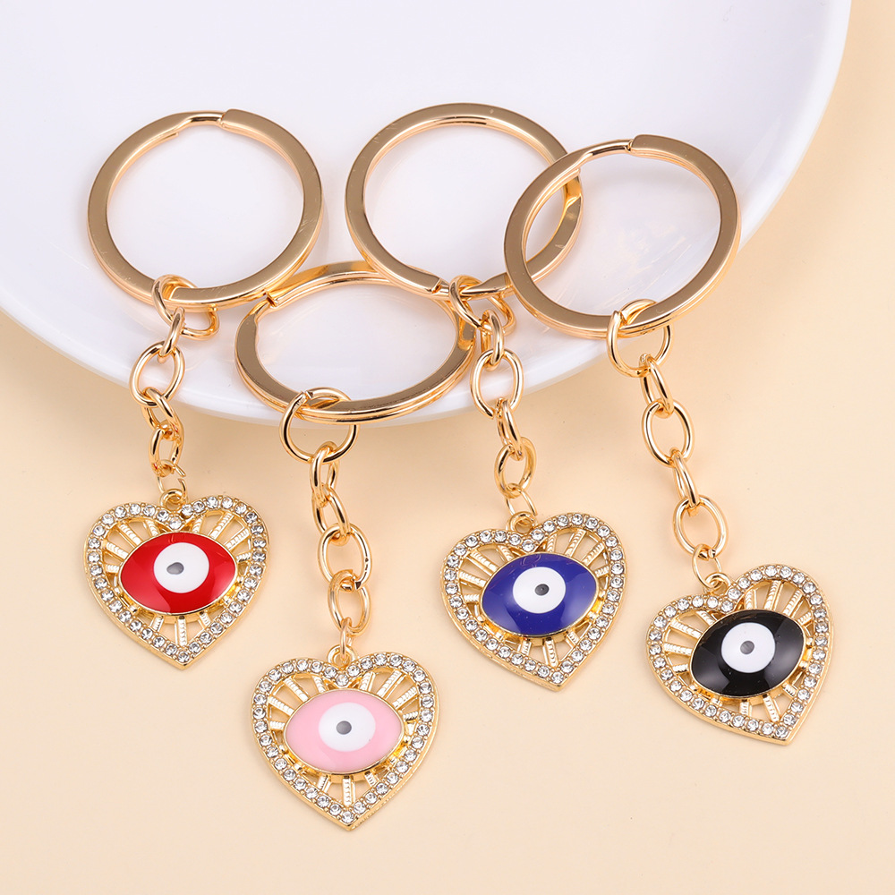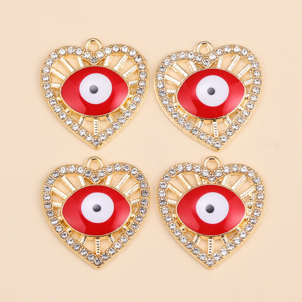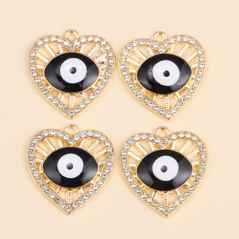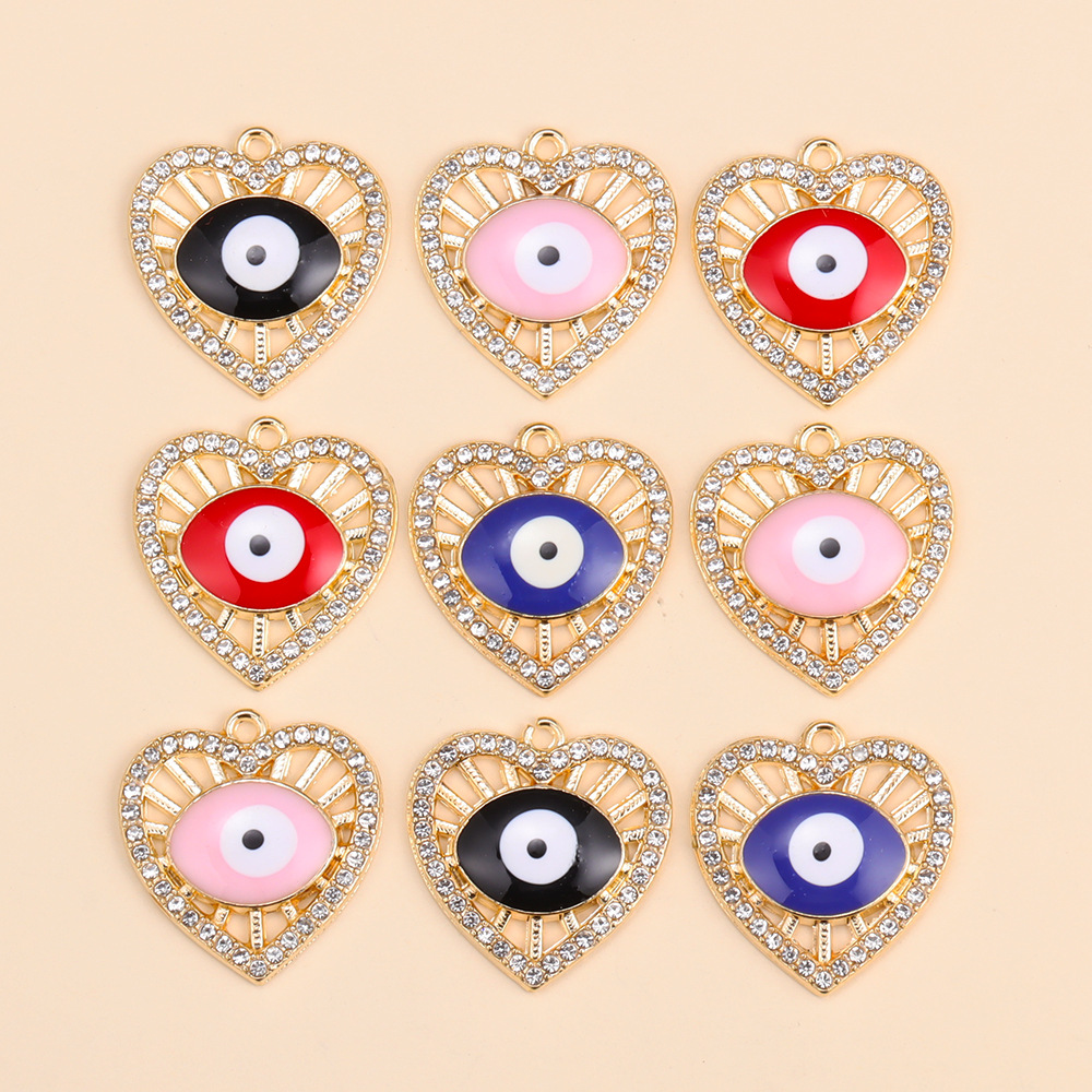 Zinklegering strass hangers, Zinc Alloy, Hart, gold plated, DIY & boze oog patroon & glazuur & met strass, meer kleuren voor de keuze, nikkel, lood en cadmium vrij, Verkocht door PC