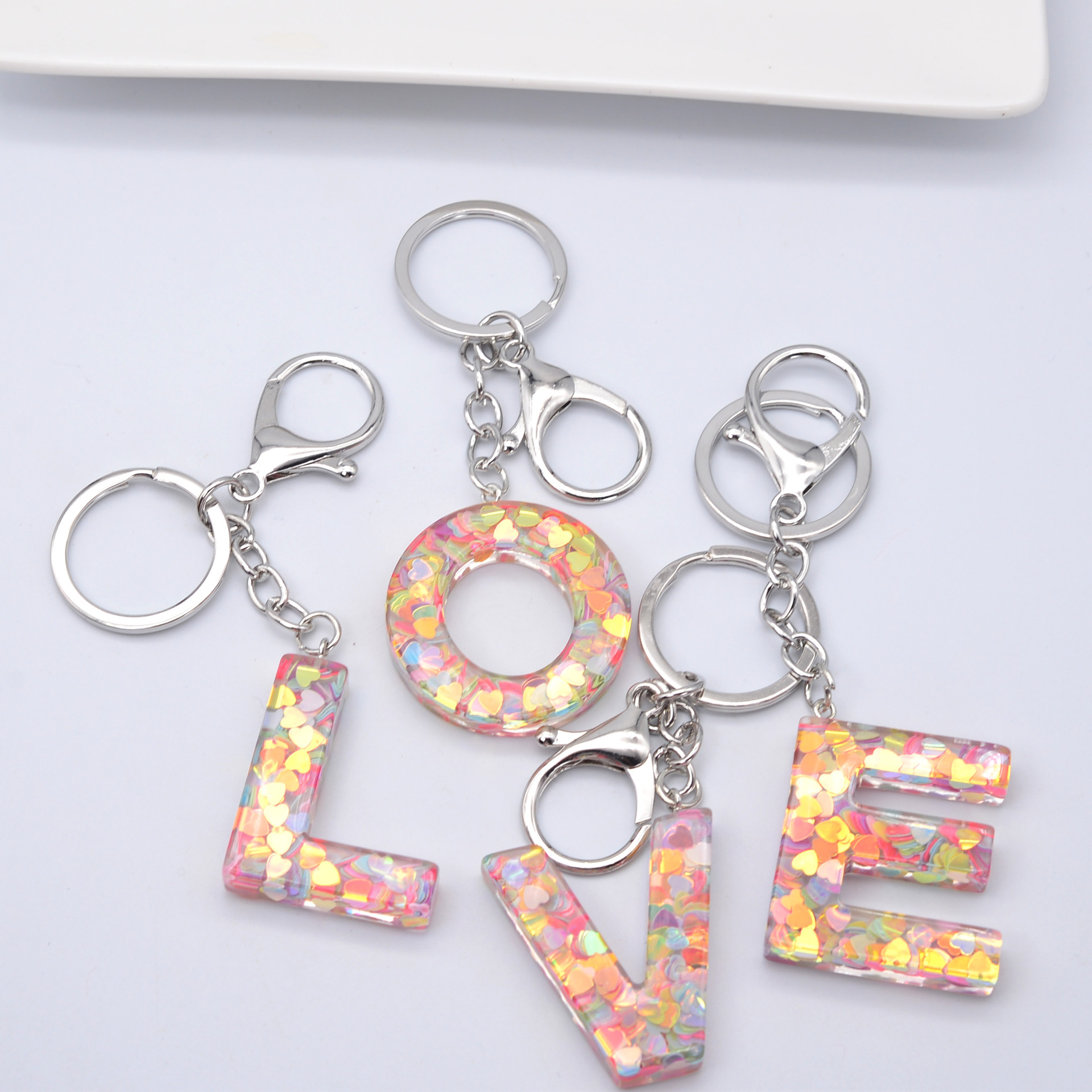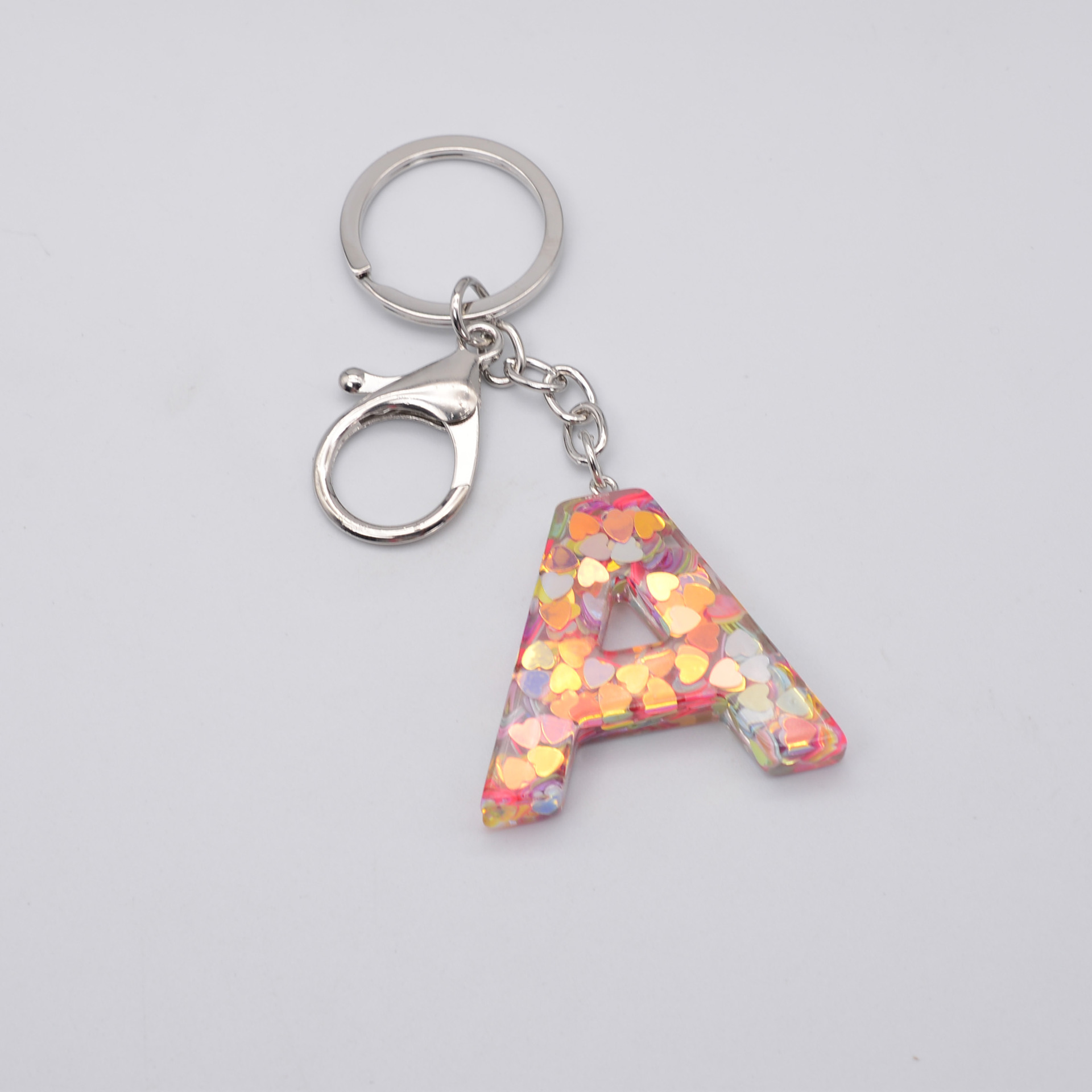 Hars Key Sluiting, met pailletten & Zinc Alloy, De Brief van het alfabet, uniseks & verschillende stijlen voor de keuze & epoxy sticker, 45x40mm, Verkocht door PC