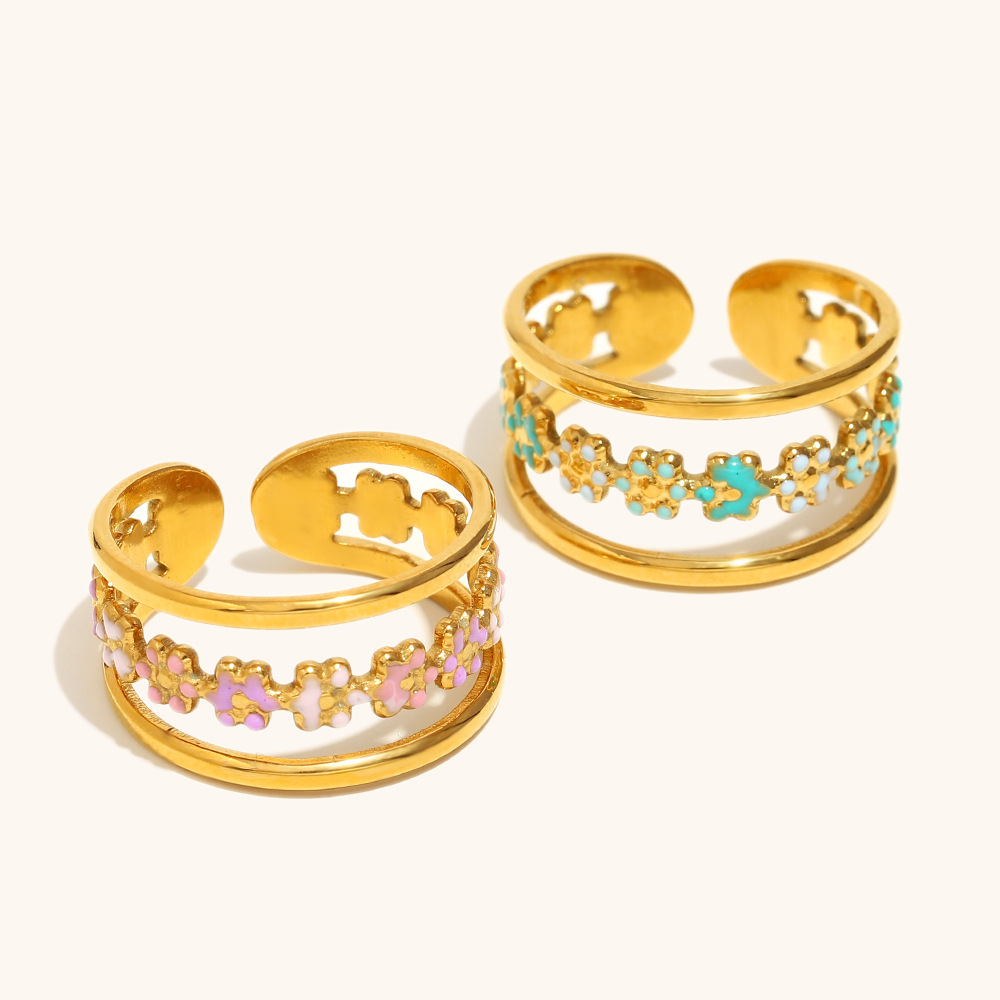 Emaille roestvrij staal vinger ring, 304 roestvrij staal, gold plated, Verstelbare & voor vrouw & glazuur, meer kleuren voor de keuze, Verkocht door PC