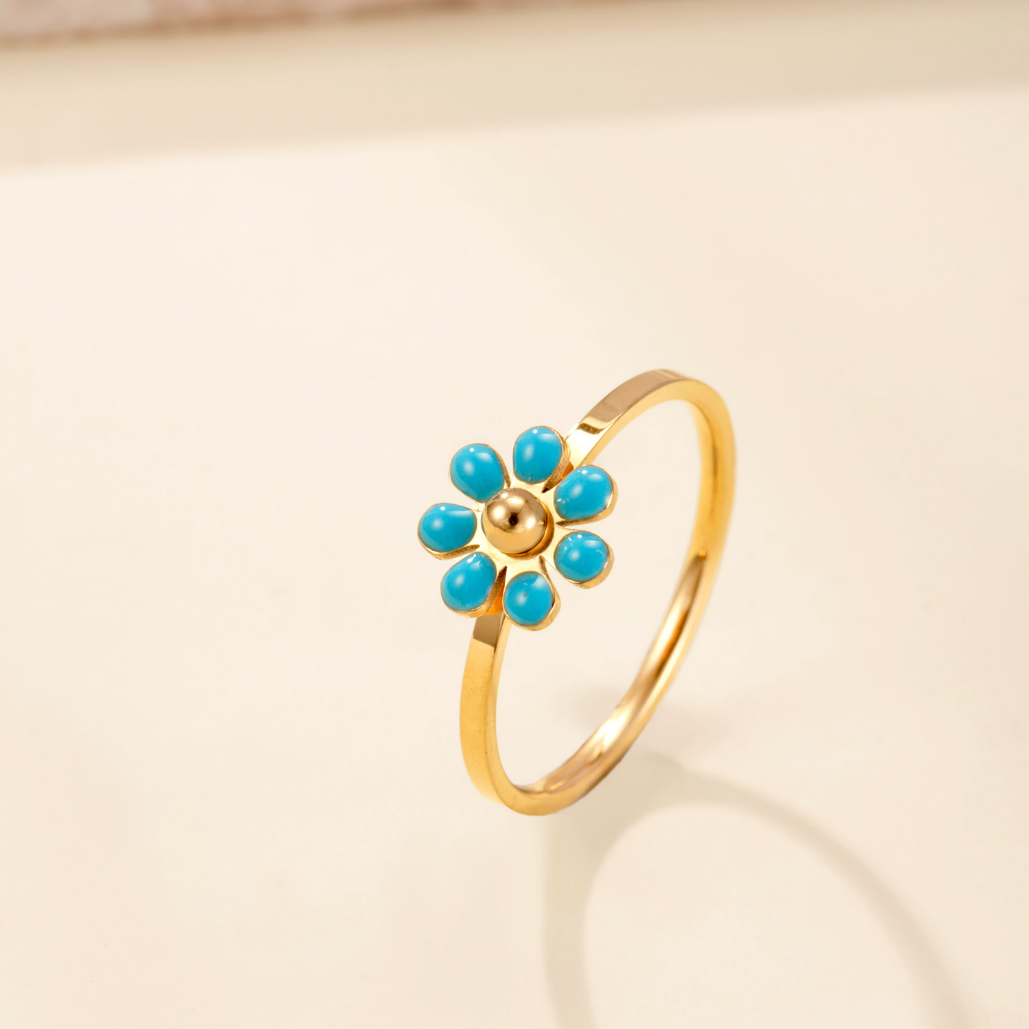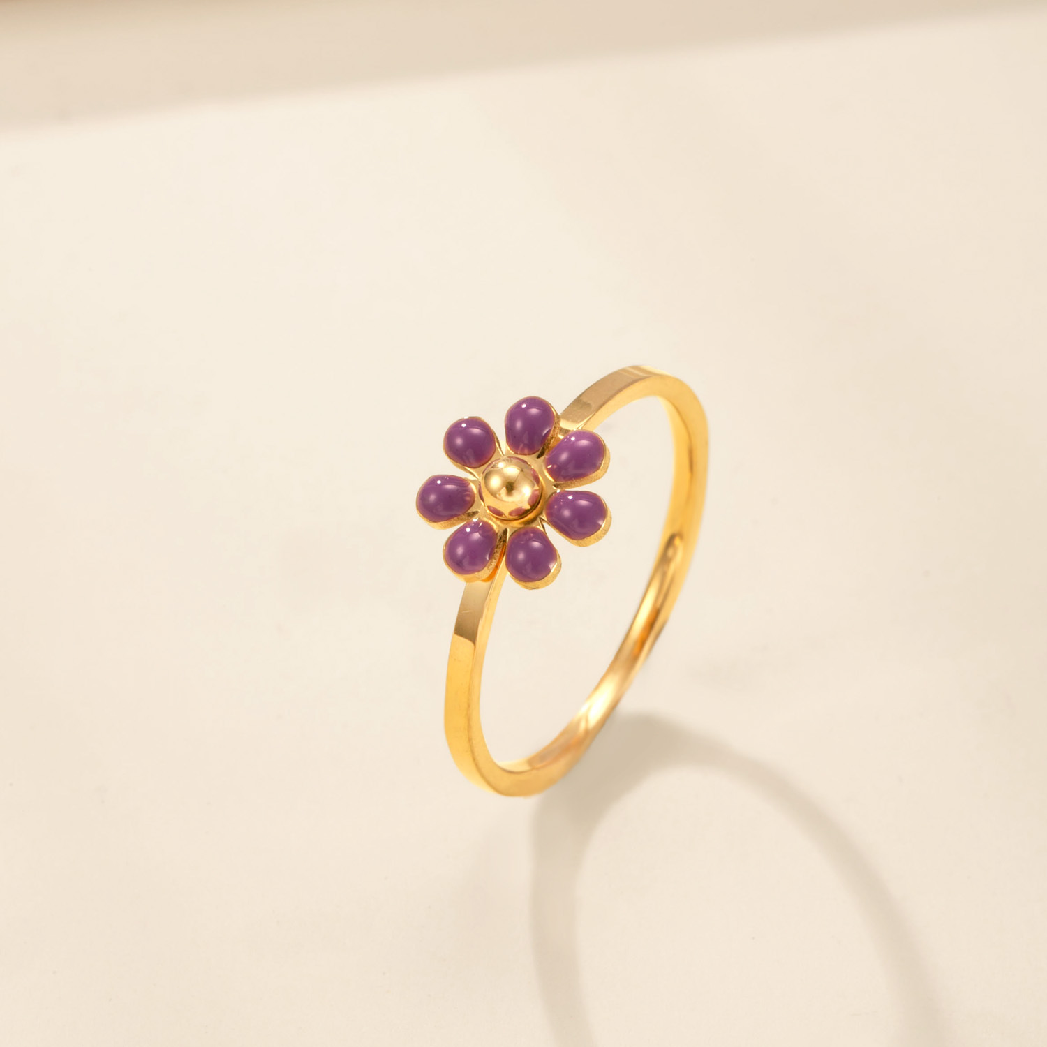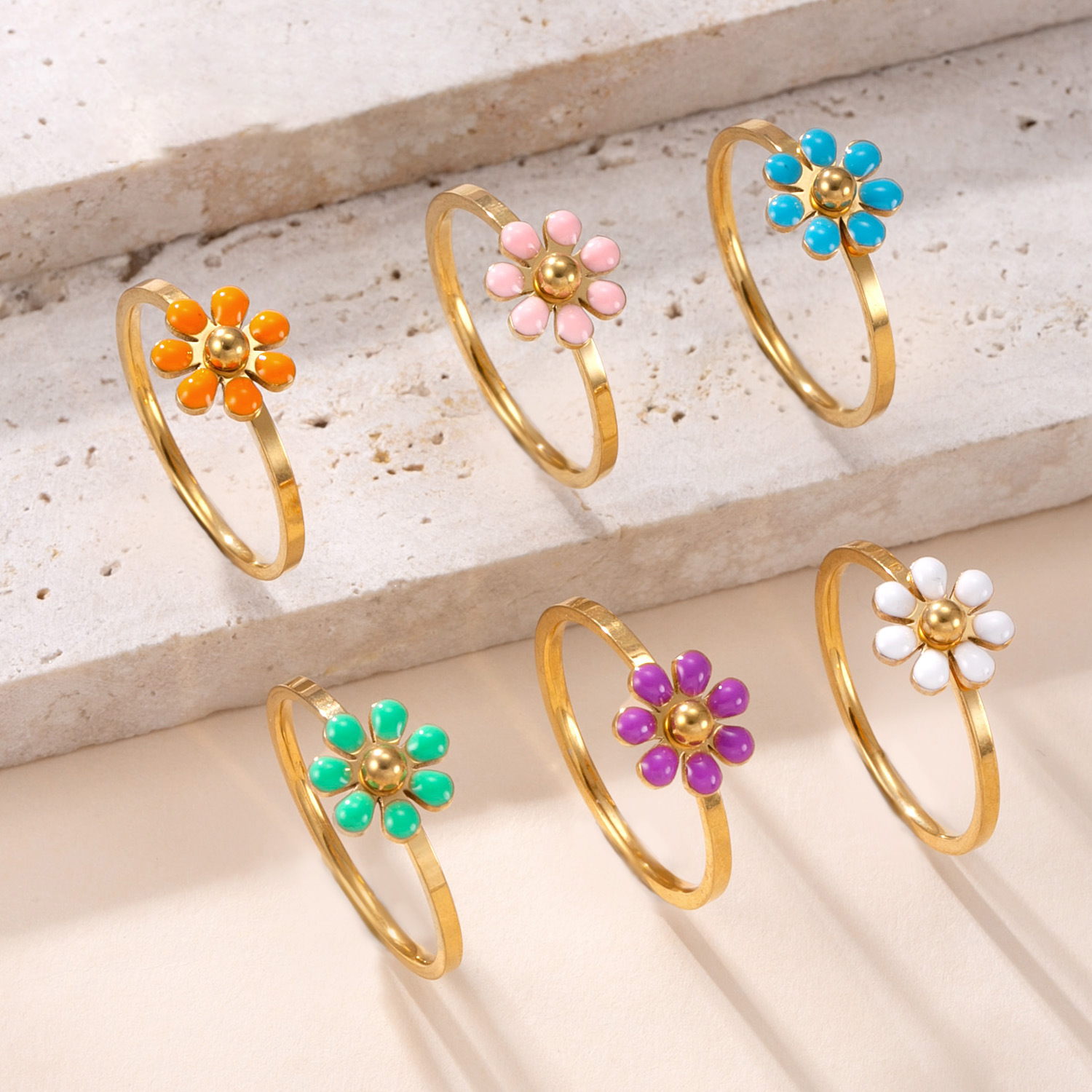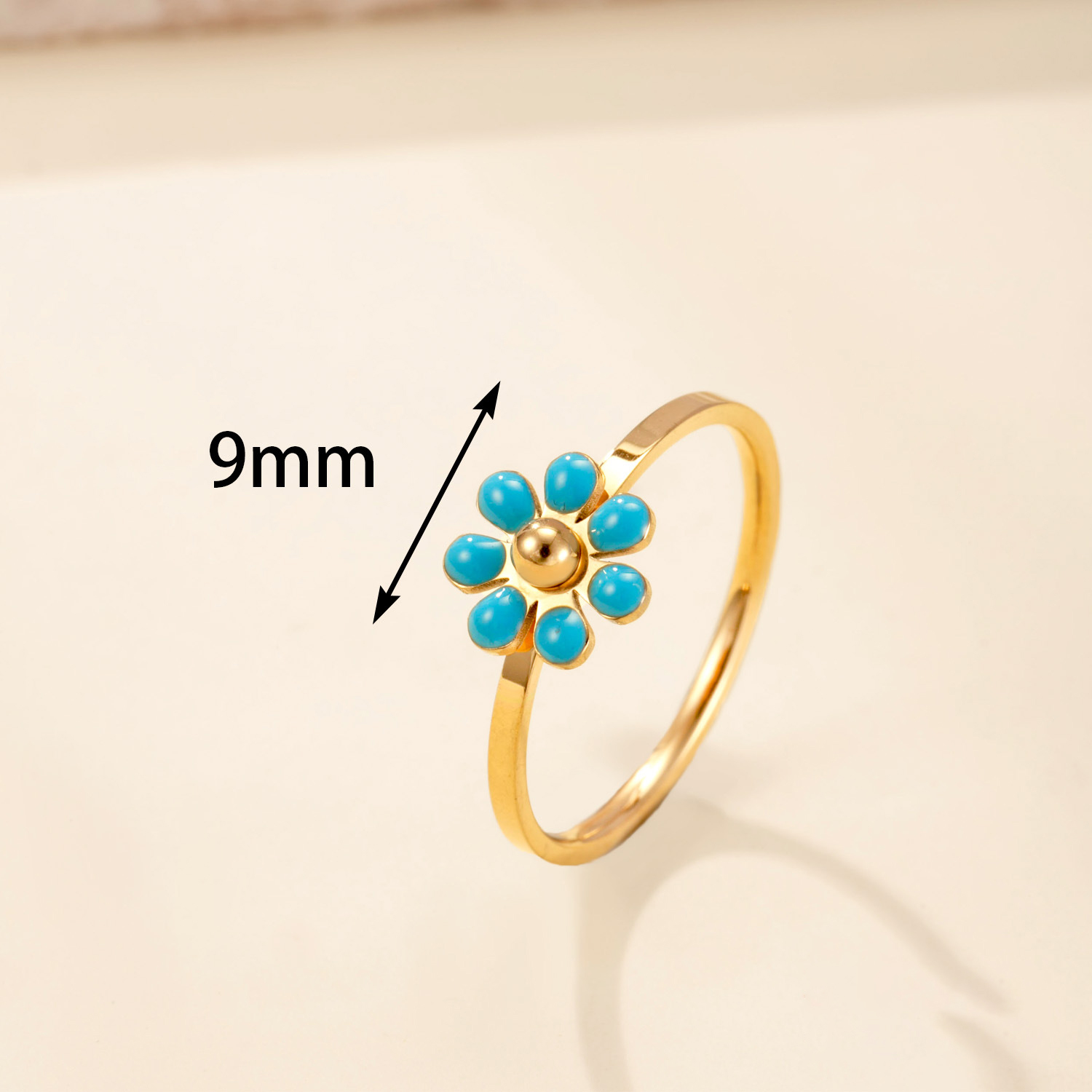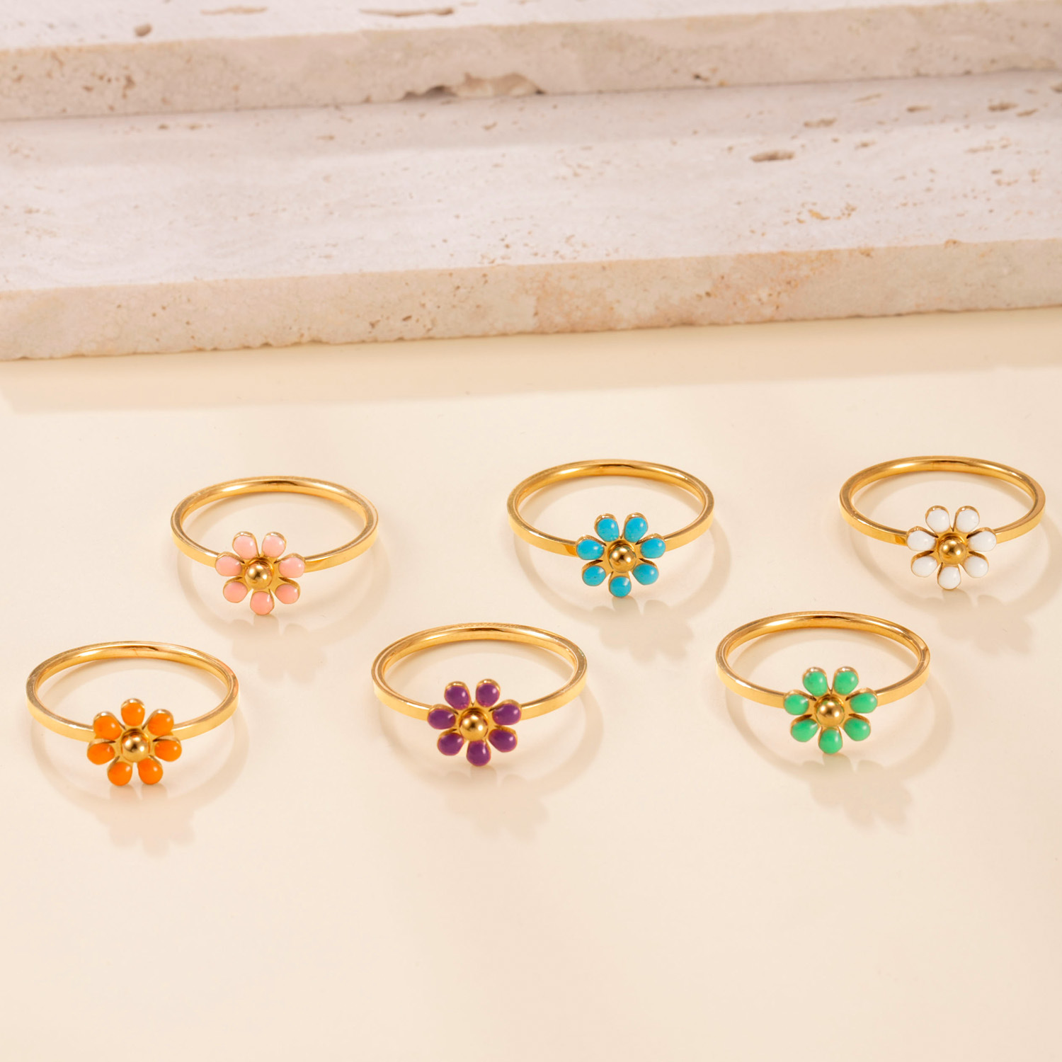 Emaille roestvrij staal vinger ring, 304 roestvrij staal, Bloem, gold plated, uniseks & verschillende grootte voor keus & glazuur, meer kleuren voor de keuze, Verkocht door PC