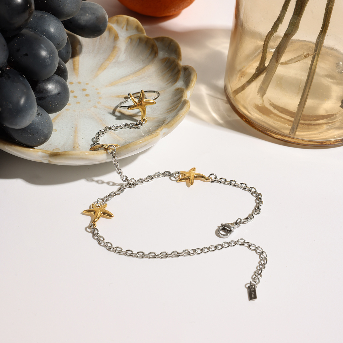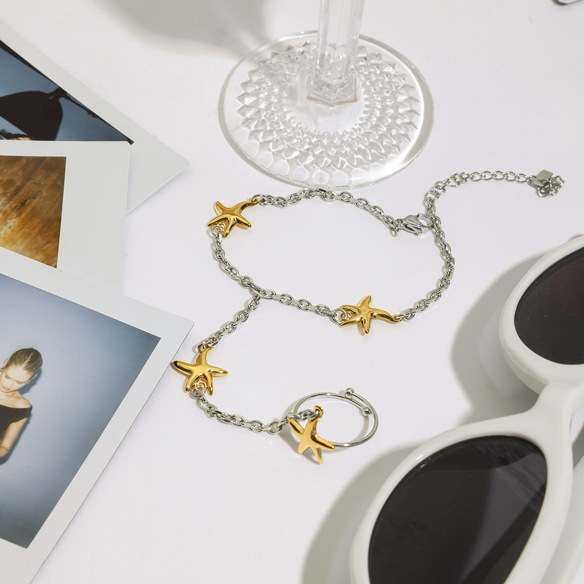 Stal nierdzewna 304 bransoletka połączona z pierścionkiem, Platerowane w kolorze złota, biżuteria moda, dostępnych więcej kolorów, sprzedane przez PC