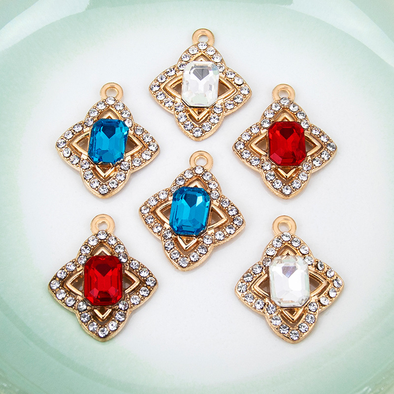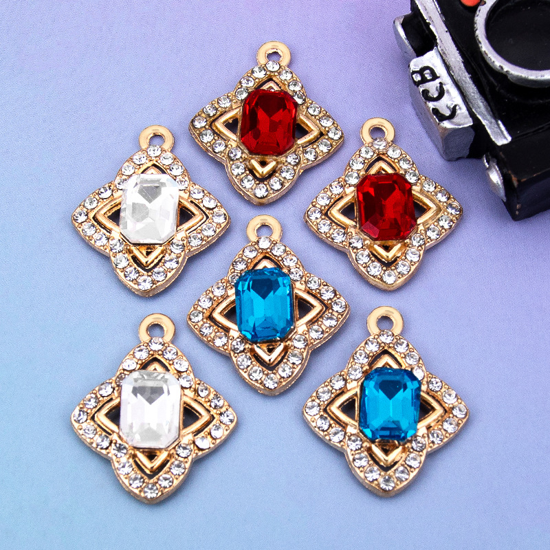 Cynk stopu Rhinestone wisiorki, Stop cynku, Platerowane w kolorze złota, DIY & z kamieniem, dostępnych więcej kolorów, 17x21mm, sprzedane przez PC