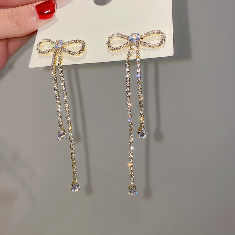 Stop cynku Kolczyk frędzel, Kokarda, Powlekane, dla kobiety & z kamieniem, dostępnych więcej kolorów, 40x100mm, sprzedane przez para