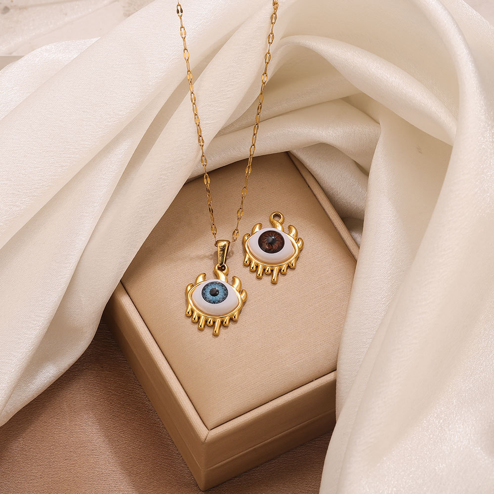 Acrylic Pendants 304 Stainless Steel with Acrylic Evil Eye gold color plated DIY Approx 2mm Sold By PC
