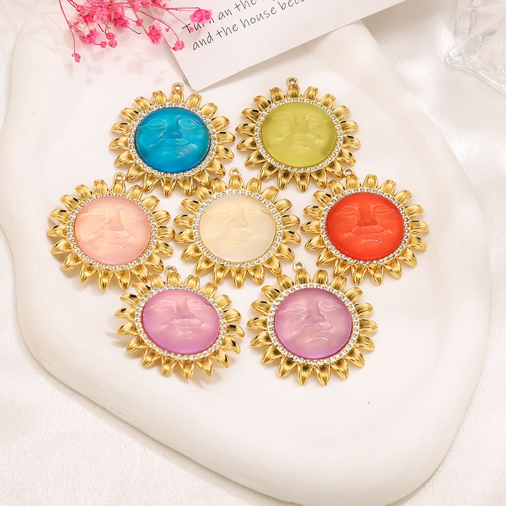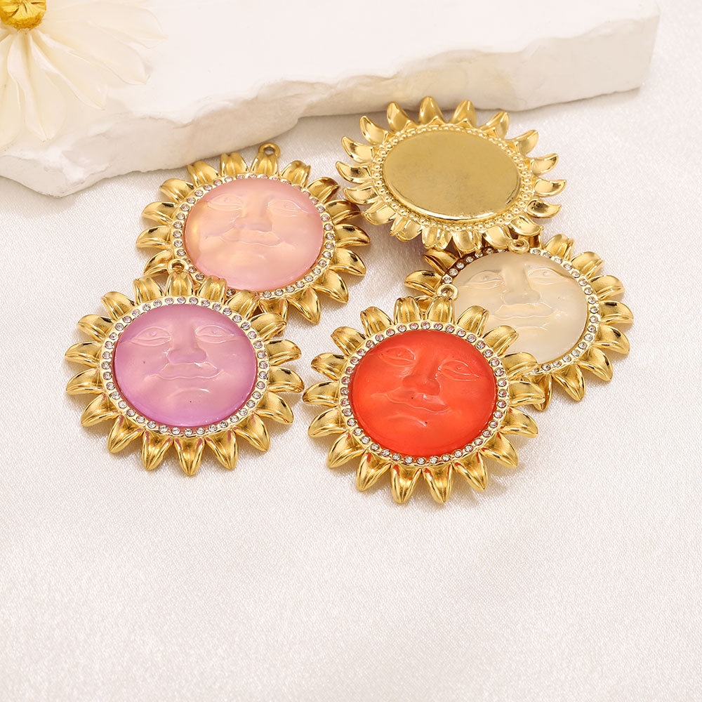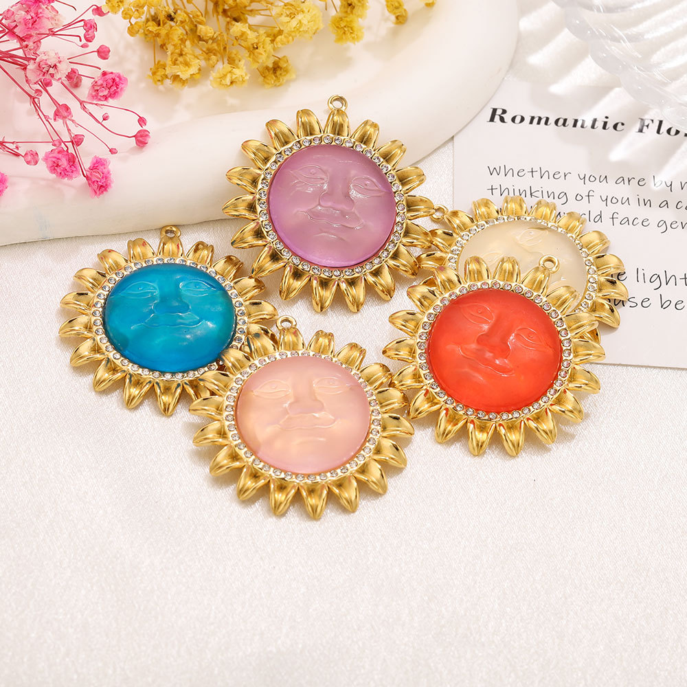 Acrylic Pendants 304 Stainless Steel with Acrylic Flower gold color plated DIY & with rhinestone Approx 1.8mm Sold By PC