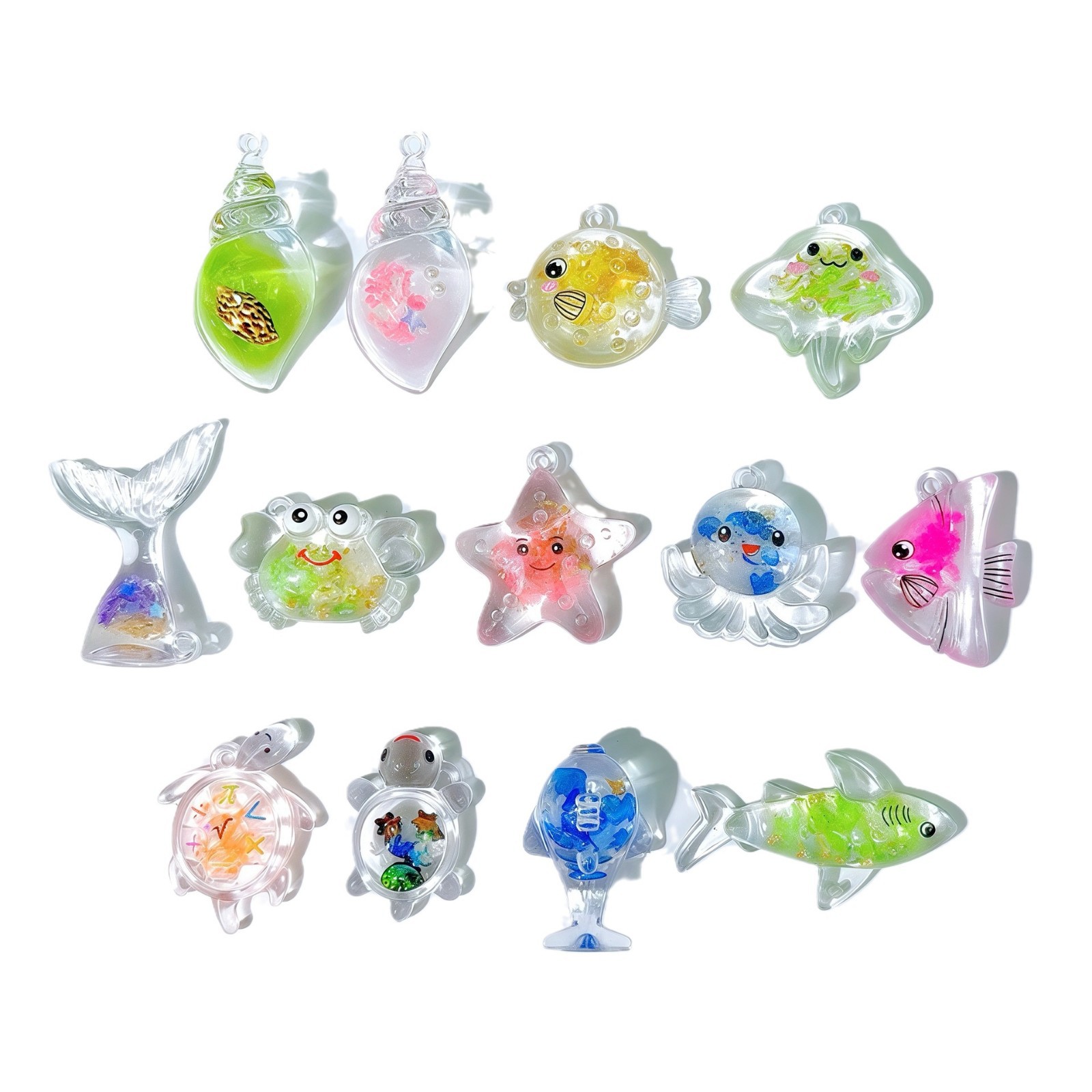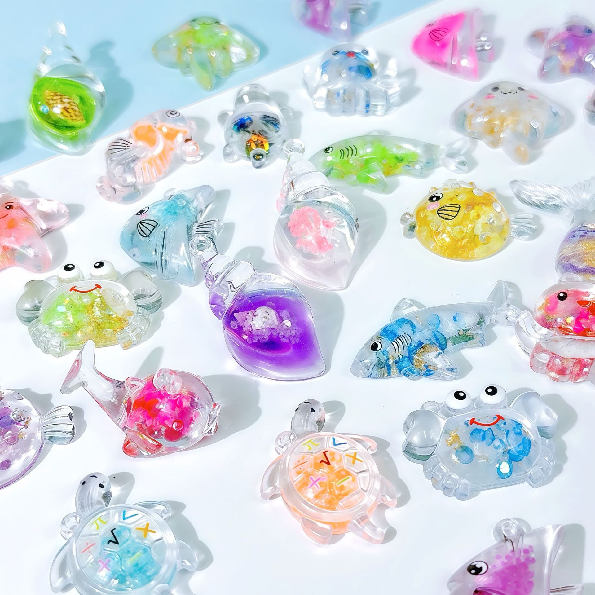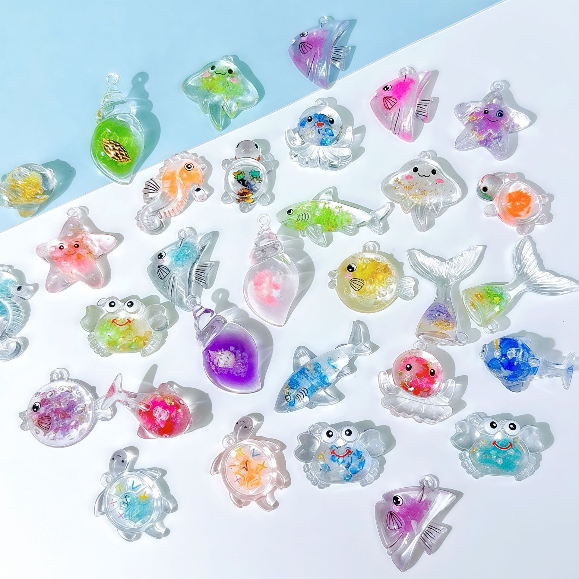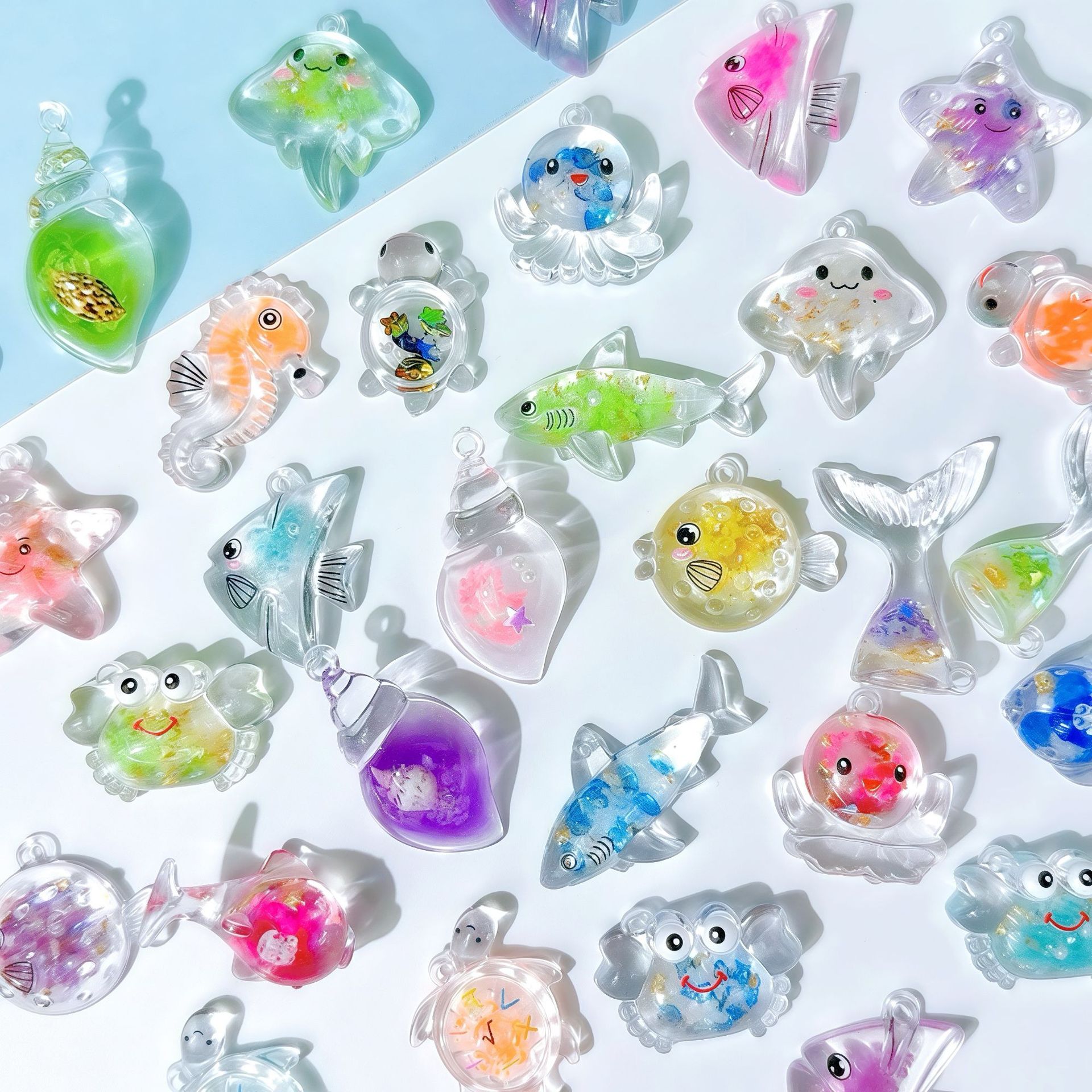 Acrylic Pendants epoxy gel ocean design & mixed pattern & DIY & luminated pendant length 25-40mm Sold By PC