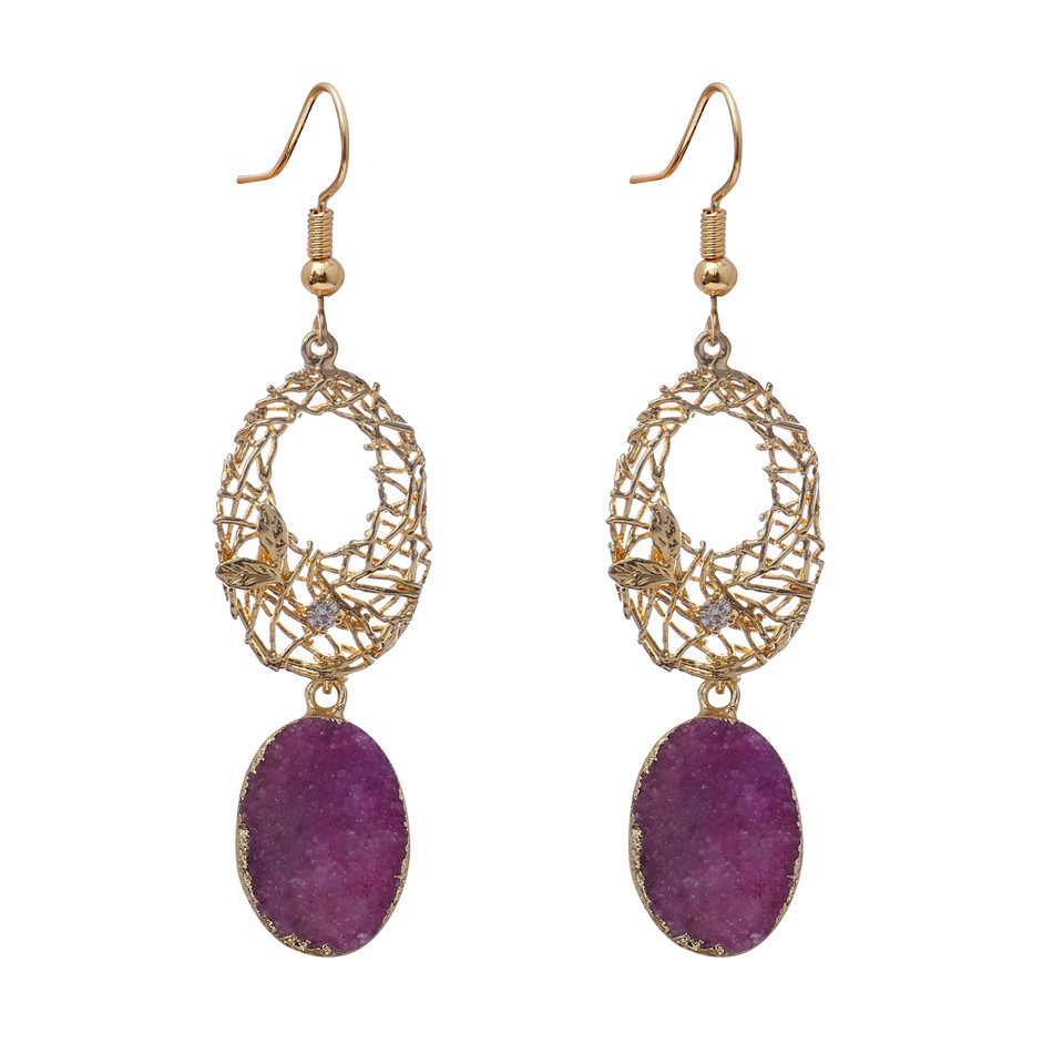 Agate Drop Earring with Brass druzy style & for woman Sold By Pair