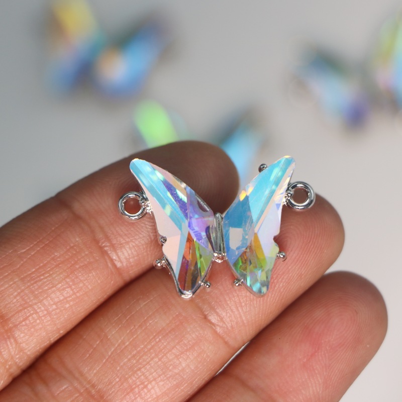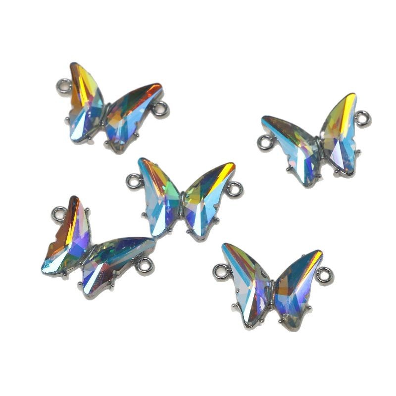 Animal Zinc Alloy Connector Crystal with Zinc Alloy Butterfly plated DIY & 1/1 loop multi-colored Sold By PC