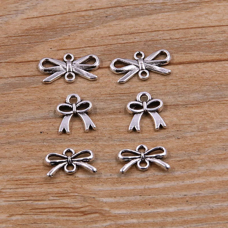 Bowknot Zinc Alloy Connector silver color plated DIY & 1/1 loop silver color Sold By Bag
