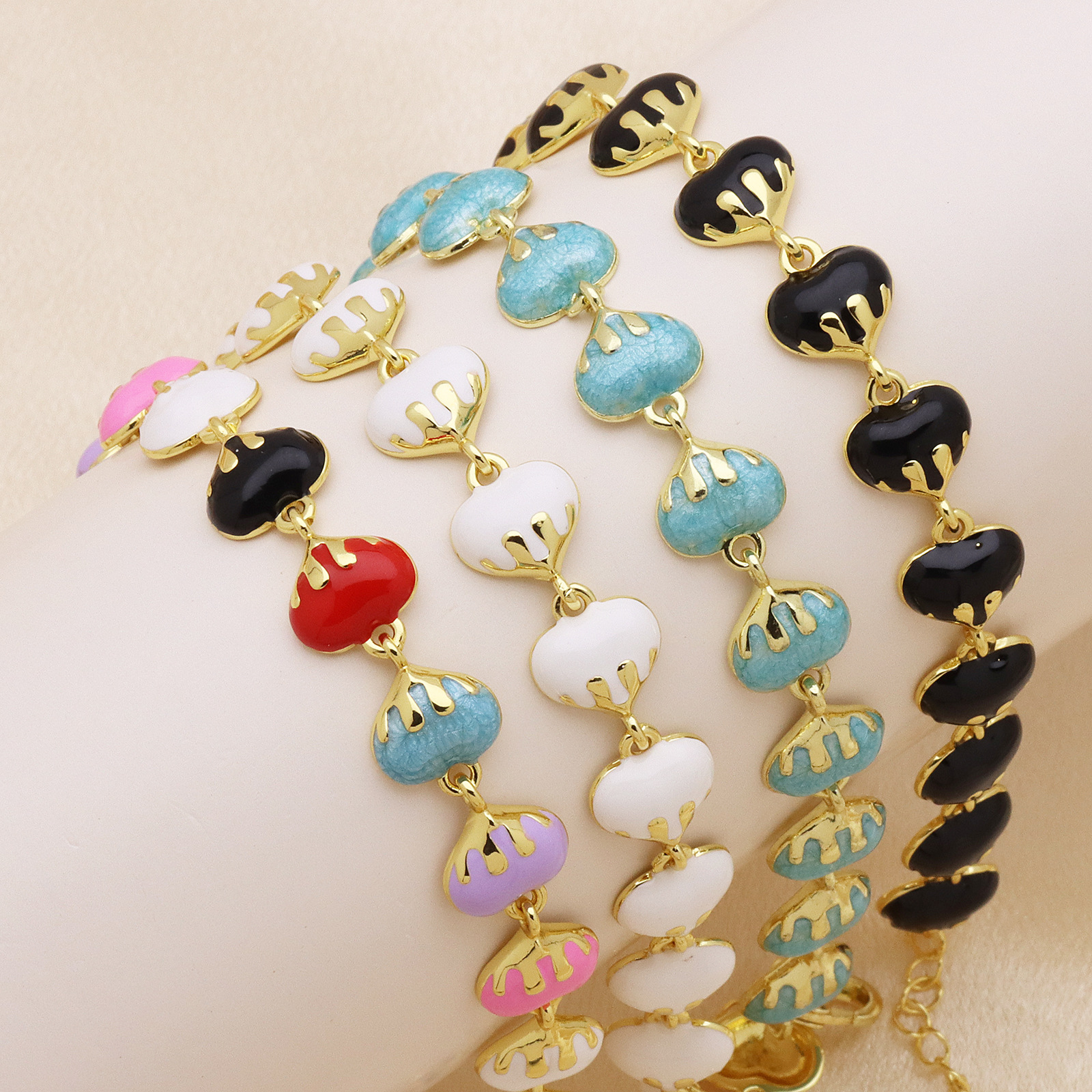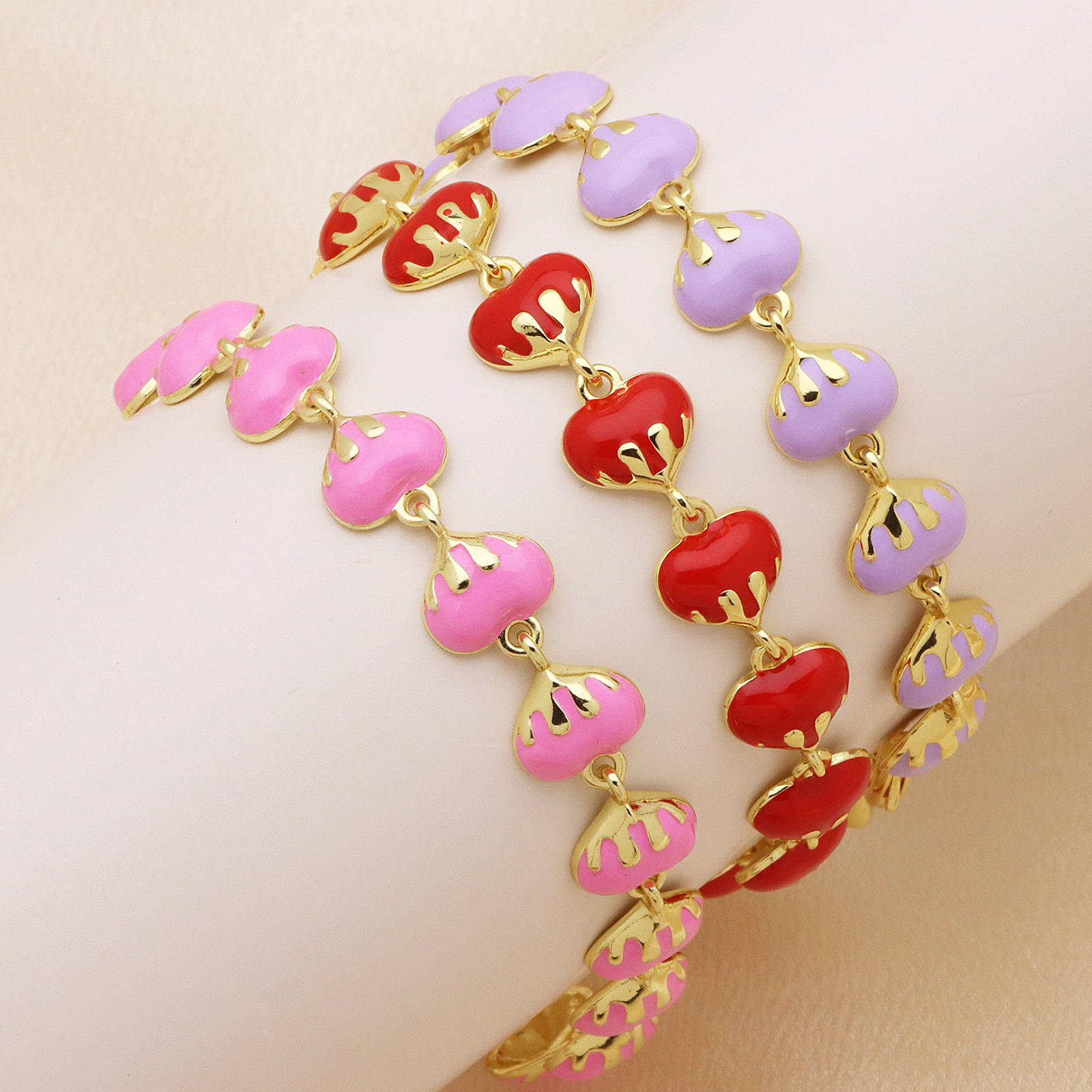 Brass Bracelet & Bangle Heart gold color plated & for woman & enamel 10mm Sold Per Approx 18 cm Strand