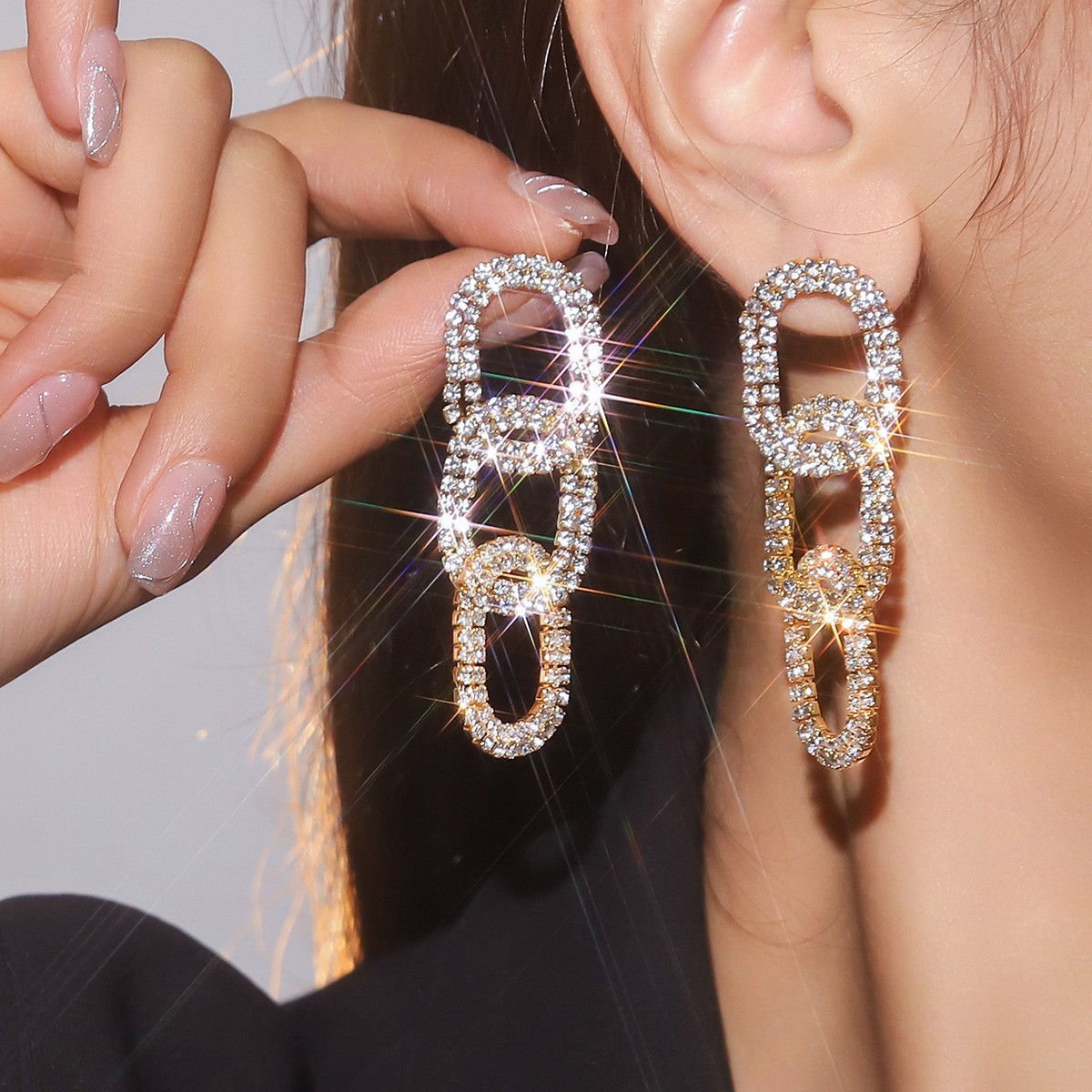 Copper Alloy Drop Earring fashion jewelry & for woman & with rhinestone Sold By Pair