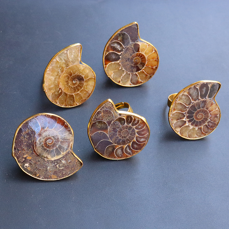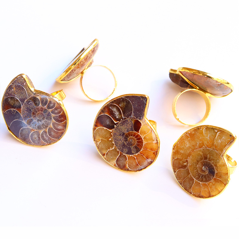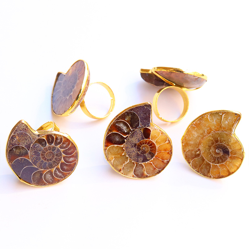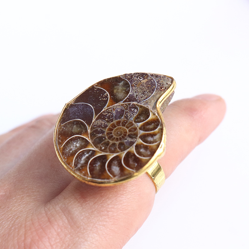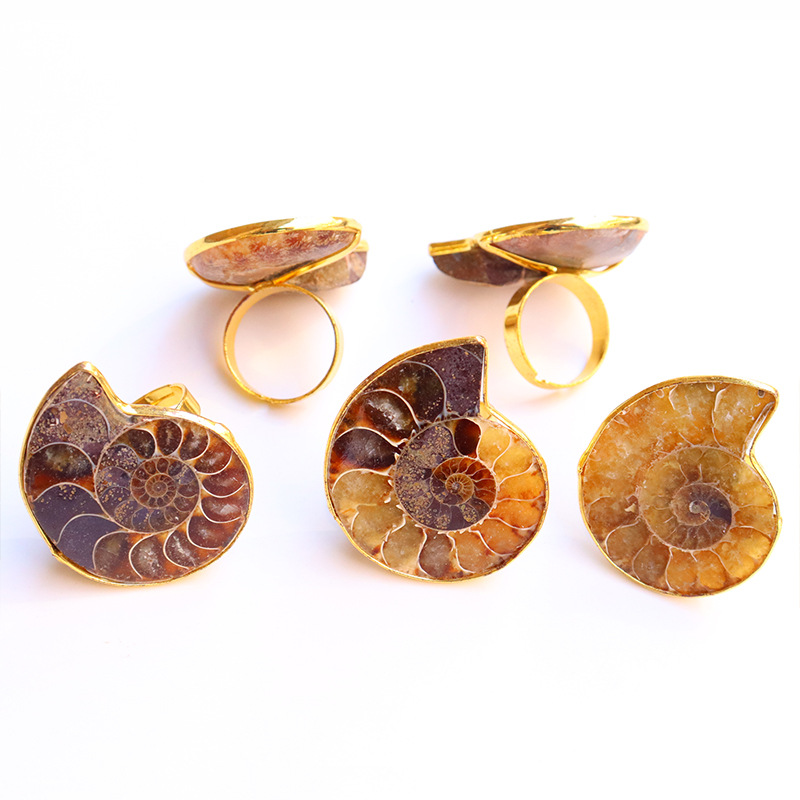Brass Finger Ring with Trumpet Shell Fossil Conch gold color plated Unisex brown nickel lead & cadmium free inner ~20mm Sold By PC