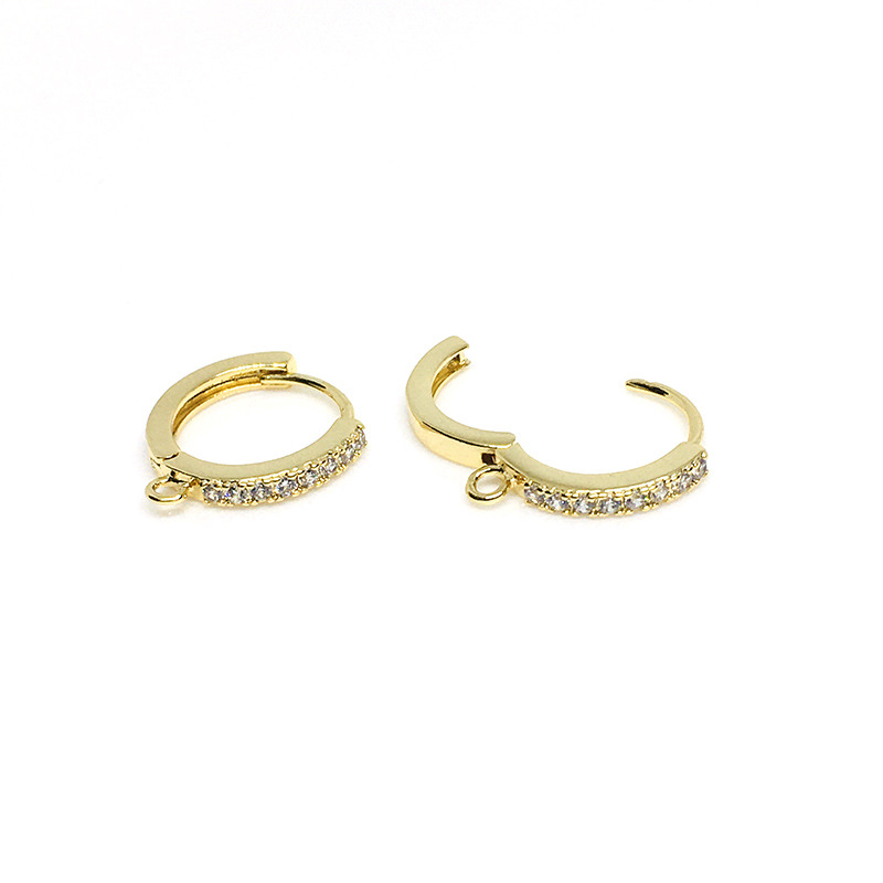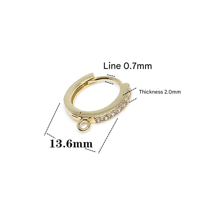 Brass Hoop Earring Components plated DIY & micro pave cubic zirconia 13.60mm Sold By Bag