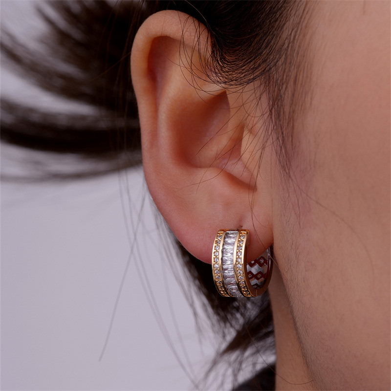 Brass Huggie Hoop Earring, plated, fashion jewelry & with rhinestone, more colors for choice, Sold By Pair