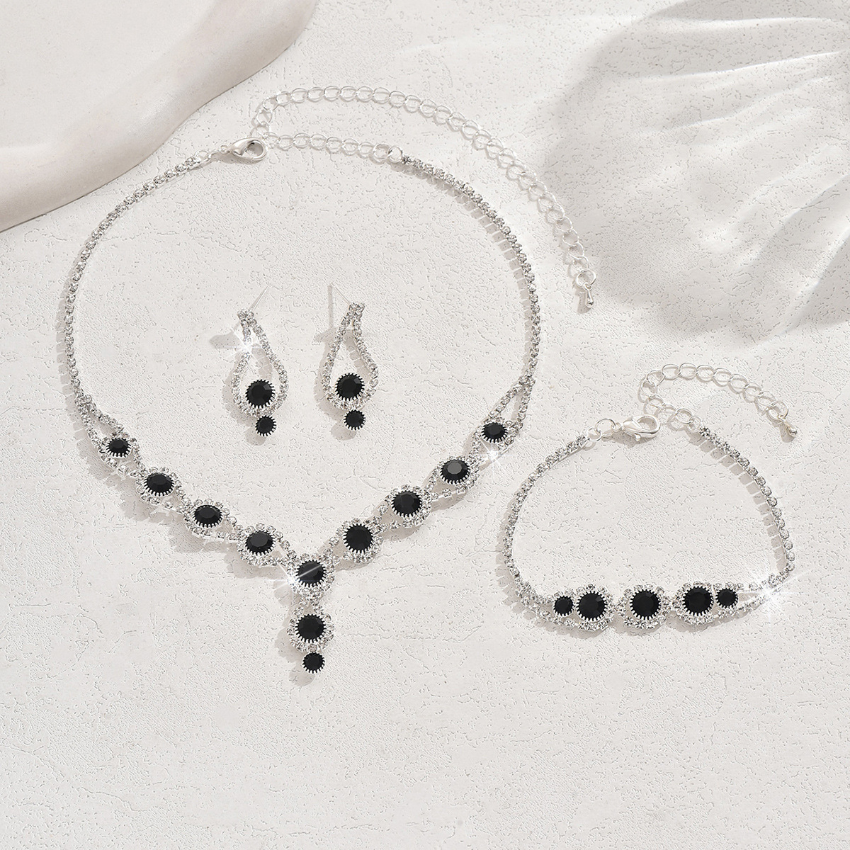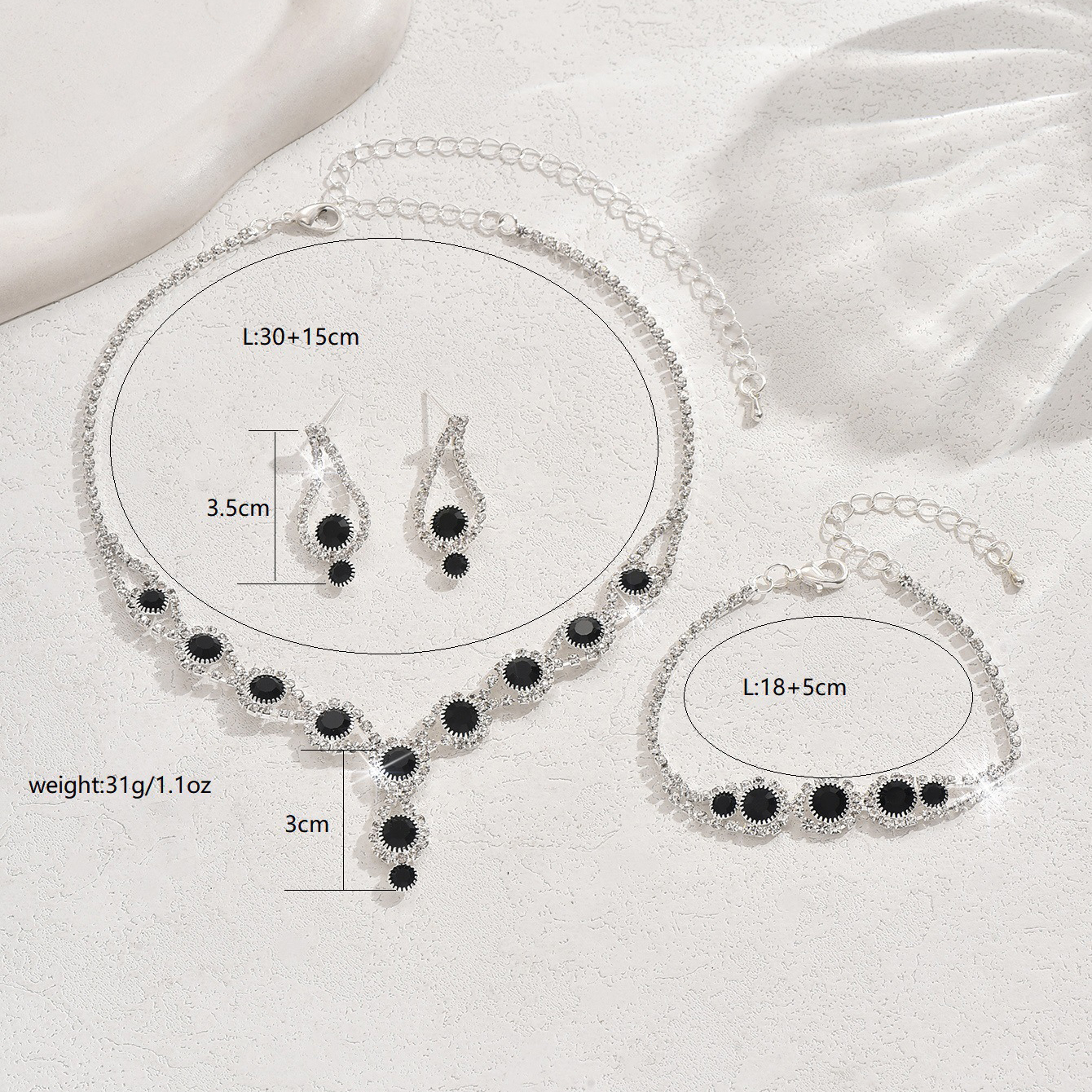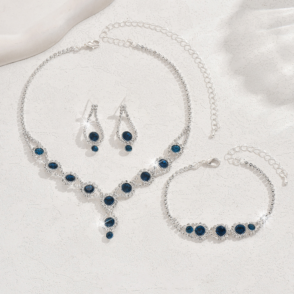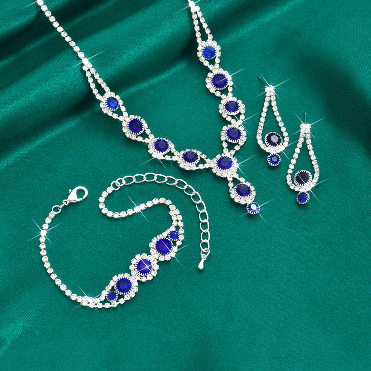 Brass Jewelry Set Stud Earring & bracelet & necklace with Crystal plated three pieces & for woman & with rhinestone Sold By Set