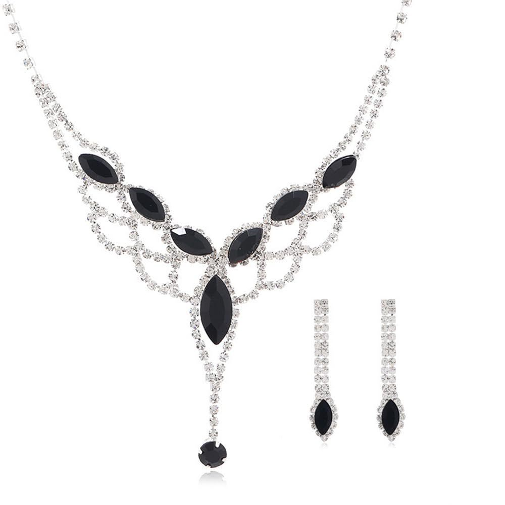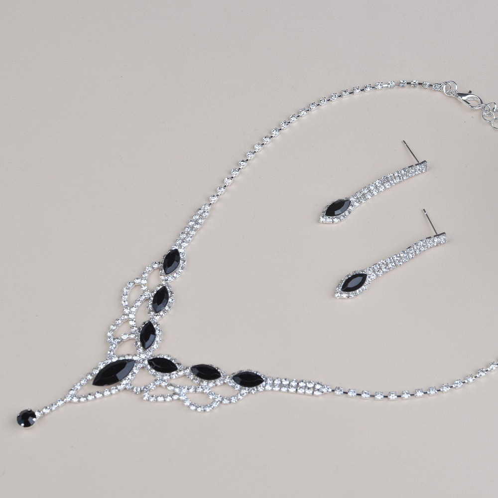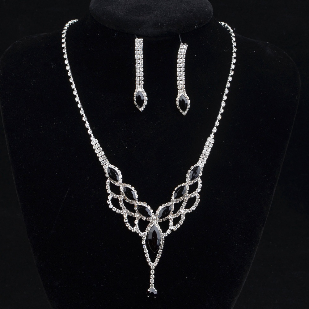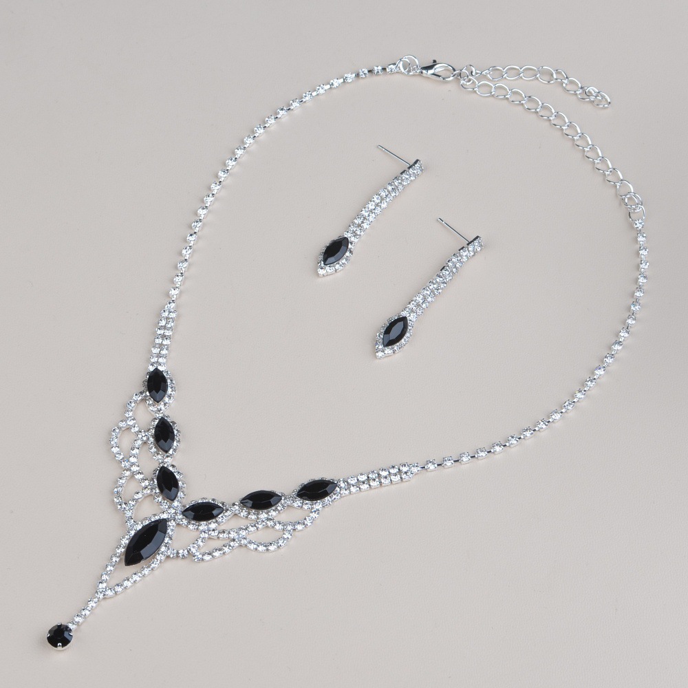 Brass Jewelry Set Stud Earring & necklace with Crystal with 7cm extender chain silver color plated 2 pieces & for woman & with rhinestone & hollow Length 32 cm Sold By Set