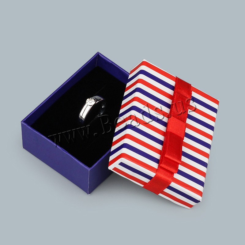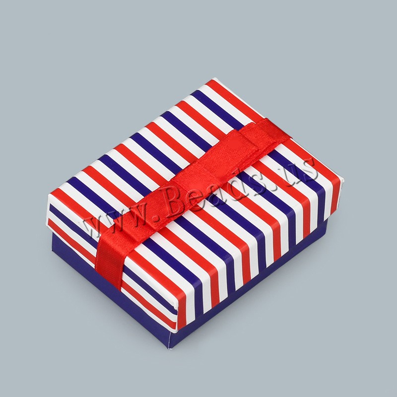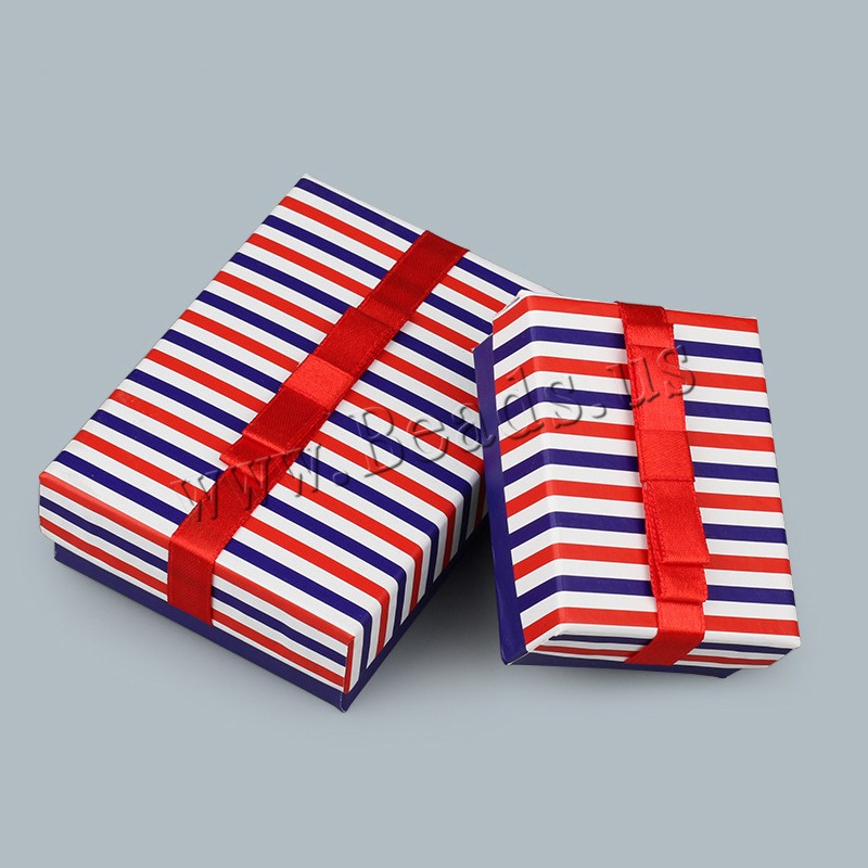 Cardboard Jewelry Set Box with Satin Ribbon Rectangle & stripe Sold By Lot