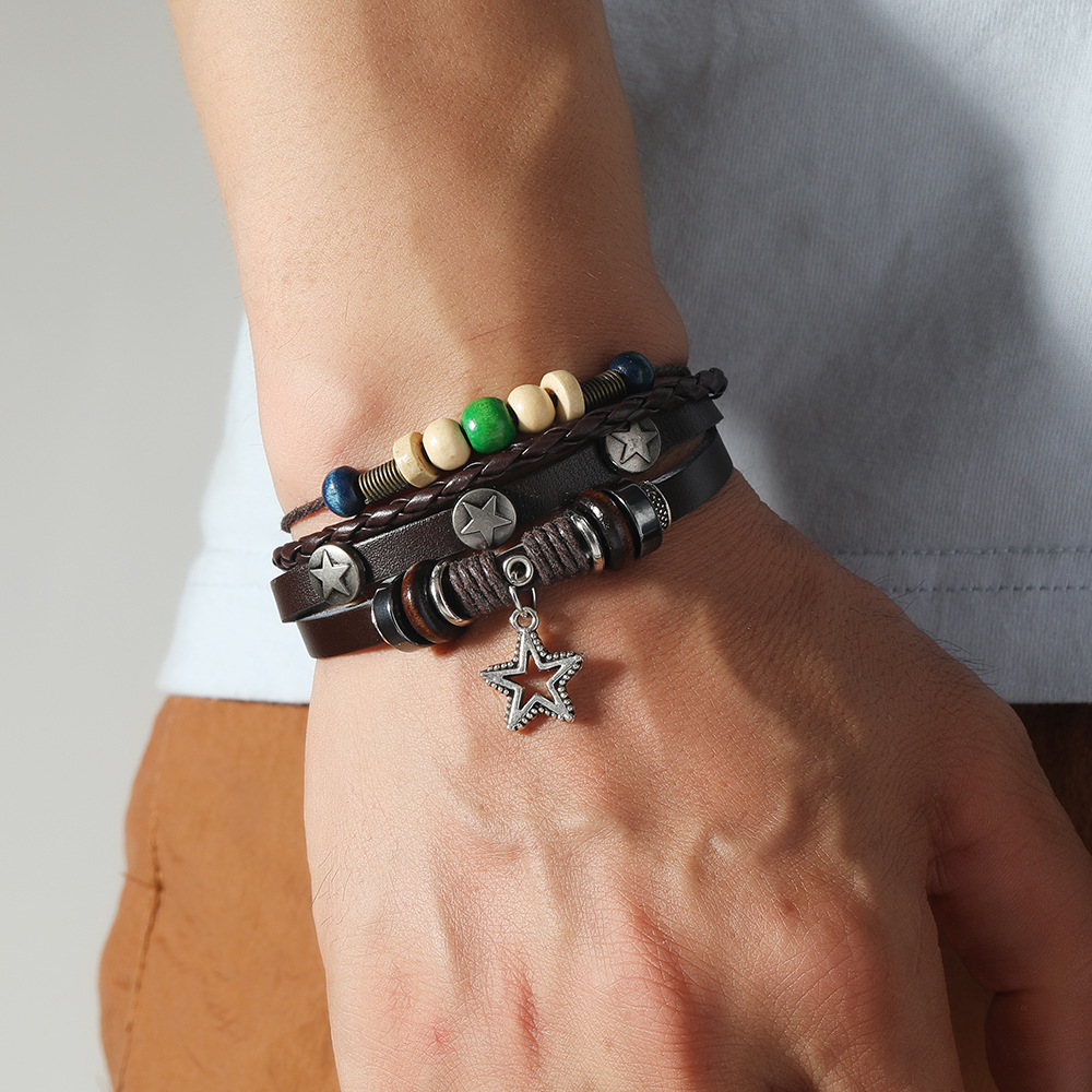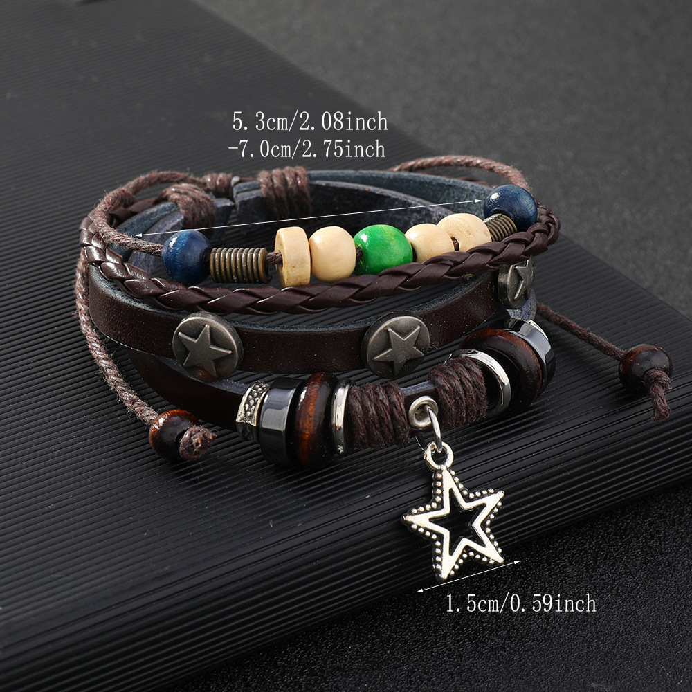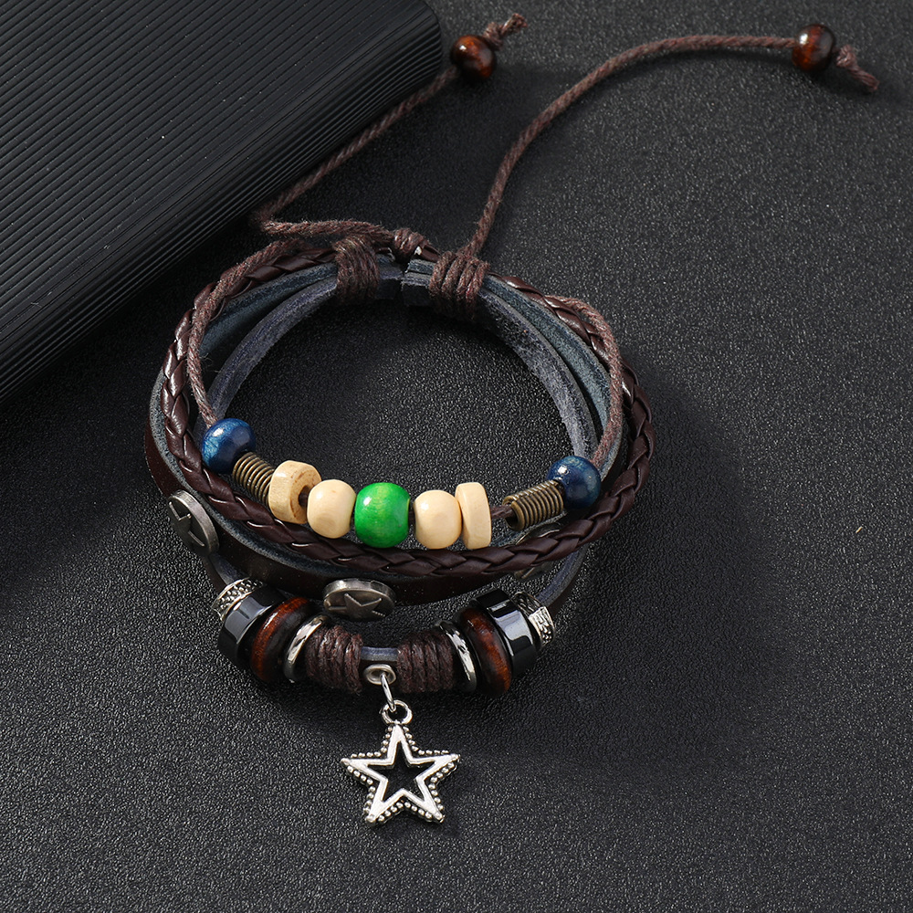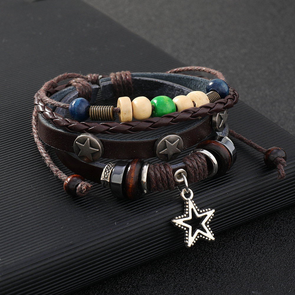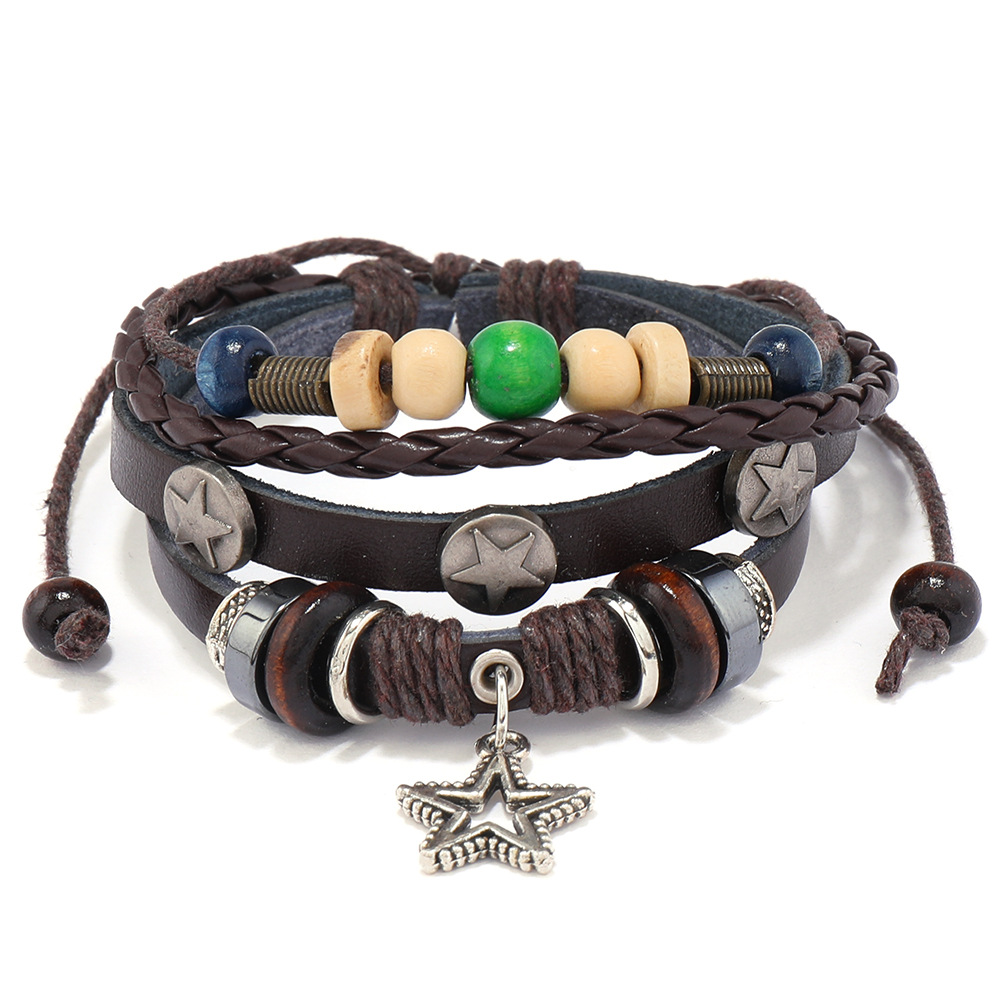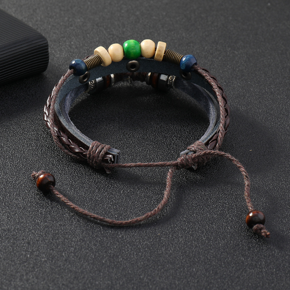 Cowhide Bracelet Split Layer Cowhide Leather with PU Leather & Wax Cord & Wood & Copper Coated Plastic & Zinc Alloy handmade fashion jewelry & multilayer & Unisex brown Sold By PC