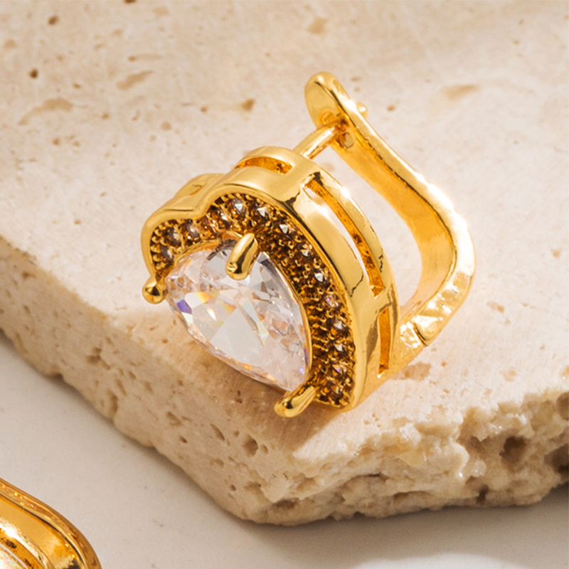 Copper Lever Back Earring gold color plated & for woman & with cubic zirconia earring length 15-20mm Sold By Pair