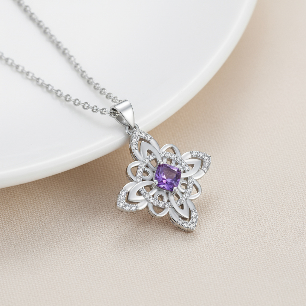 Cubic Zircon Micro Pave Brass Necklace, with stainless steel chain, with 4cm extender chain, silver color plated, micro pave cubic zirconia & for woman, 19.50x19.50mm, Sold Per Approx 17 cm Strand
