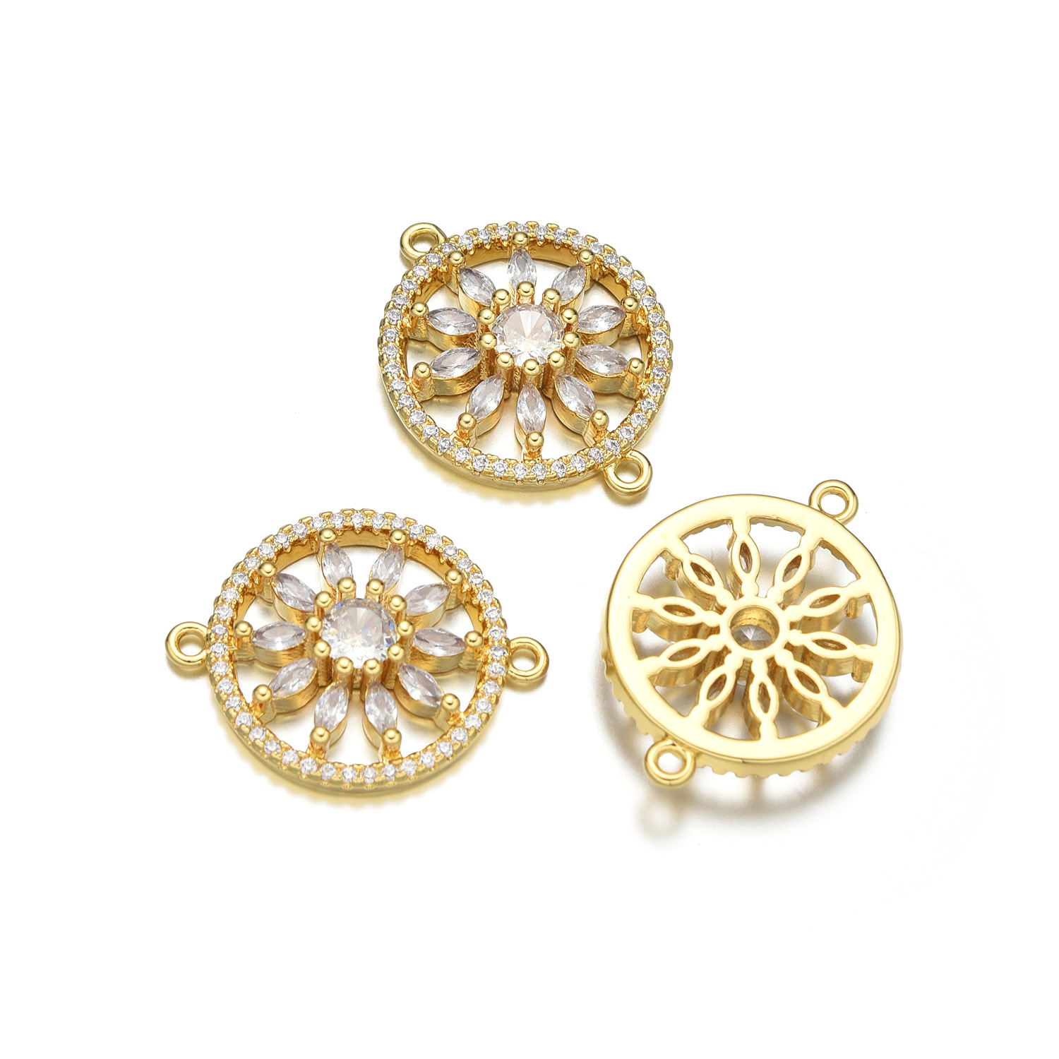 Cubic Zirconia Micro Pave Brass Connector Daisy plated DIY & micro pave cubic zirconia Sold By PC