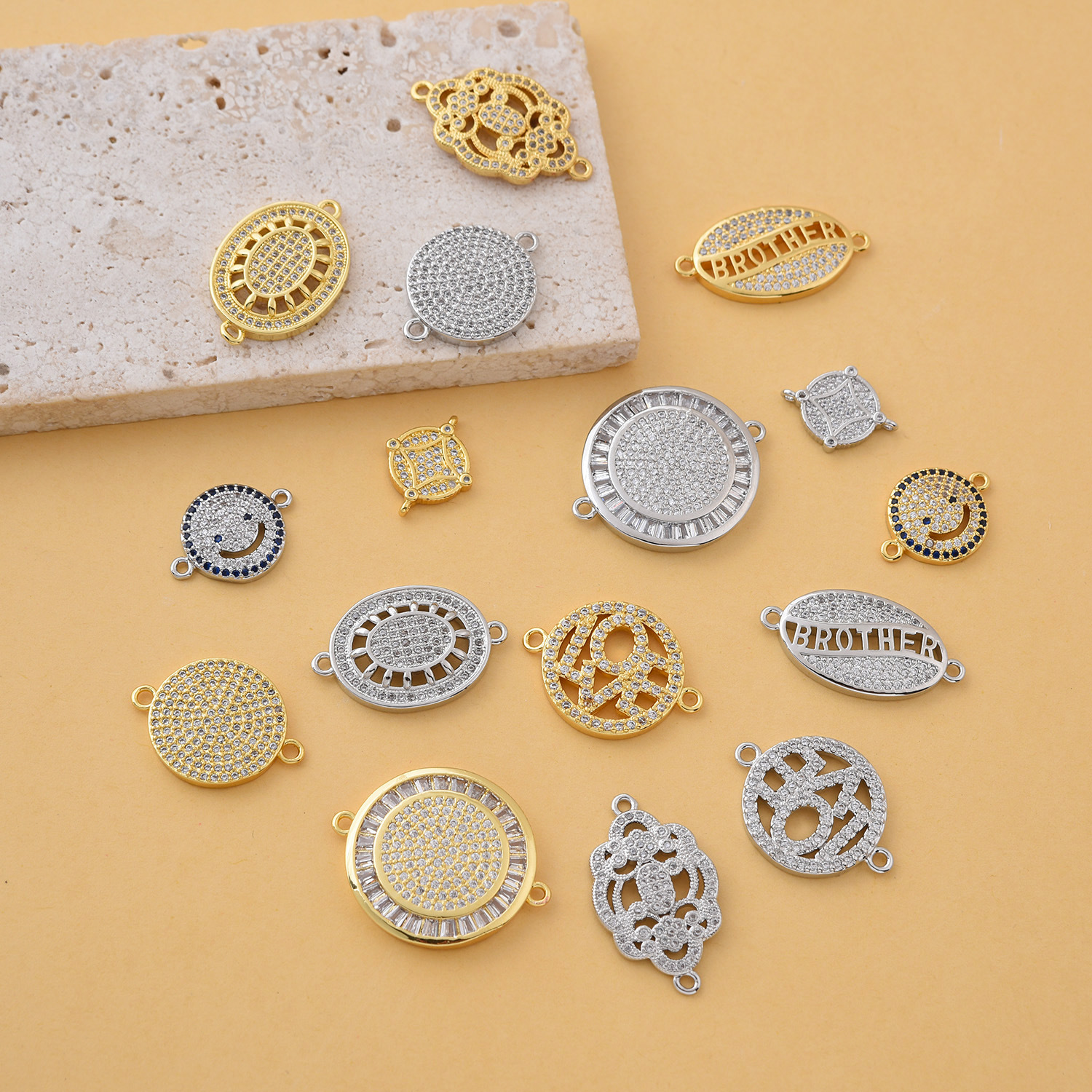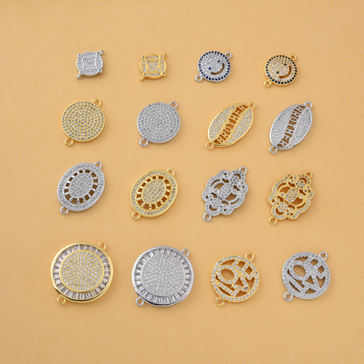 Cubic Zirconia Micro Pave Brass Connector, plated, DIY & different styles for choice & micro pave cubic zirconia, connector size 10-20mm, Sold By PC