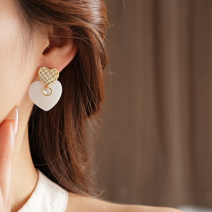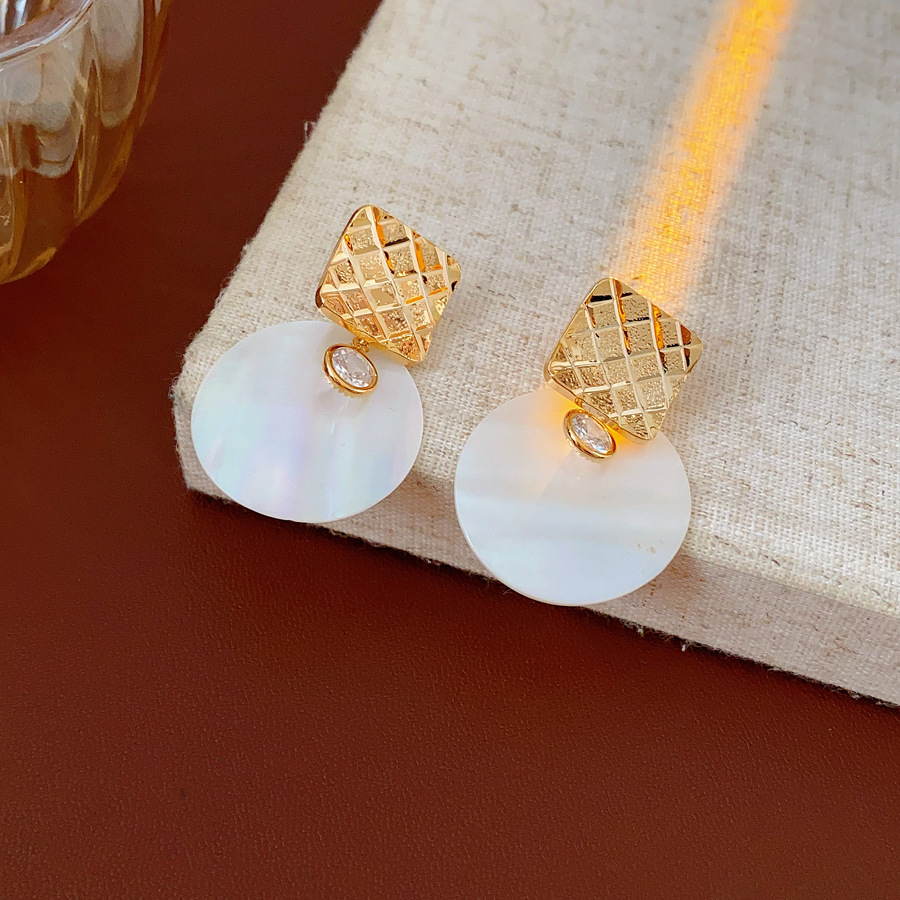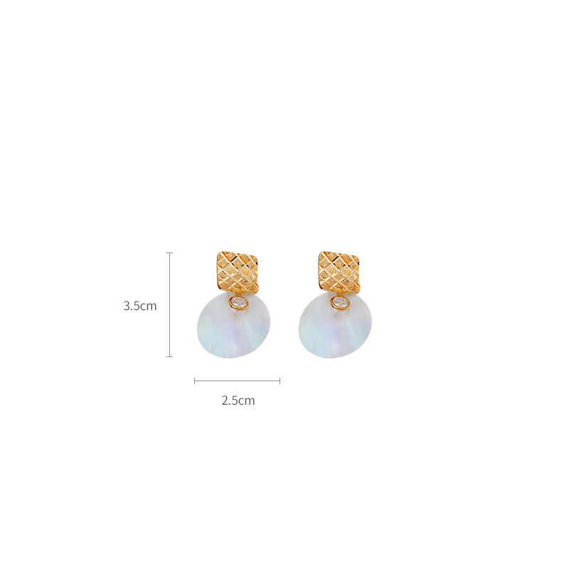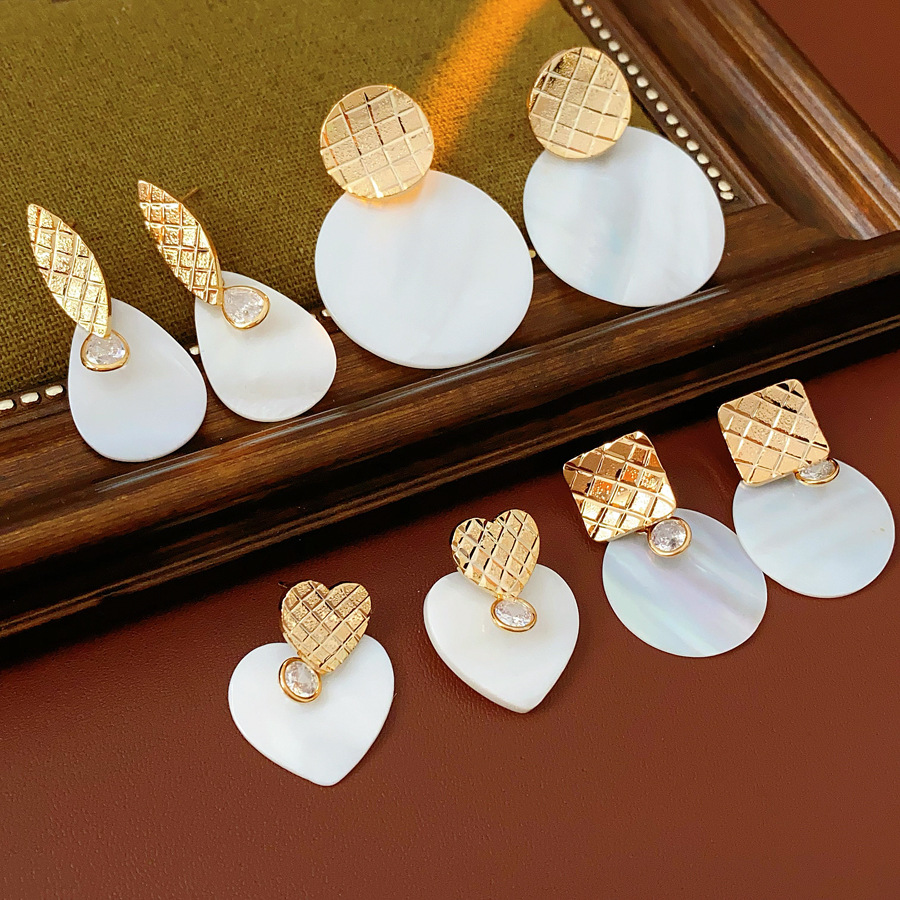 Brass Drop Earring with White Shell gold color plated & micro pave cubic zirconia & for woman earring length 20-50mm Sold By Pair