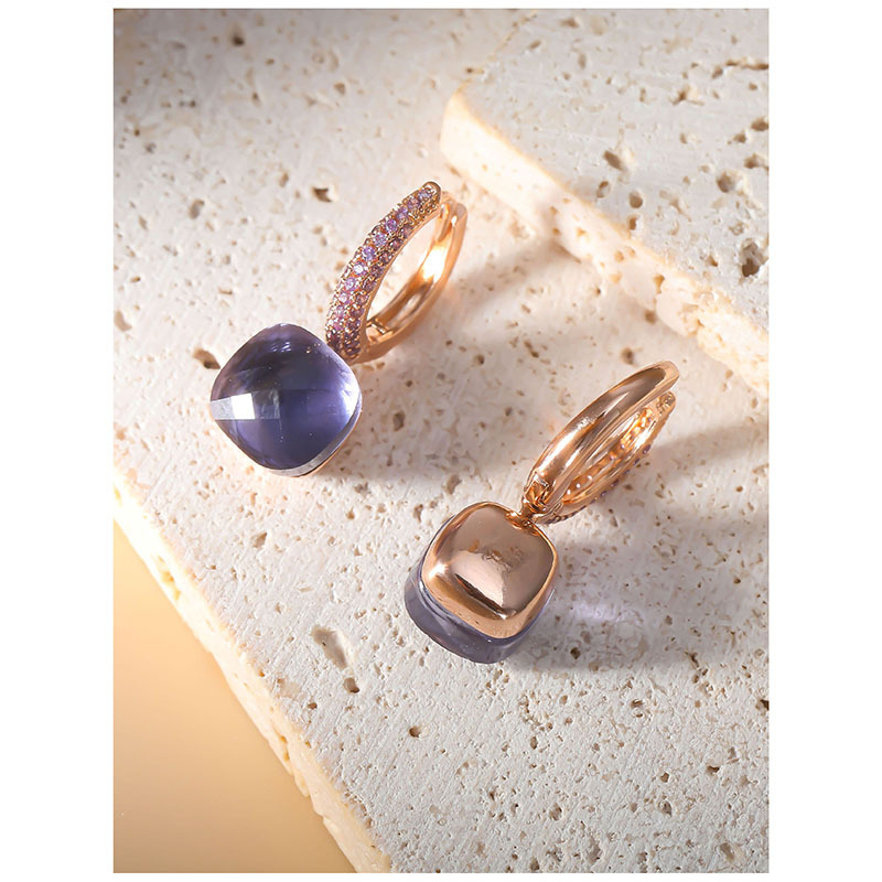 Brass Huggie Hoop Drop Earring Geometrical Pattern rose gold color plated micro pave cubic zirconia & for woman Sold By PC