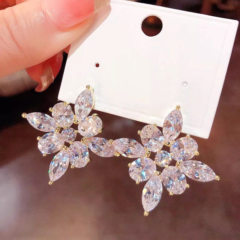 Cubic Zirconia Micro Pave Brass Earring with Cubic Zirconia Rhombus plated fashion jewelry & for woman & hollow Sold By Pair