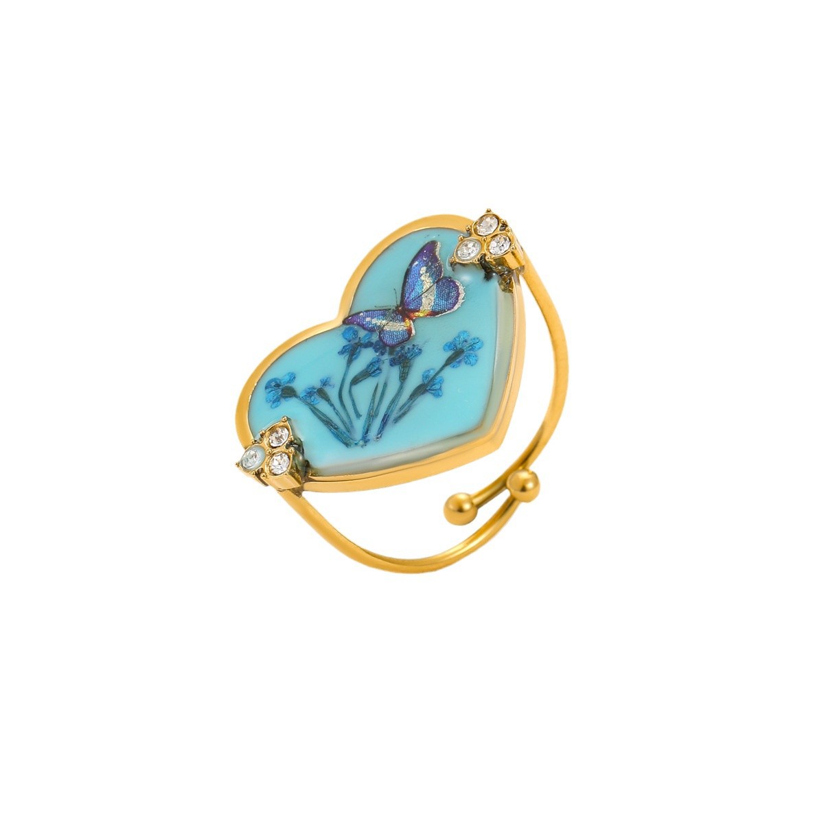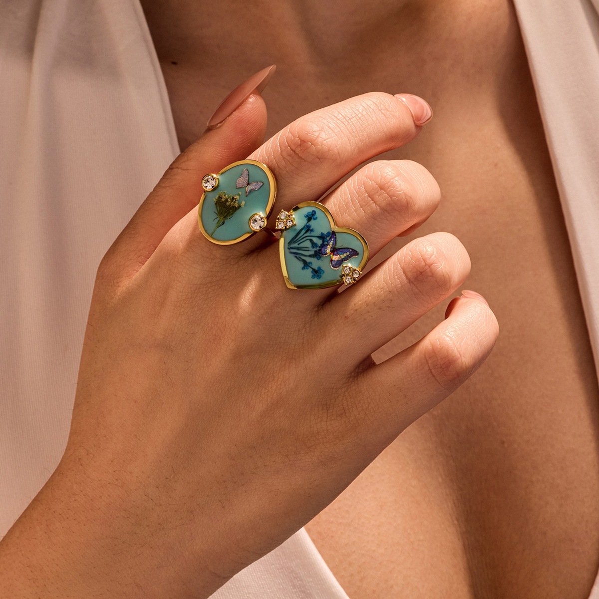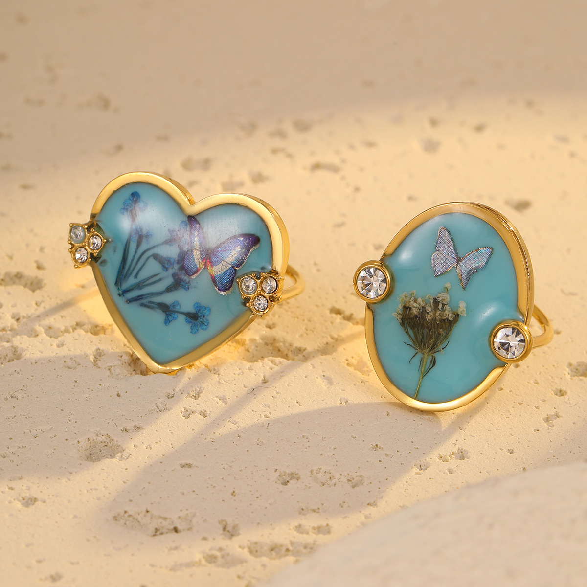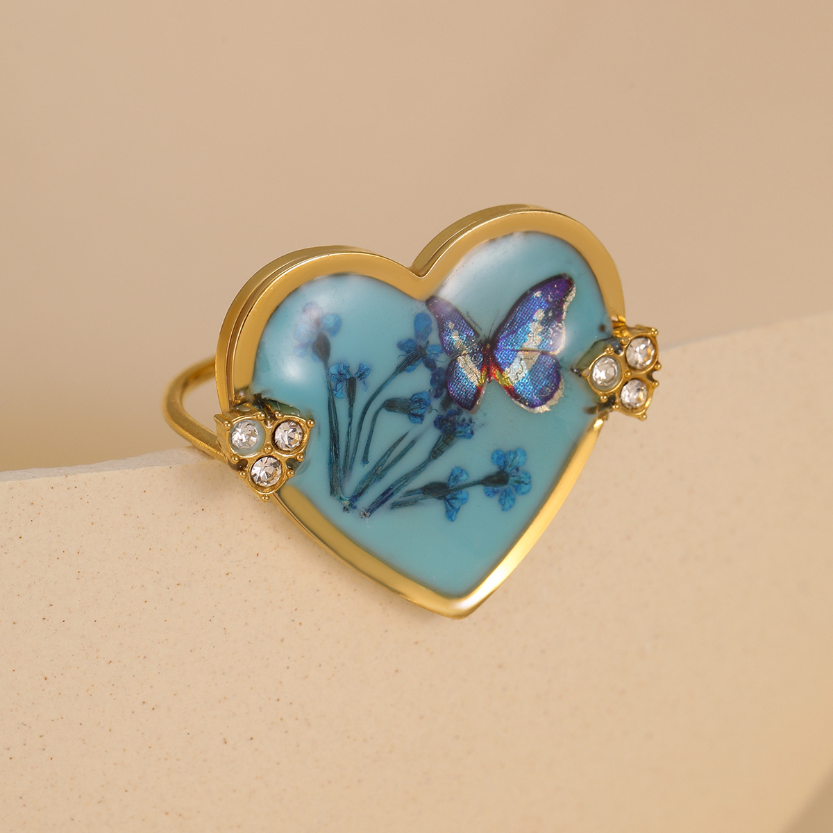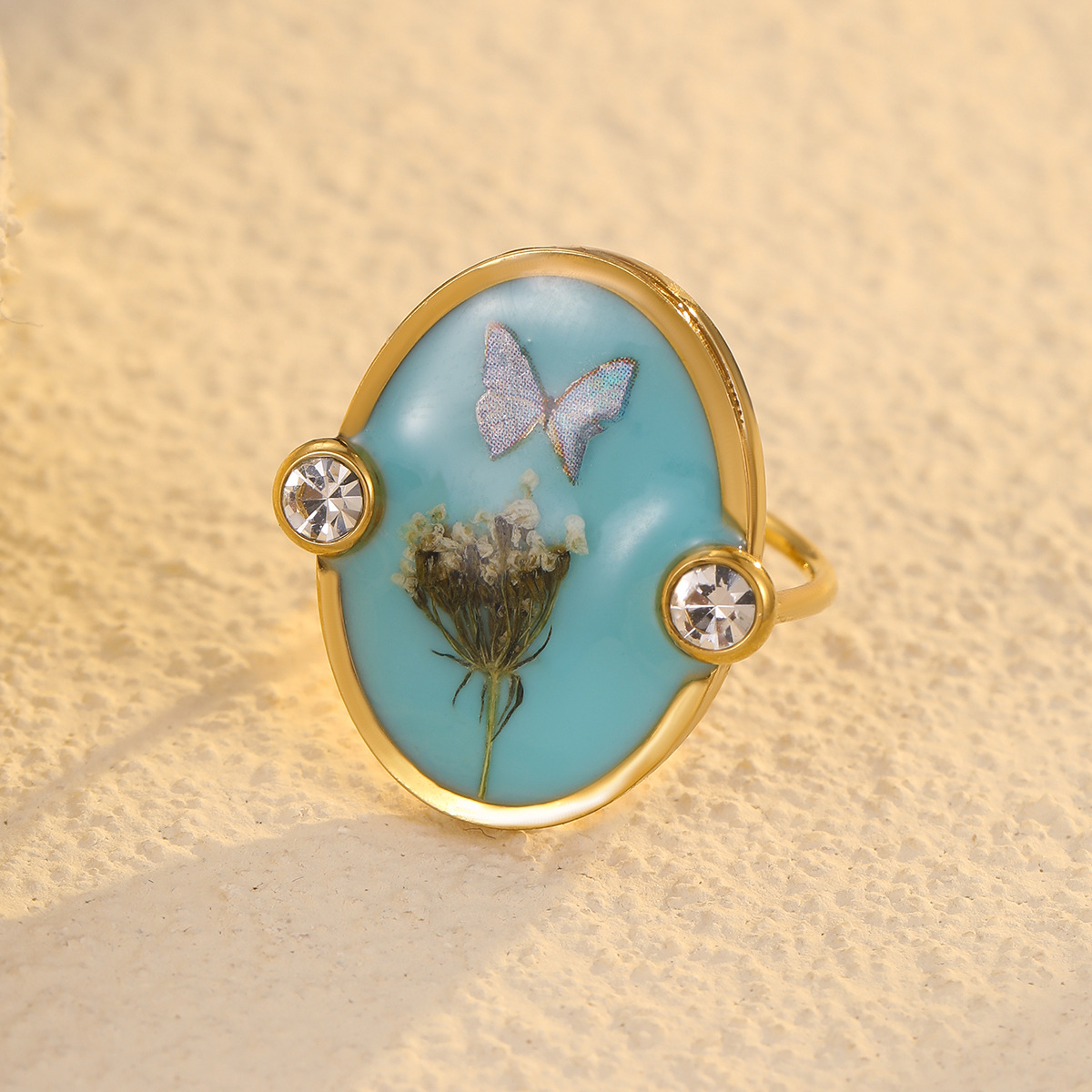 Cubic Zirconia Stainless Steel Finger Ring 304 Stainless Steel with Dried Flower epoxy gel & micro pave cubic zirconia & for woman golden Sold By PC