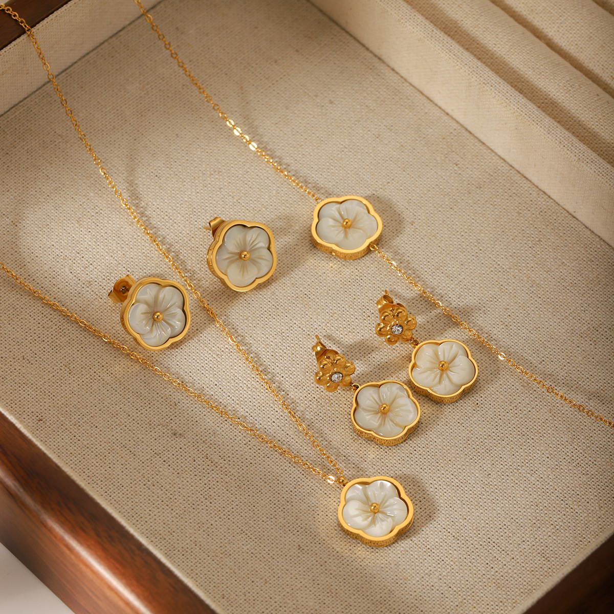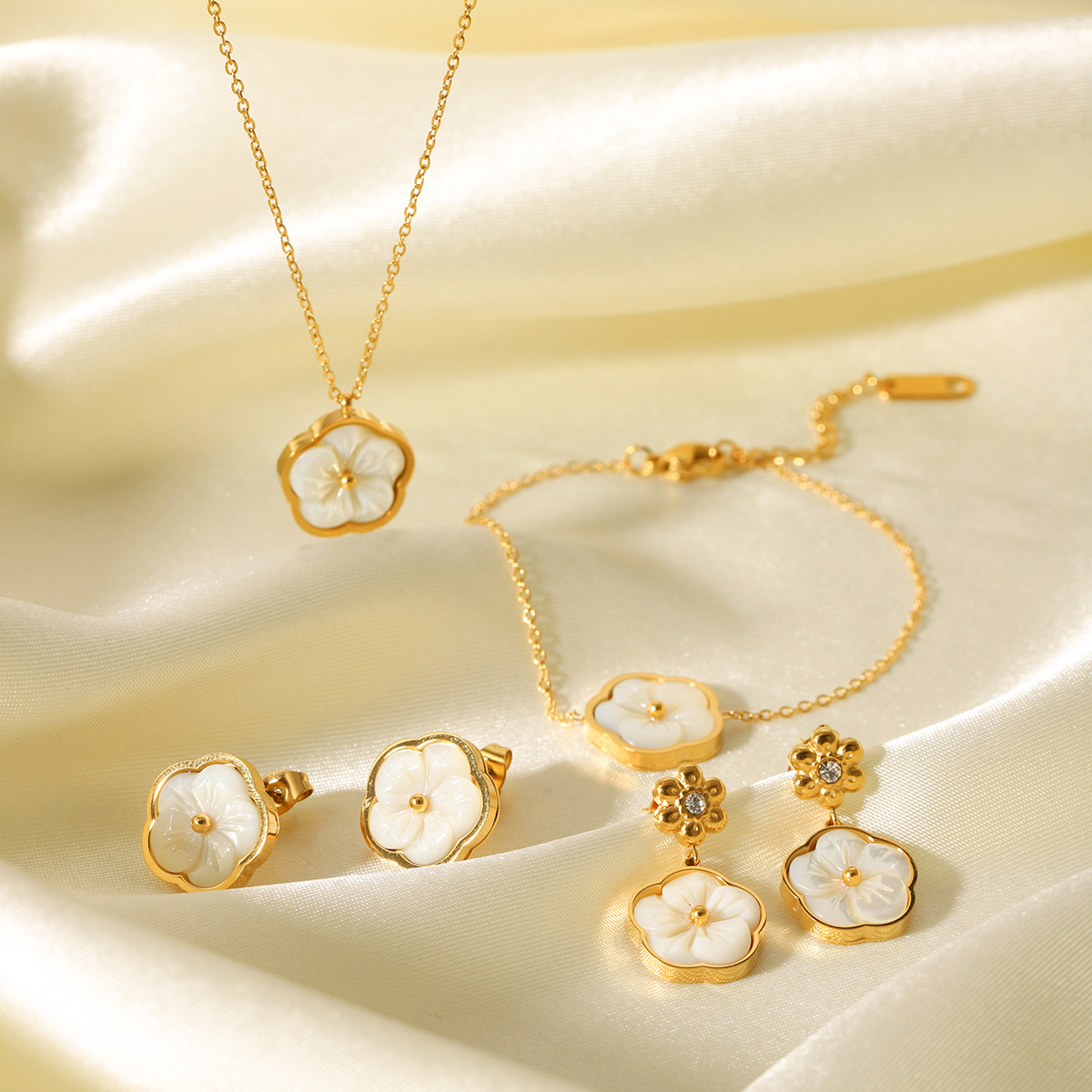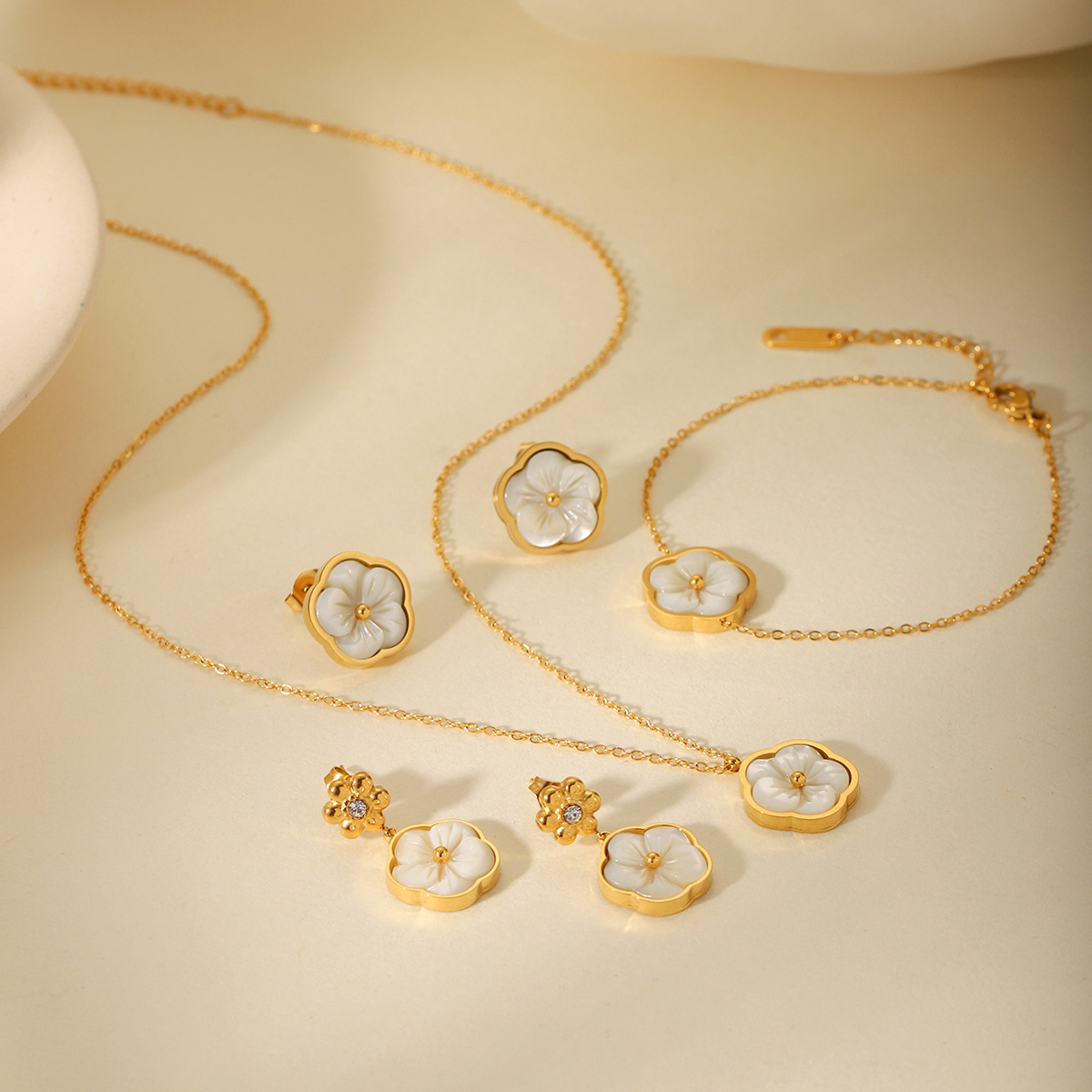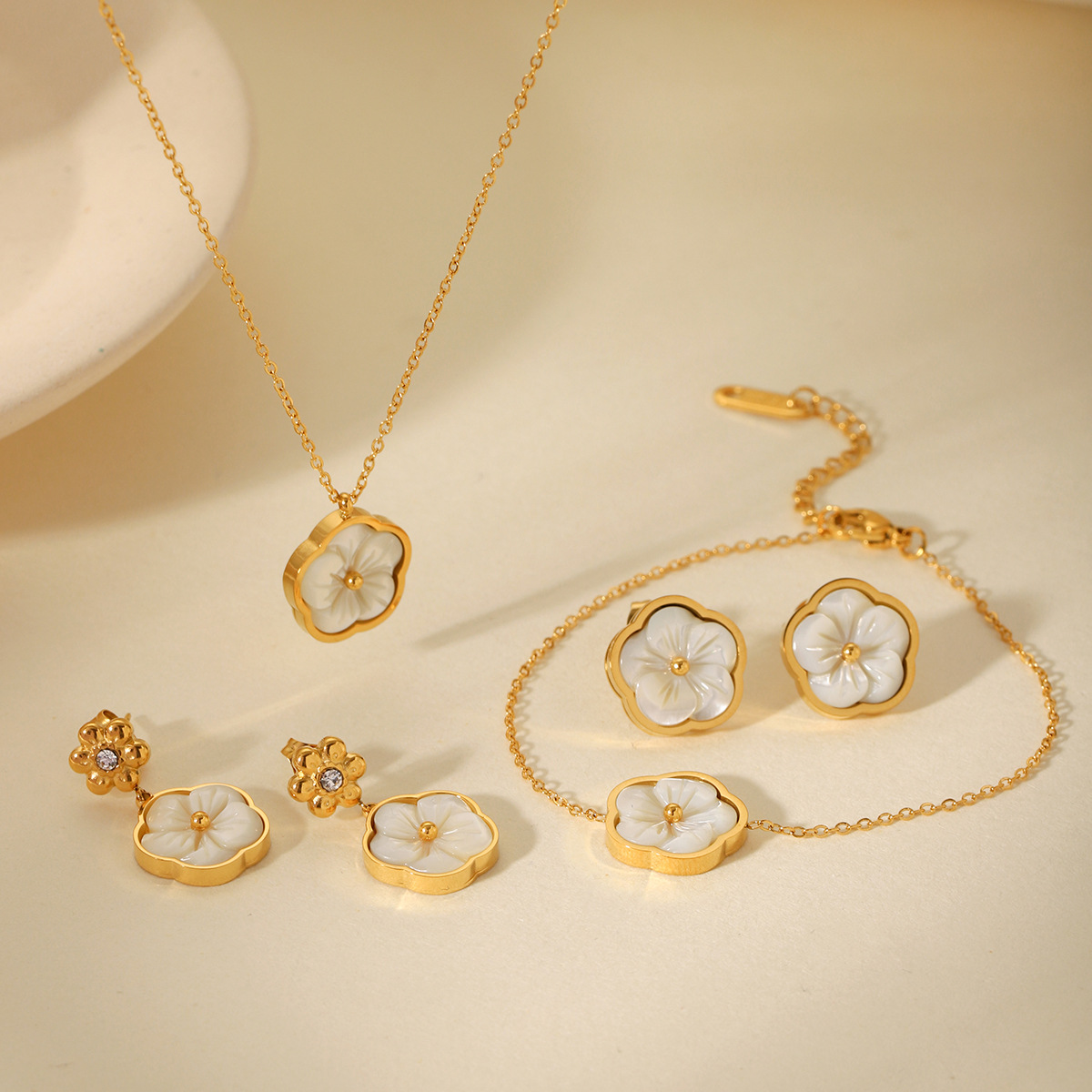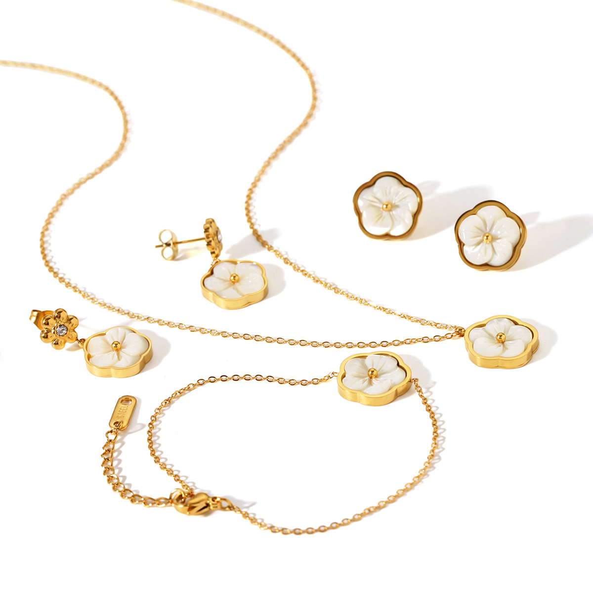 Cubic Zirconia Stainless Steel Jewelry Sets 304 Stainless Steel with Shell gold color plated fashion jewelry & micro pave cubic zirconia golden Sold By PC