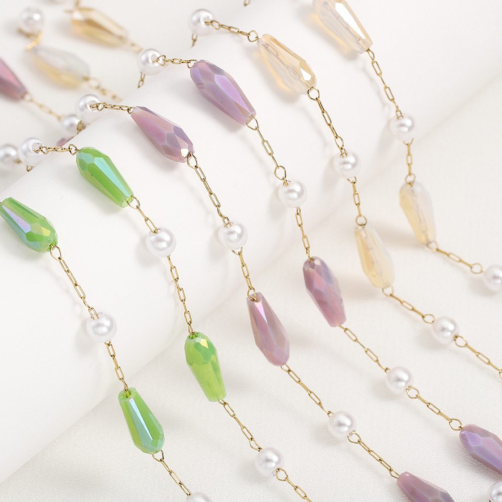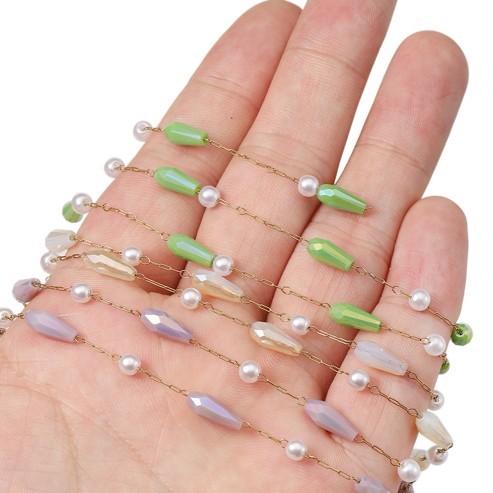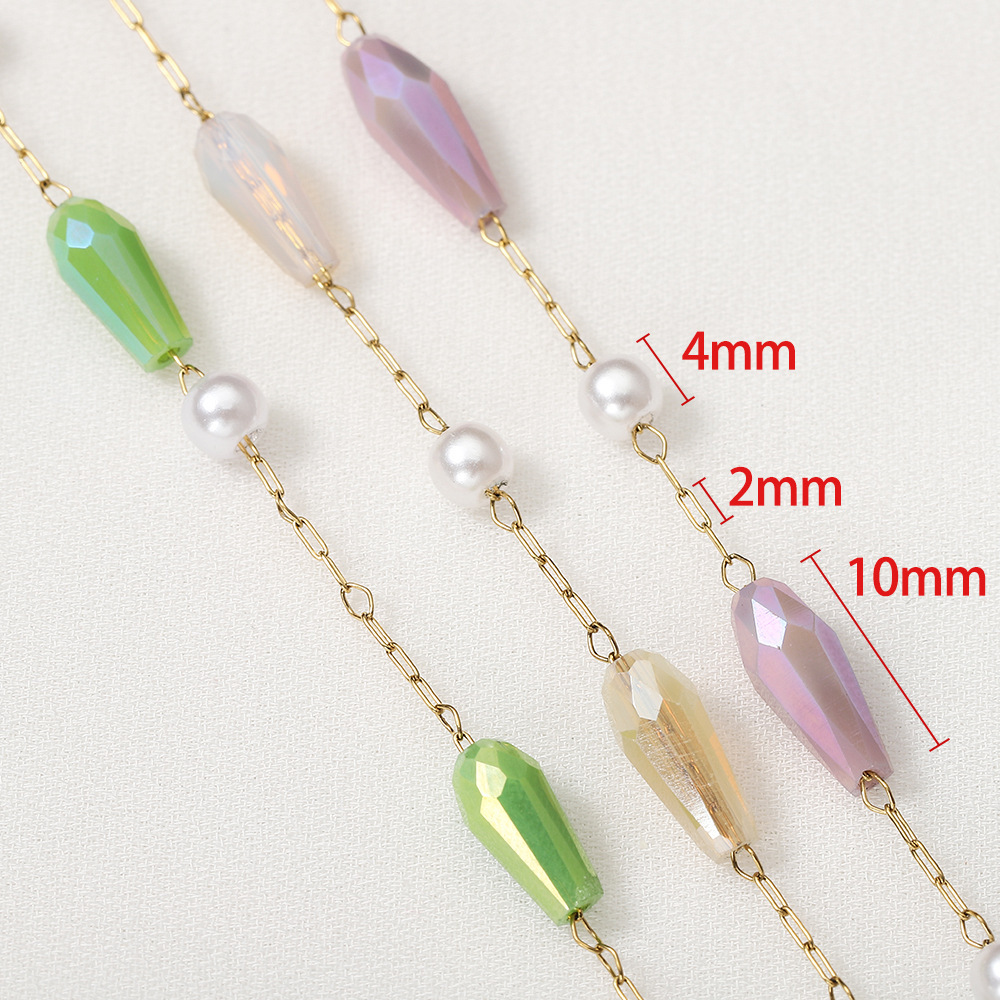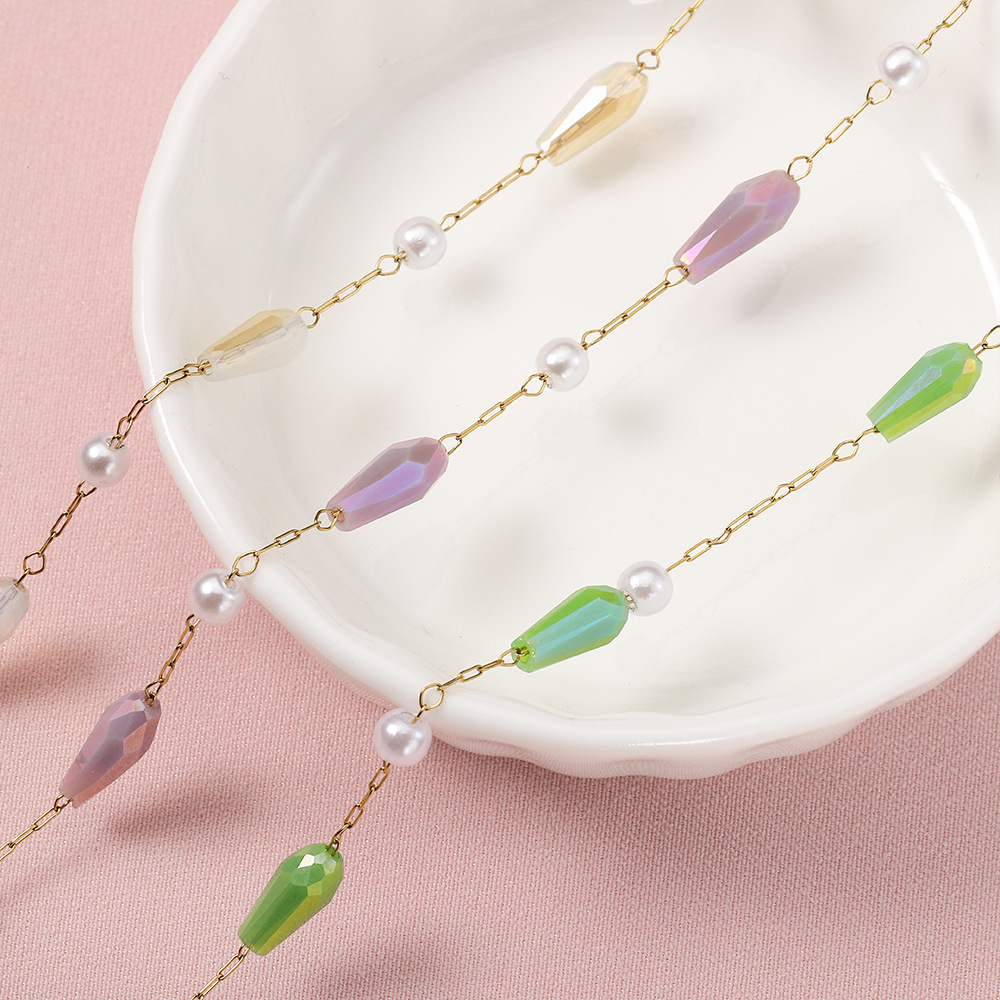 Decorative Beaded Chain 304 Stainless Steel with Glass & Plastic Pearl gold color plated DIY Sold By m