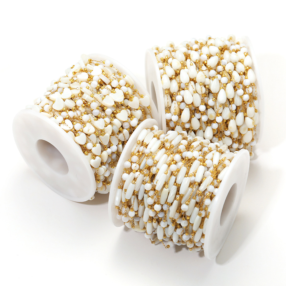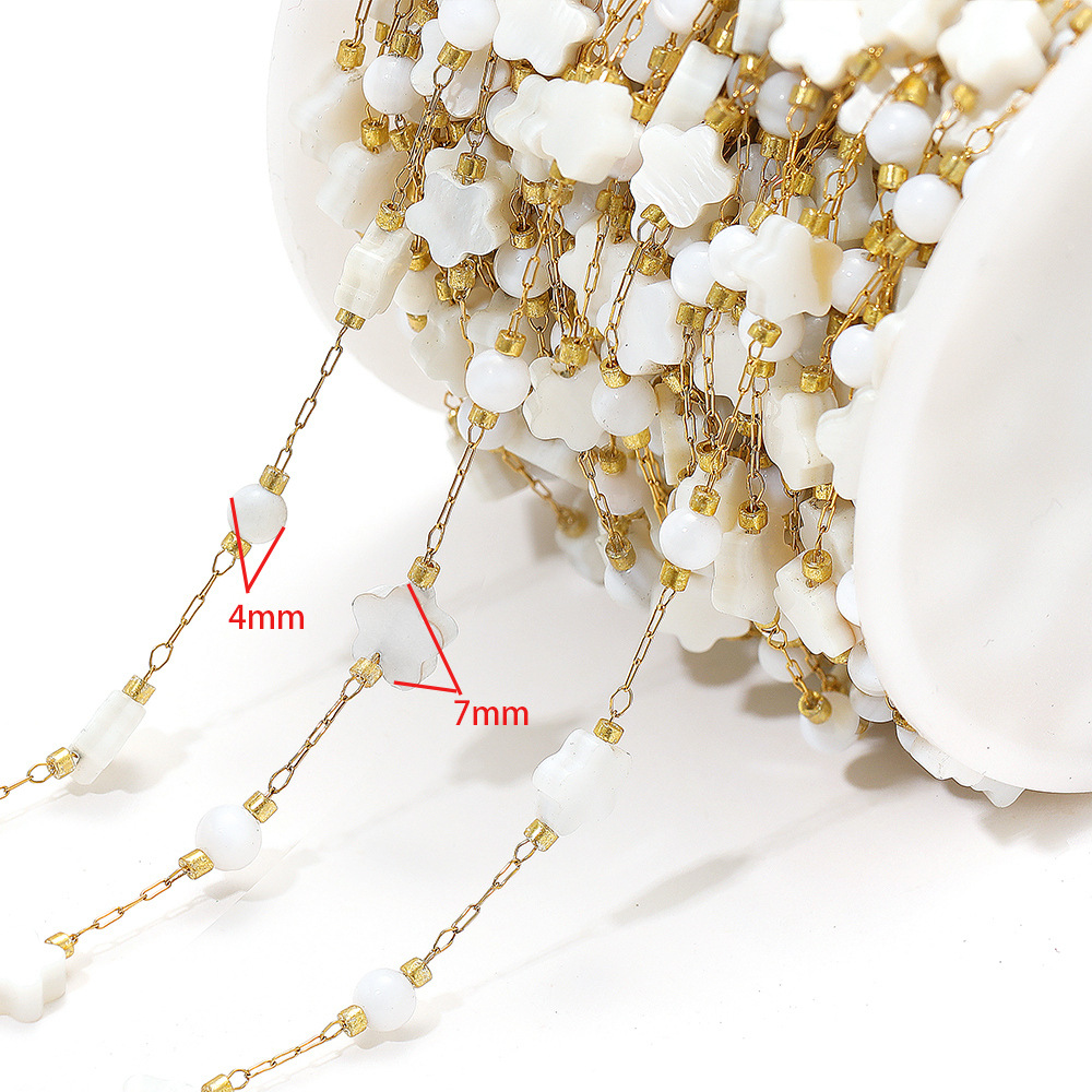 Decorative Beaded Chain 304 Stainless Steel with Shell gold color plated DIY Sold By m