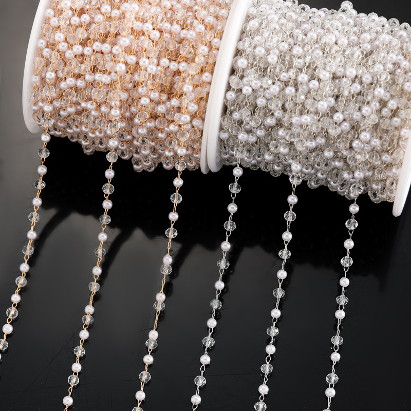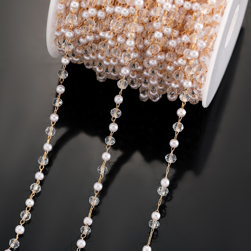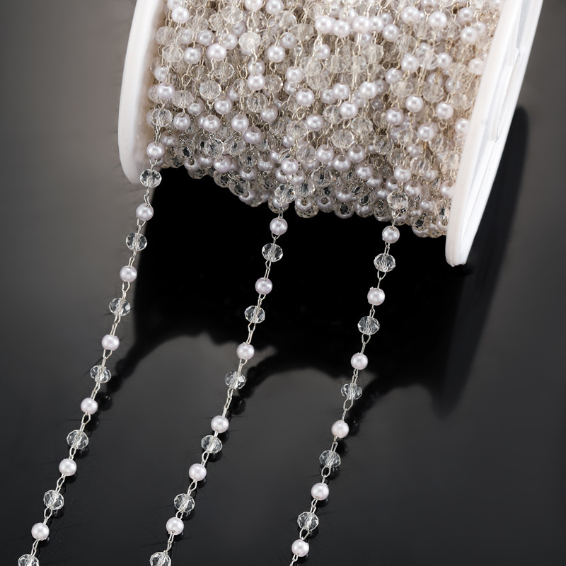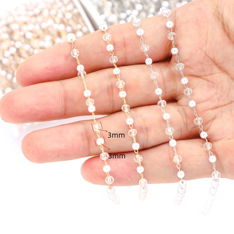 Decorative Beaded Chain Iron with Glass & Plastic Pearl plated DIY Sold By PC