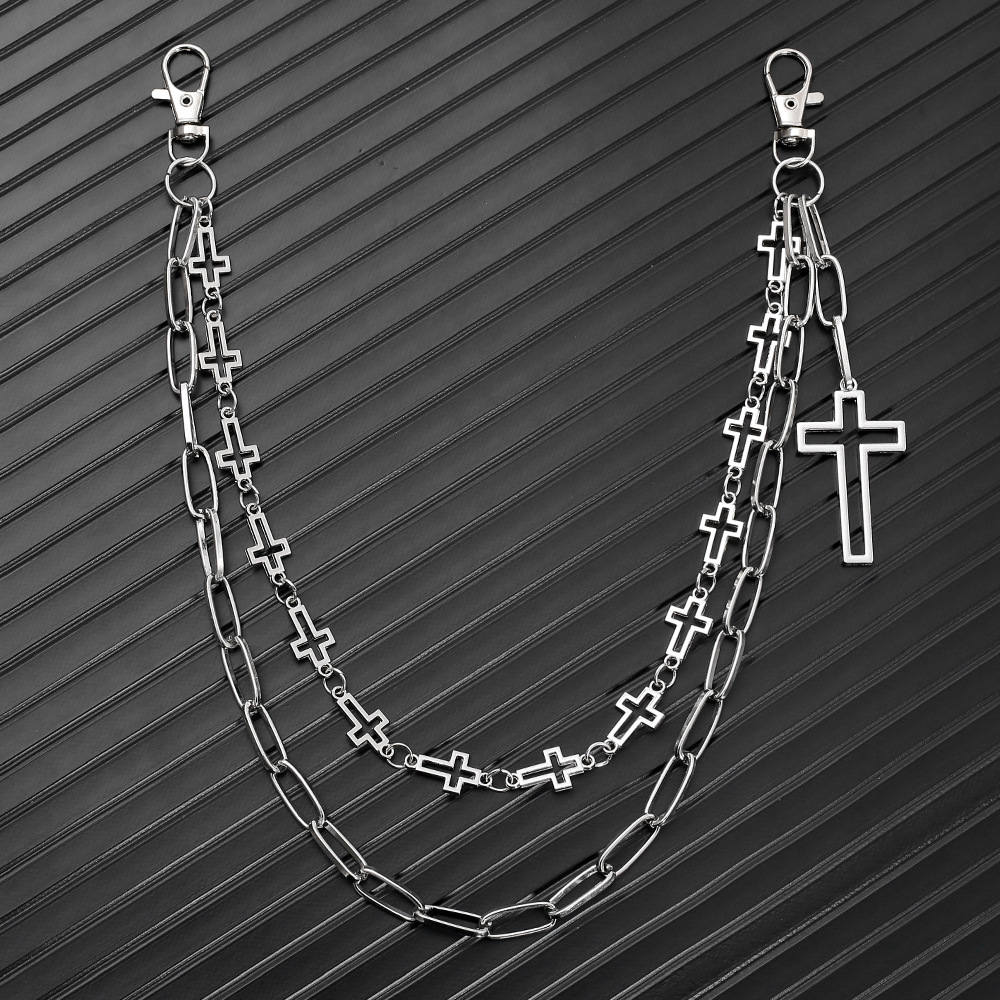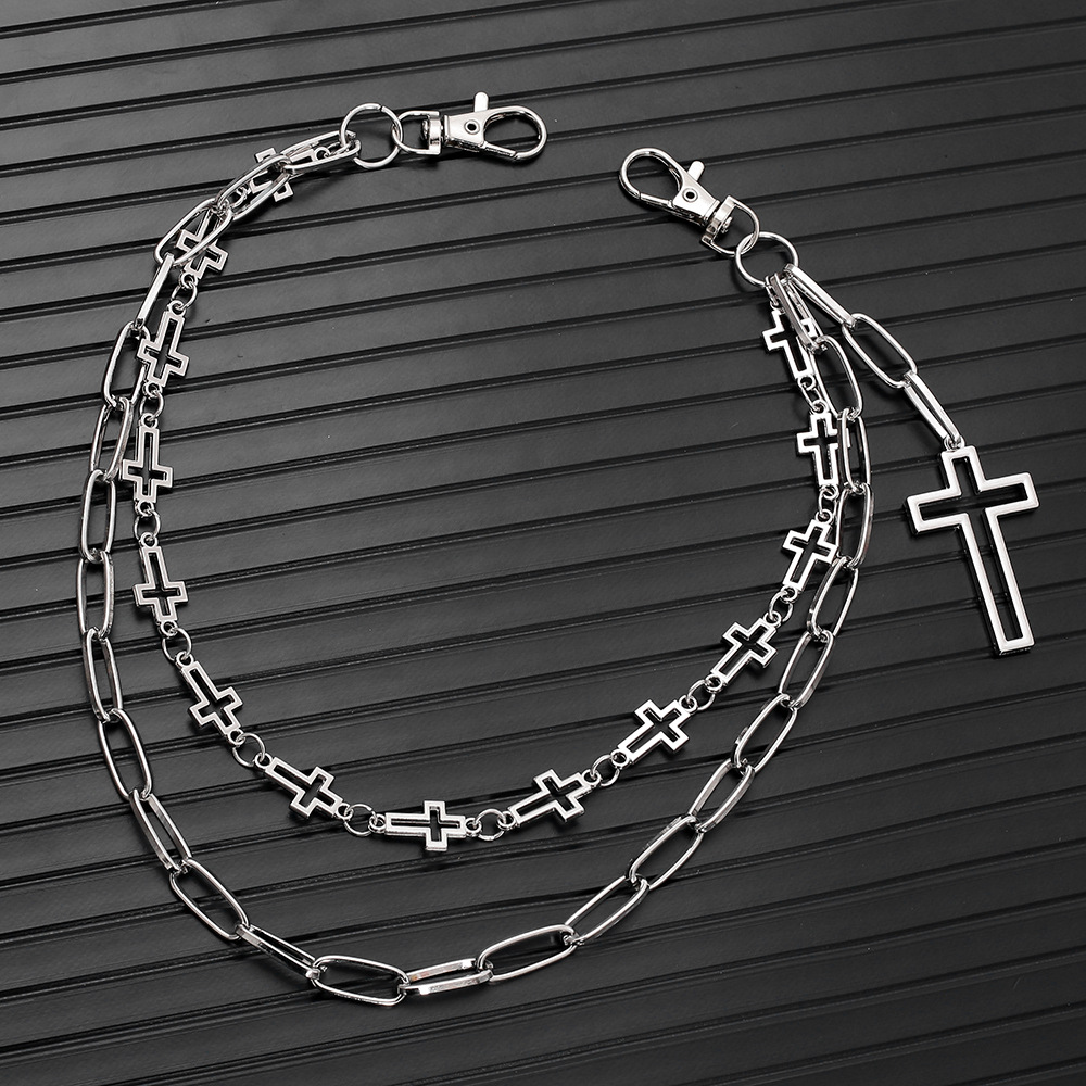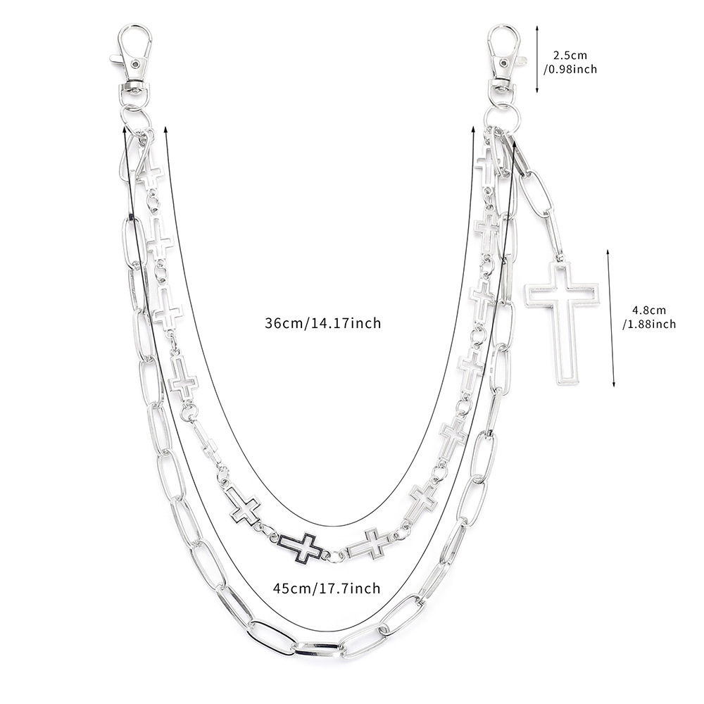 Zinc Alloy Waist Chain with Iron Cross plated Double Layer & Unisex silver color Sold By PC