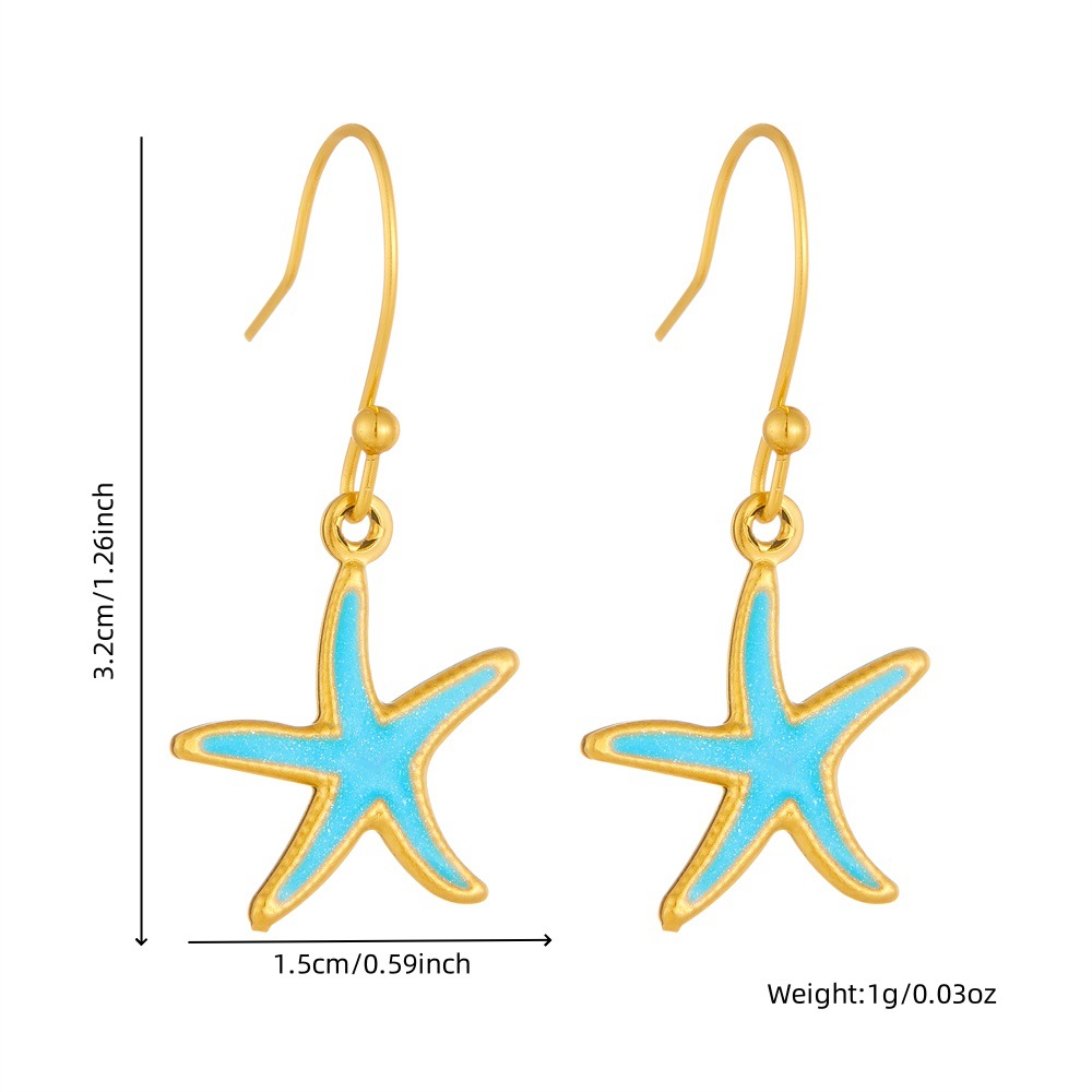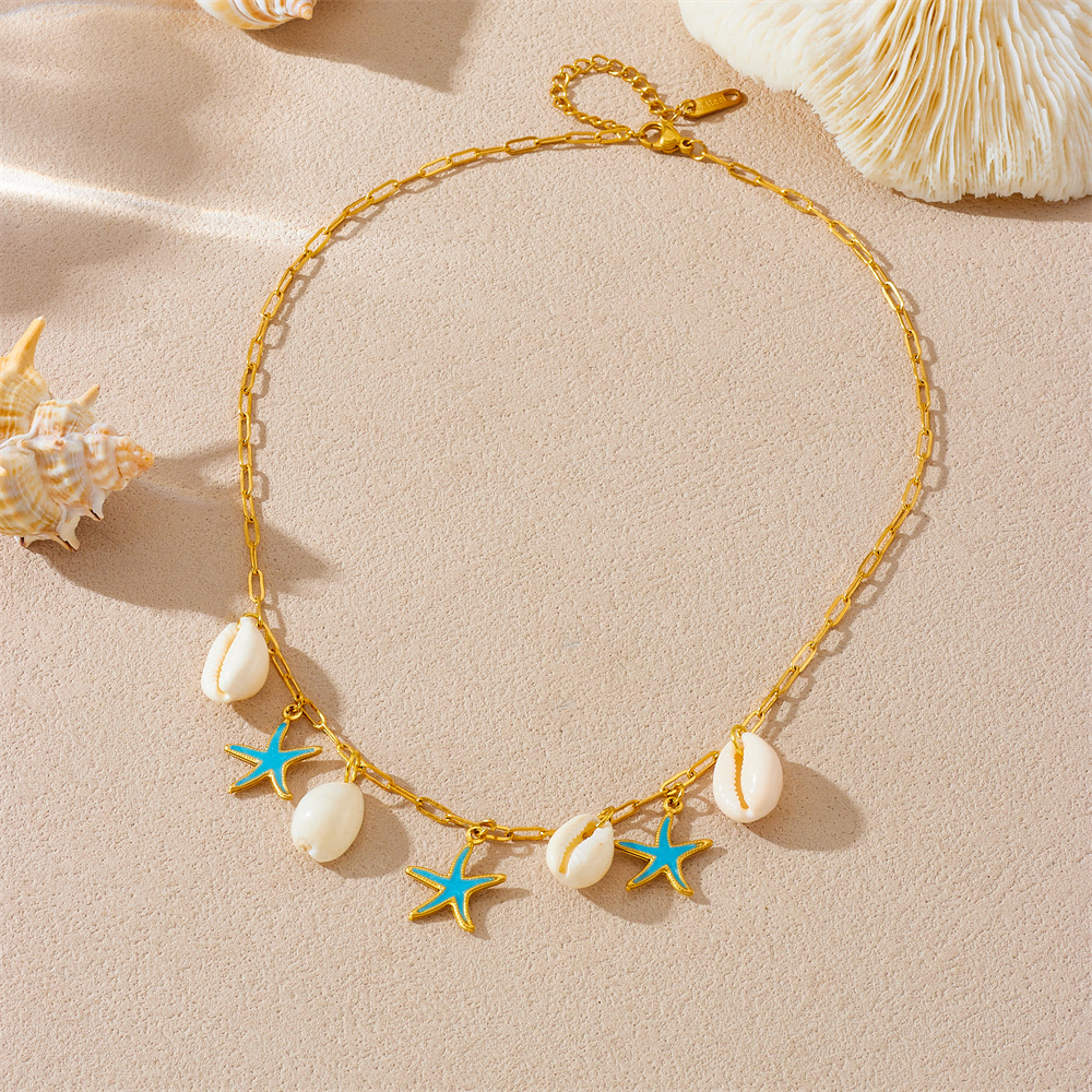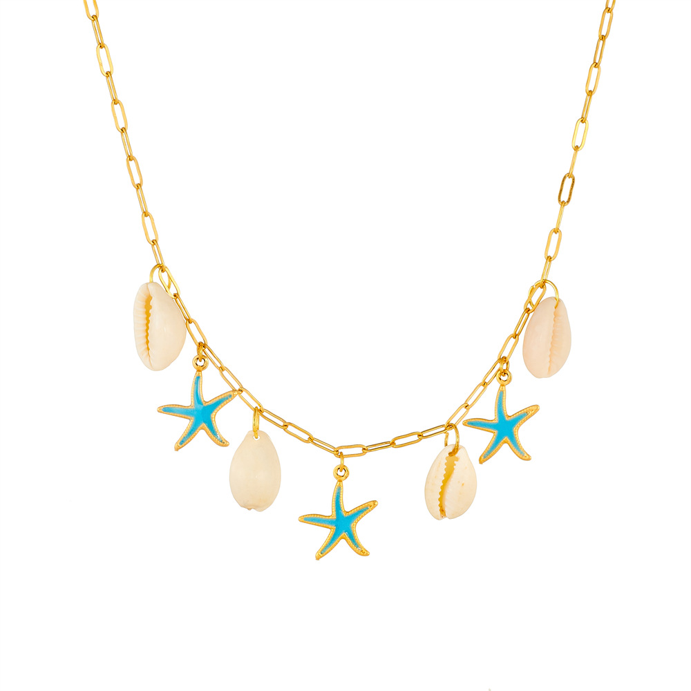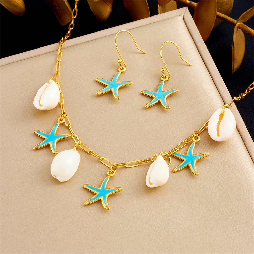 Enamel Stainless Steel Jewelry Set 304 Stainless Steel with Shell Starfish plated & for woman golden Sold By PC