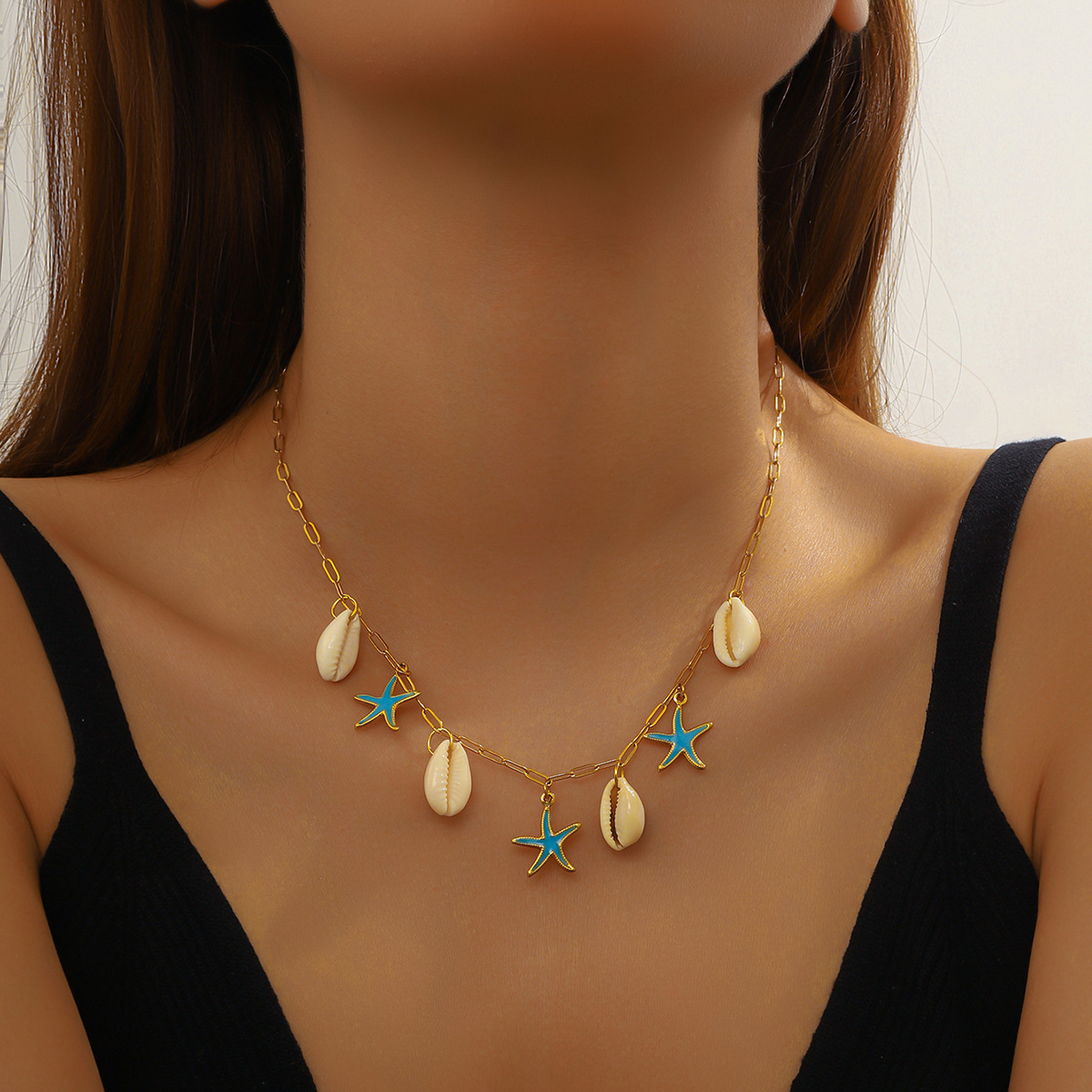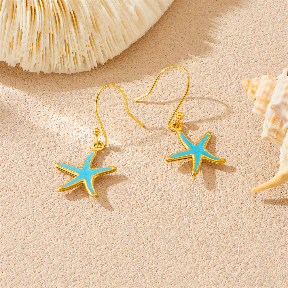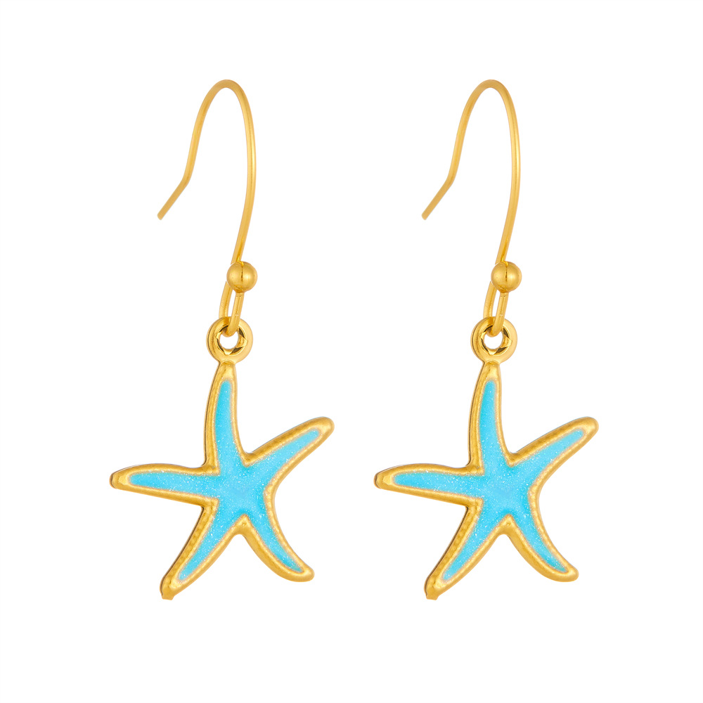 Enamel Stainless Steel Jewelry Set 304 Stainless Steel with Shell Starfish plated & for woman golden Sold By PC