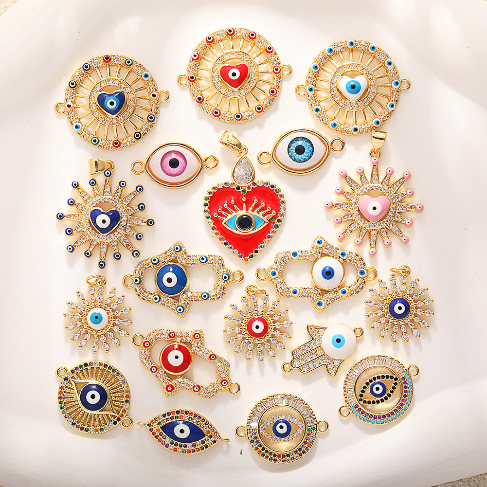 1:A541 dark blue love eyes hand sign2:A542 red love eyes hand sign3:A543 light blue love eyes hand sign4:A544 pink love eye pendant5:A545 dark blue love eye pendant6:A546 red love eye pendant7:A547 light blue full zirconia pendant8:A548 red full zirconia pendant9:A549 dark blue full zirconia pendant10:A550 dark blue palm eye double hole11:A551 white palm eye double hole12:A552 red palm eye double hole13:A553 one palm eye double hole14:A554 pink oval eyes double holes15:A555 blue oval eyes double holes16:A556 blue full inlaid colored zirconium eyes double holes17:A557 dark blue full inlaid colored zirconium hand sign18:A558 white zirconia hand sign with colored zirconia around the eyes19:A559 black zirconium hand sign with colored zirconium around the eyes