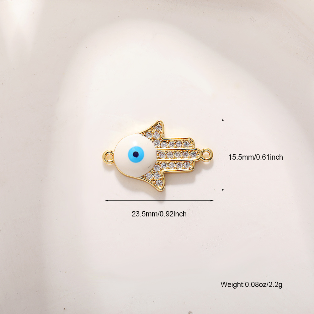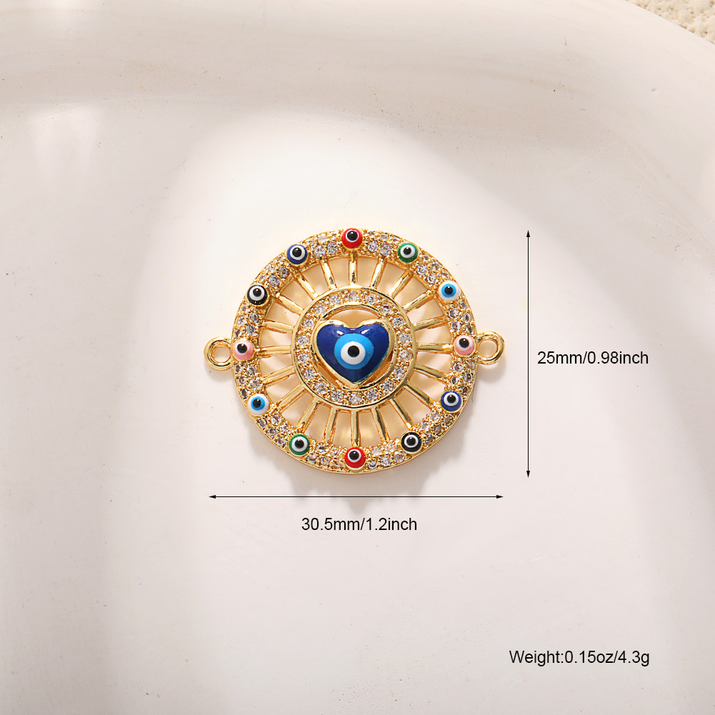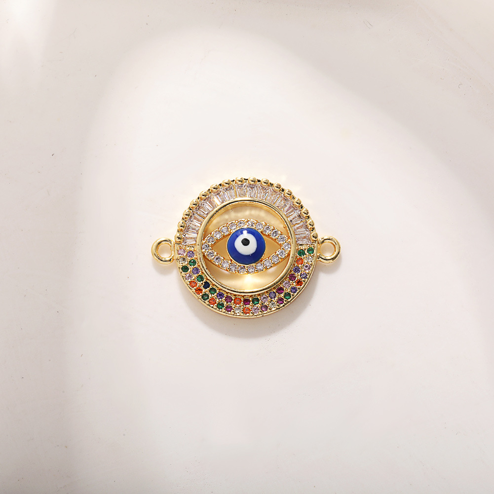 Evil Eye Connector Brass real gold plated DIY & micro pave cubic zirconia & enamel Sold By PC