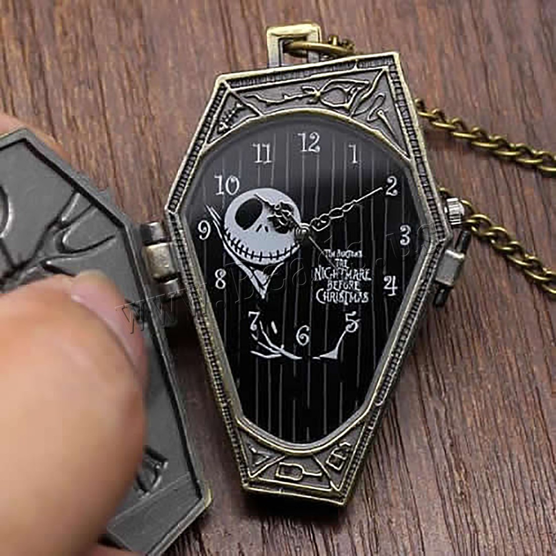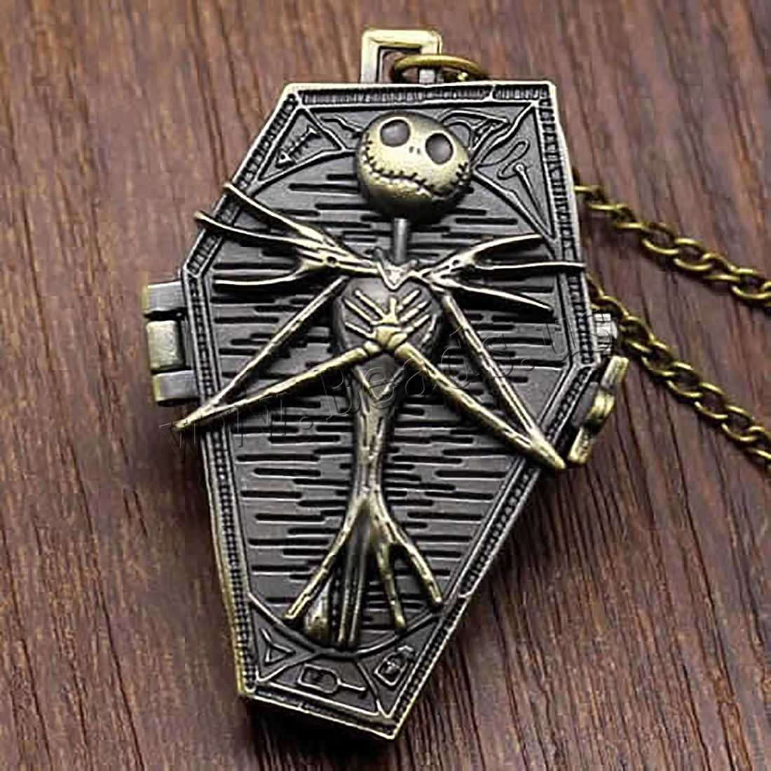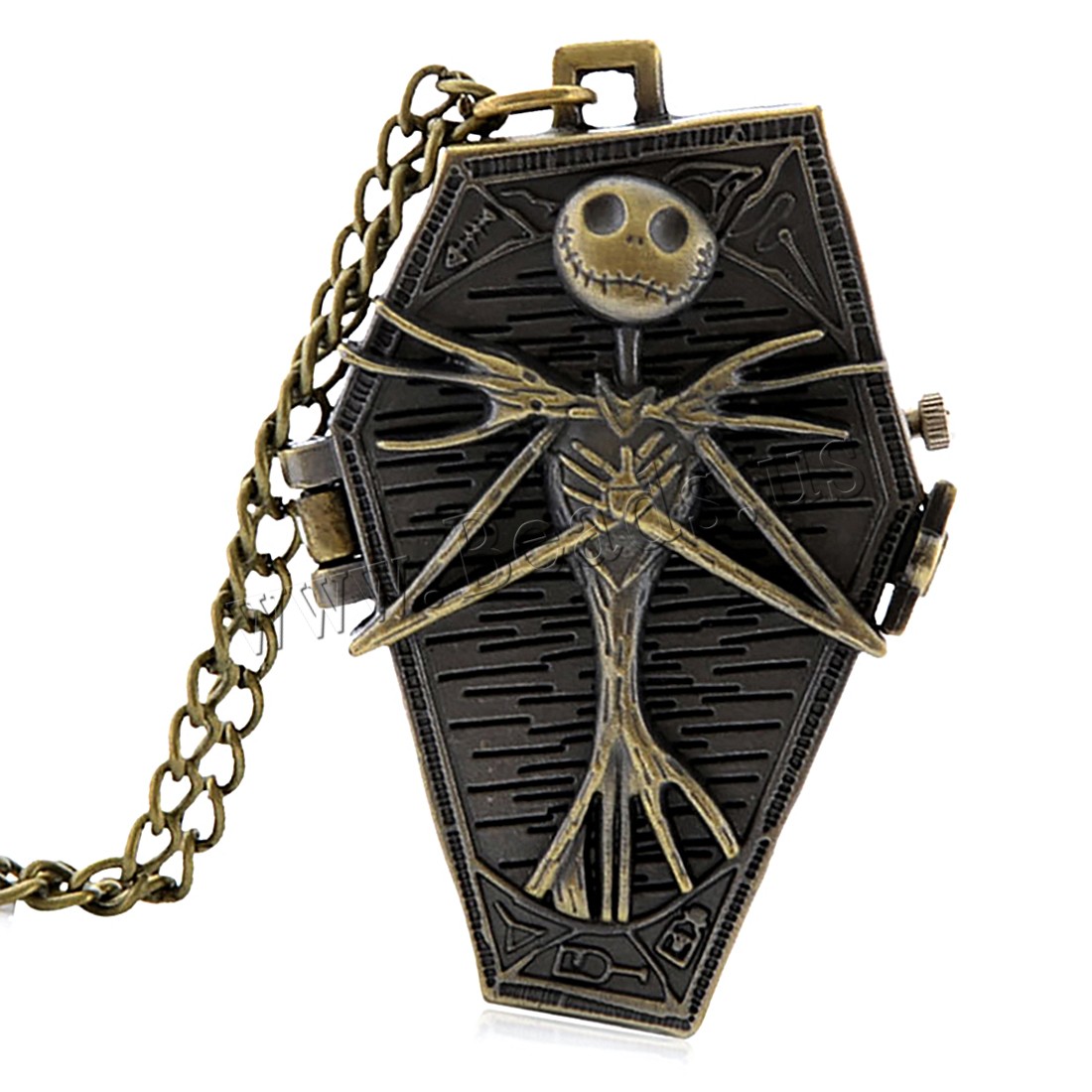 Fashion Watch Necklace Zinc Alloy with stainless steel chain & Glass Skull antique bronze color plated twist oval chain Sold Per Approx 31 Inch Strand