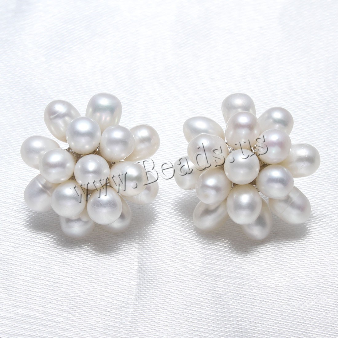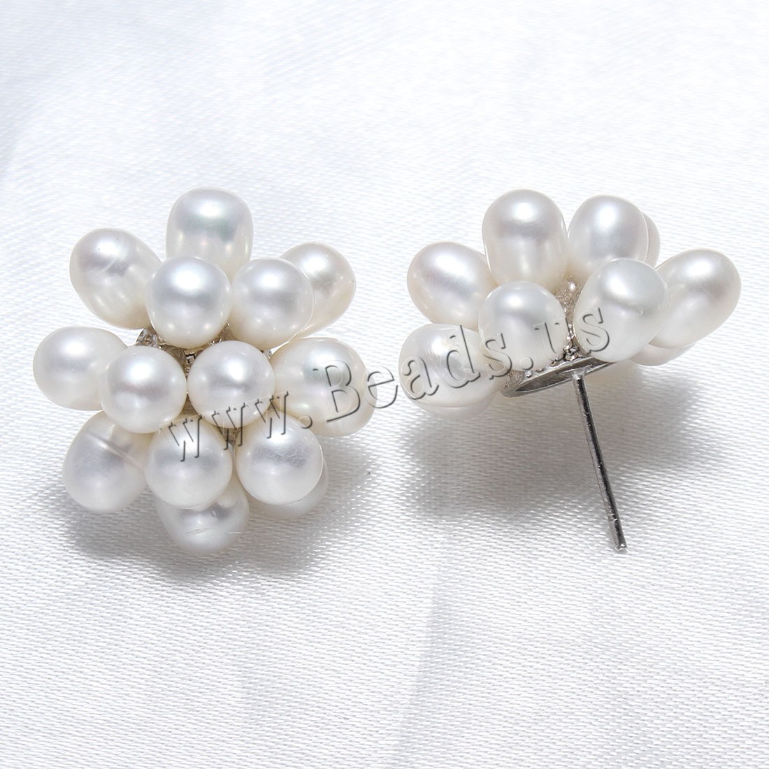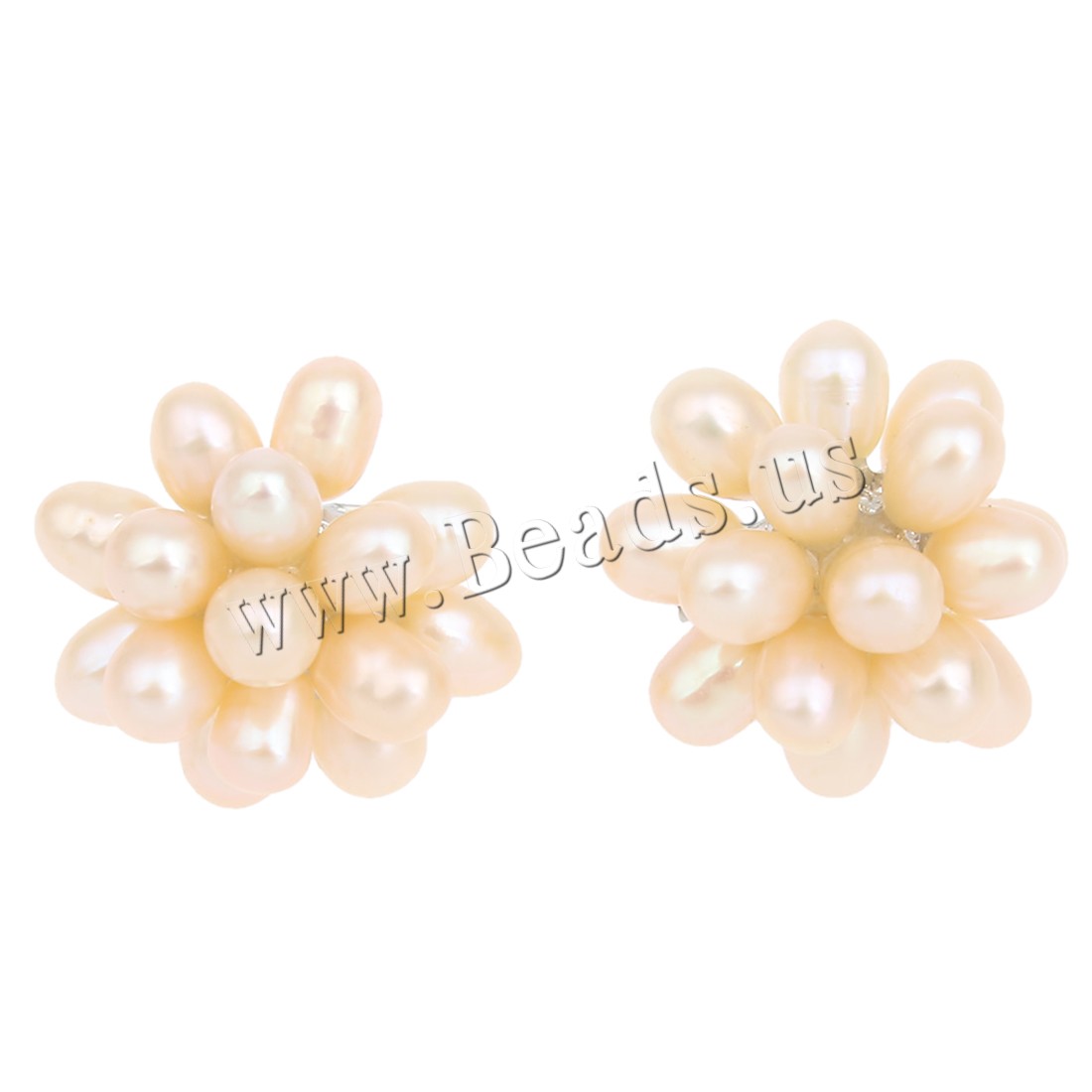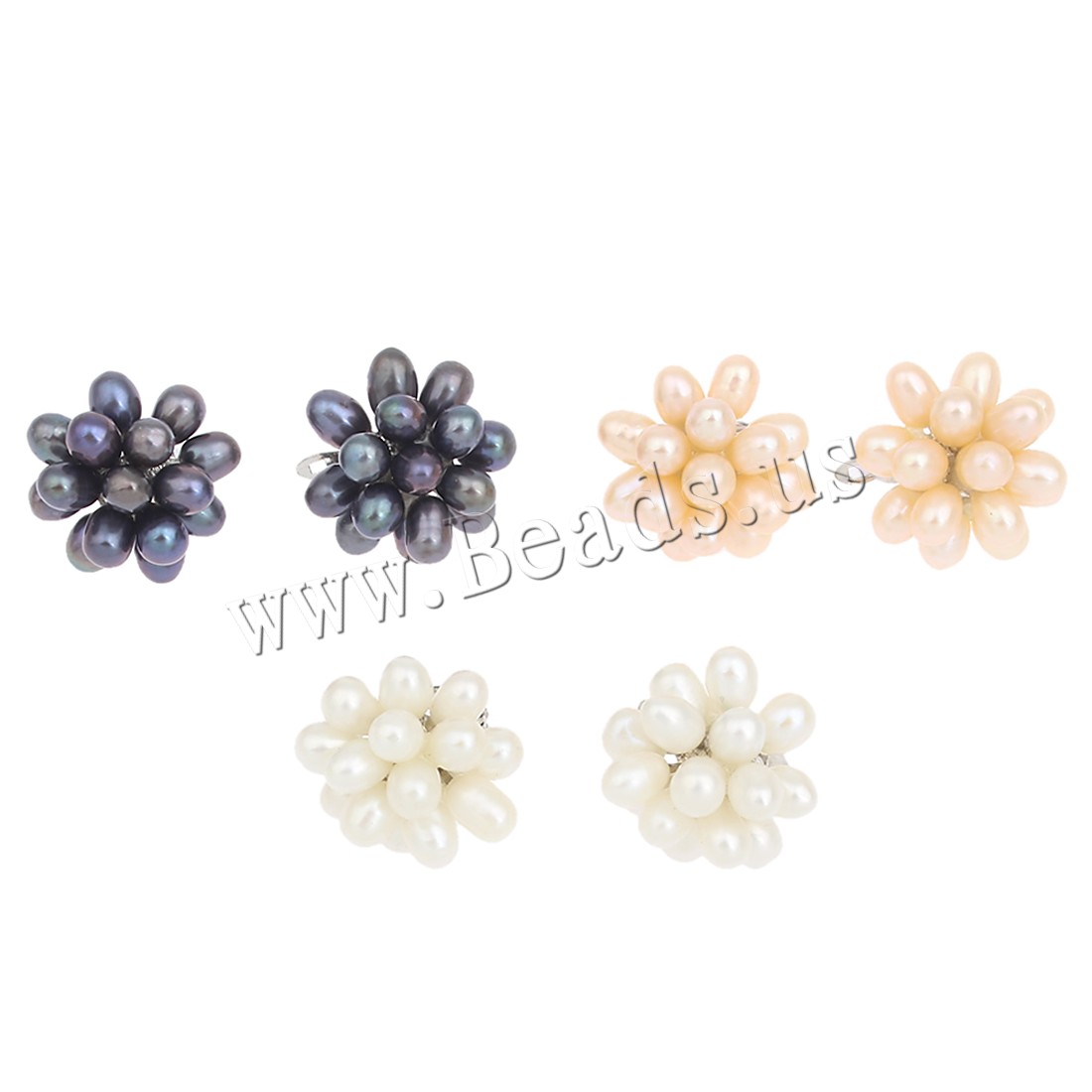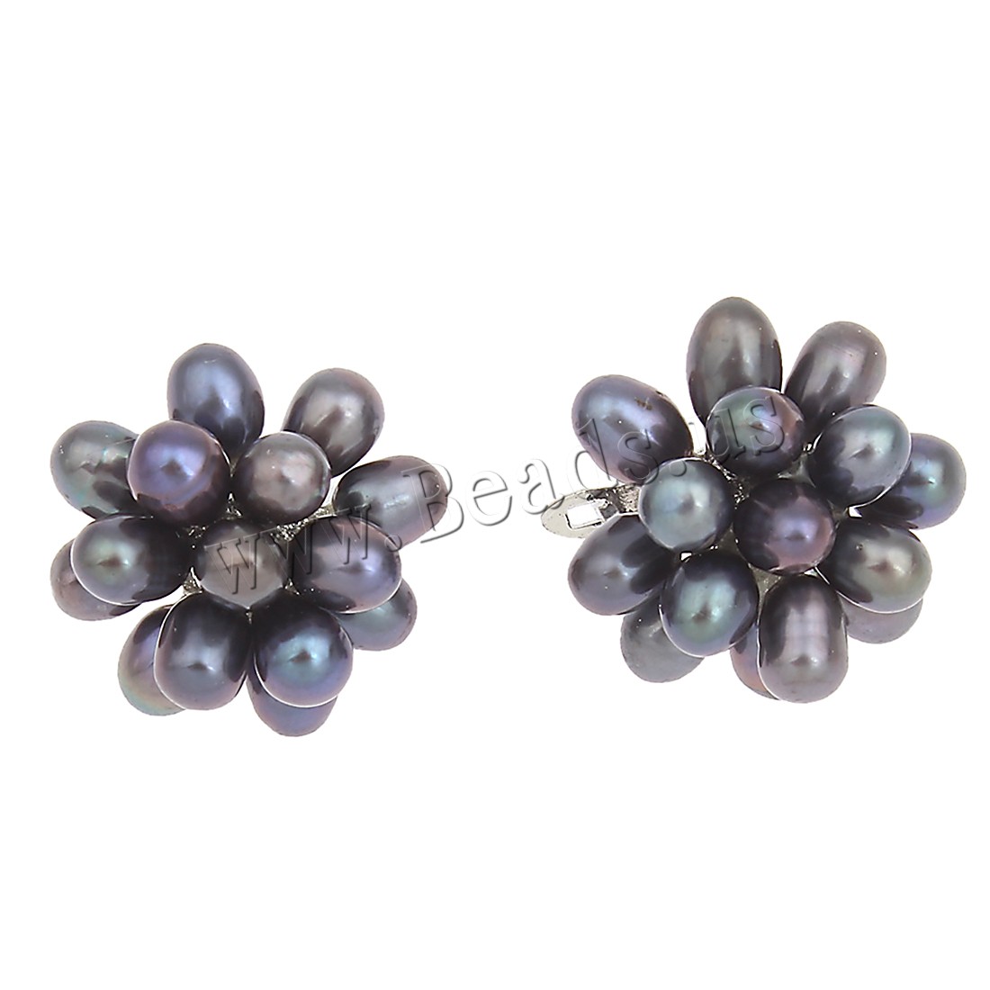 Freshwater Pearl Cluster Earring with Brass Flower silver color plated dyed 4-5mm Sold By Pair
