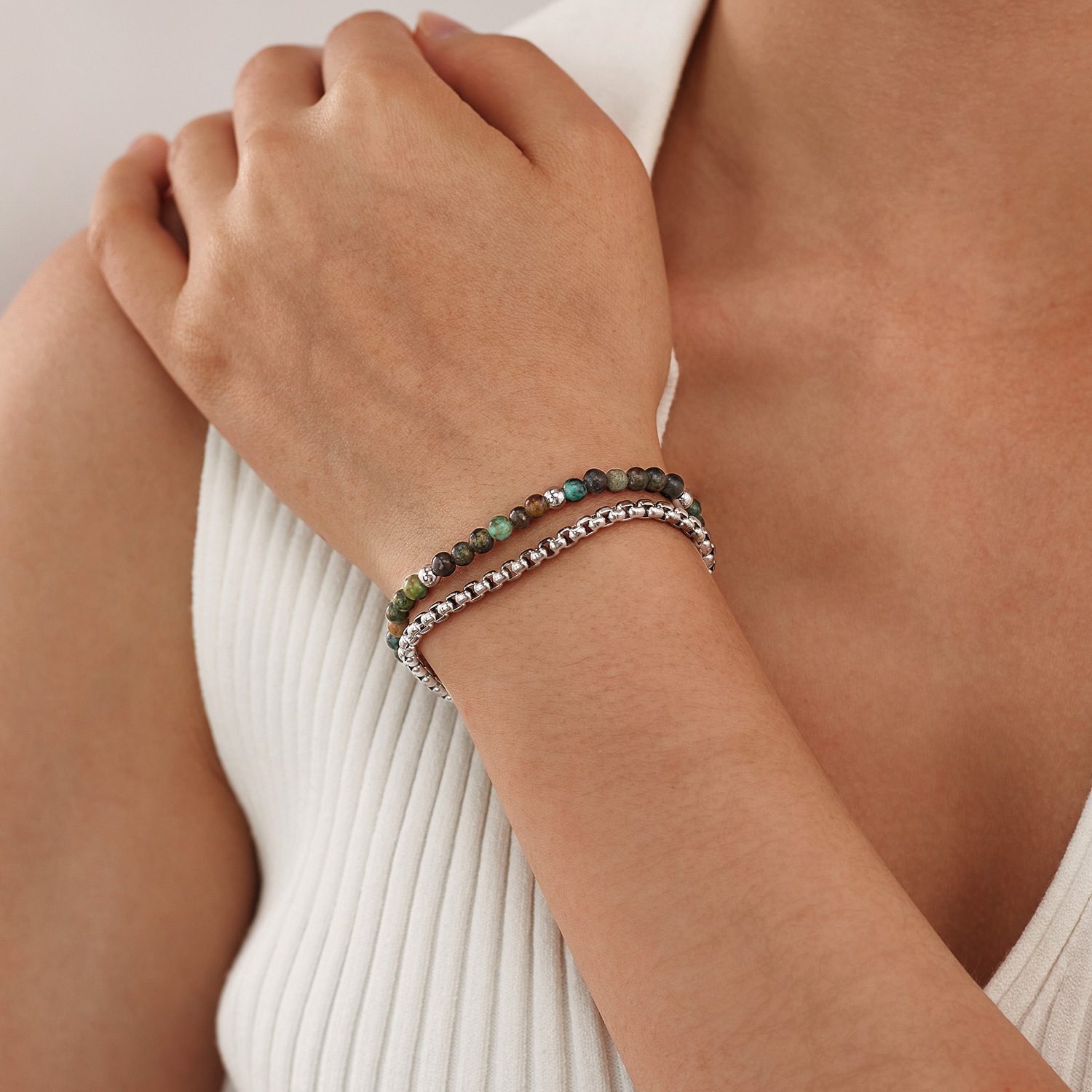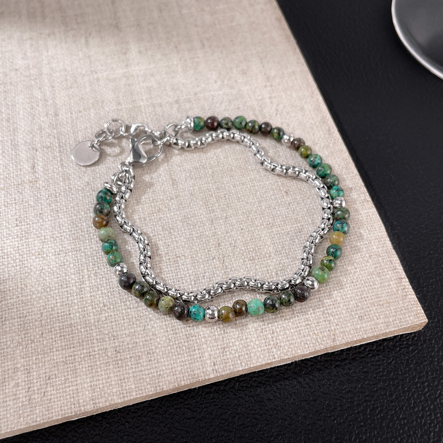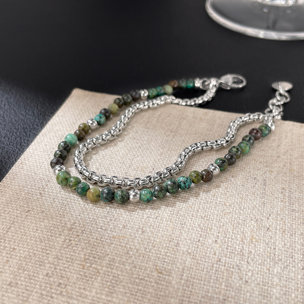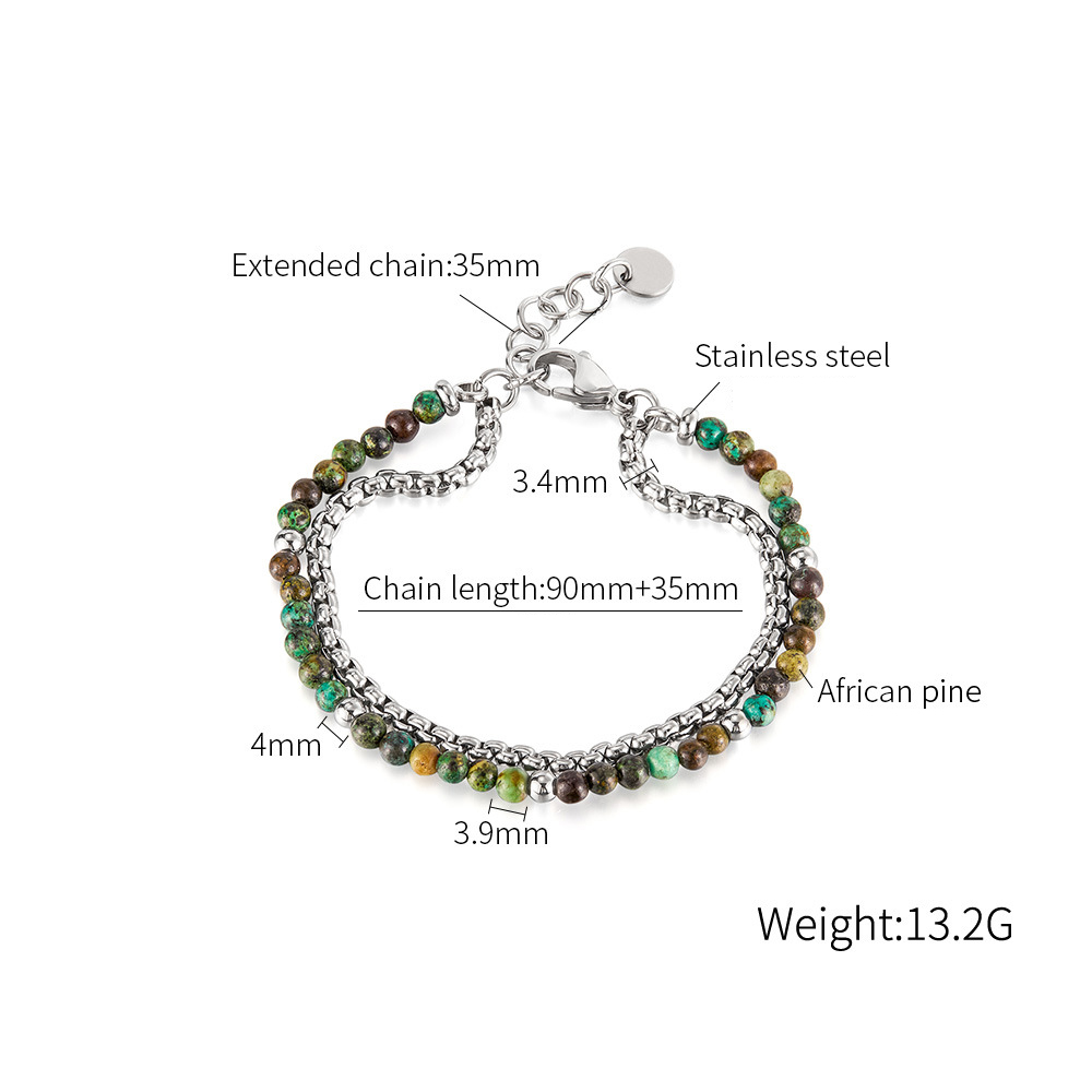 Gemstone Bracelets 304 Stainless Steel with African Turquoise polished Double Layer & fashion jewelry & Unisex Sold By PC