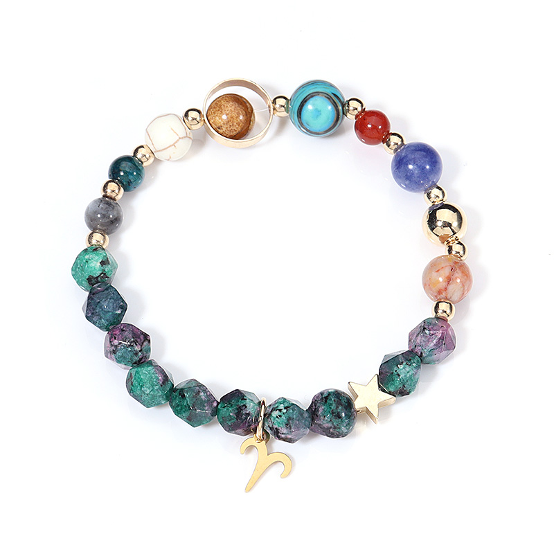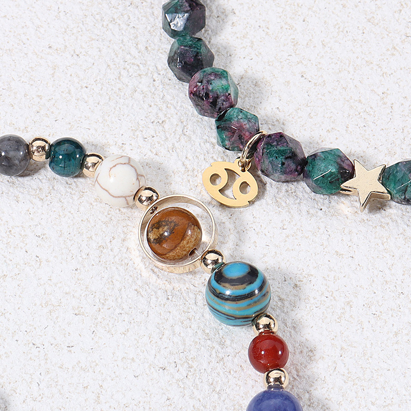 Gemstone Bracelets 304 Stainless Steel with Ruby in Zoisite 12 Signs of the Zodiac plated fashion jewelry 6-8mm Sold Per 19 cm Strand