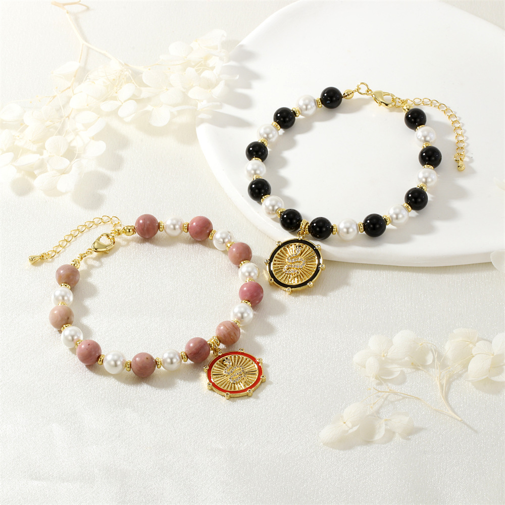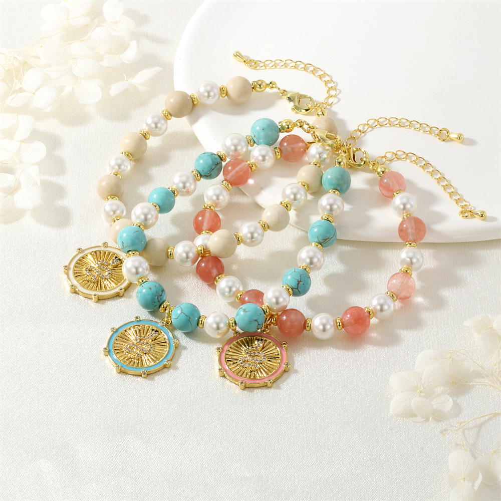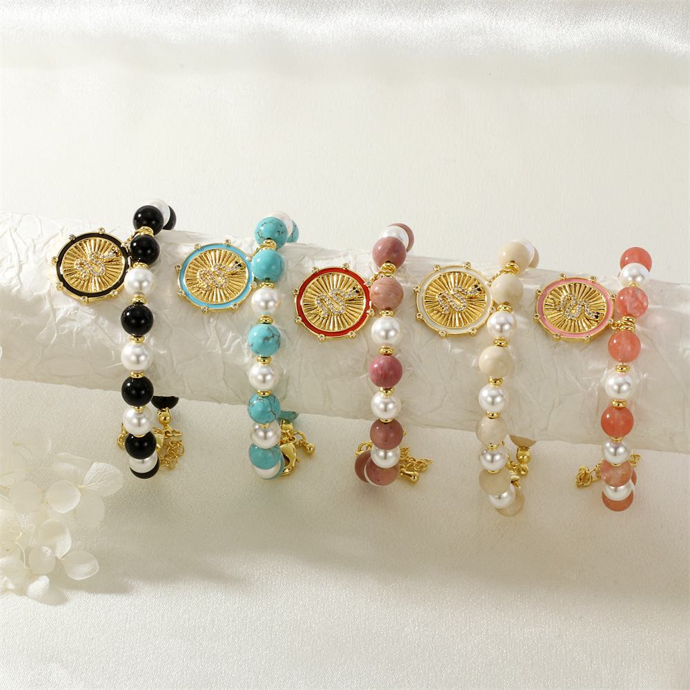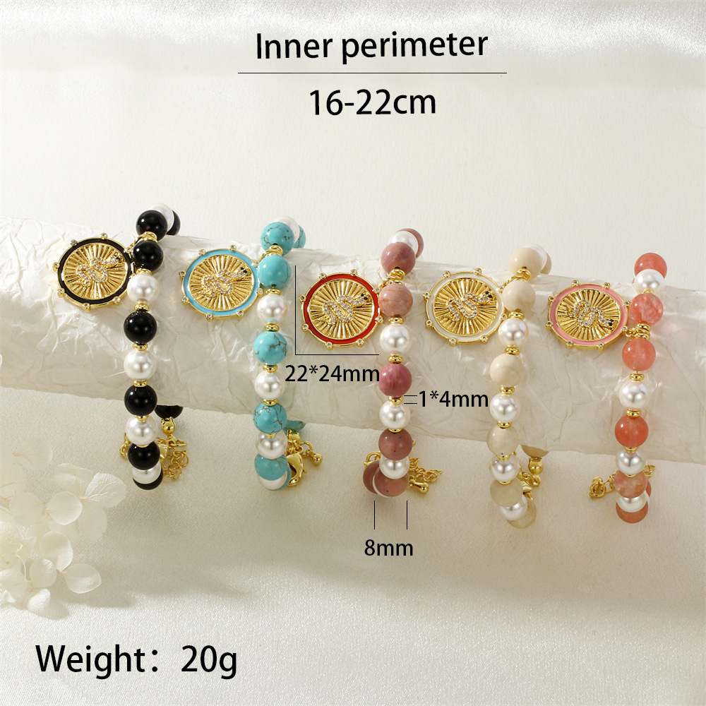 Gemstone Bracelets Brass with Natural Stone & Shell gold color plated & micro pave cubic zirconia & for woman & enamel nickel lead & cadmium free Sold By PC