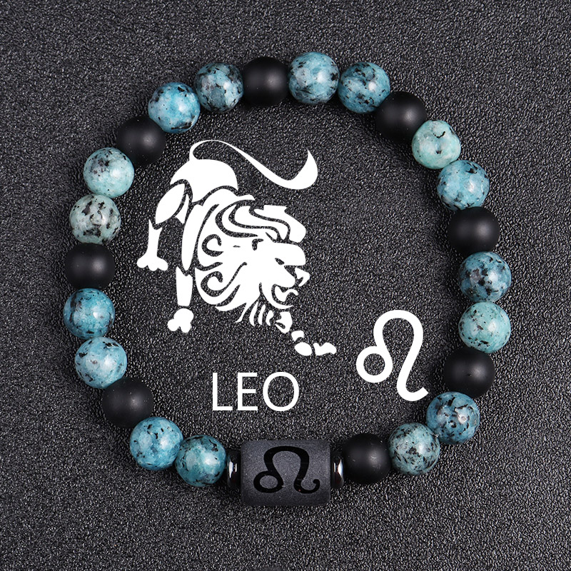 Gemstone Bracelets Brass with Obsidian & Blue Agate 12 Signs of the Zodiac plated fashion jewelry Sold Per 19 cm Strand