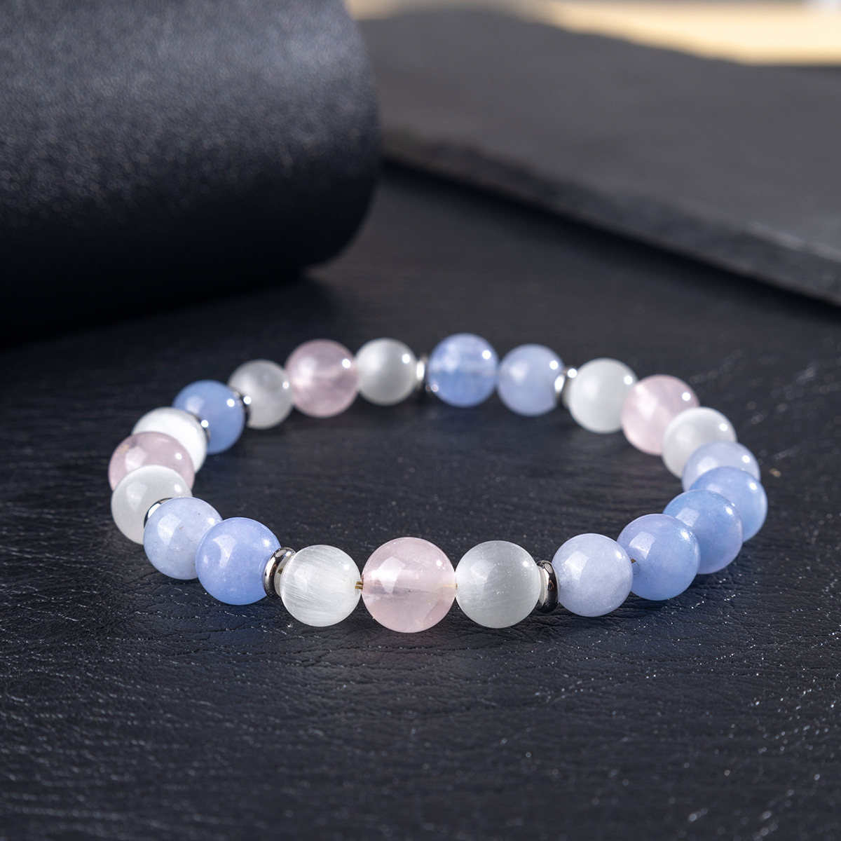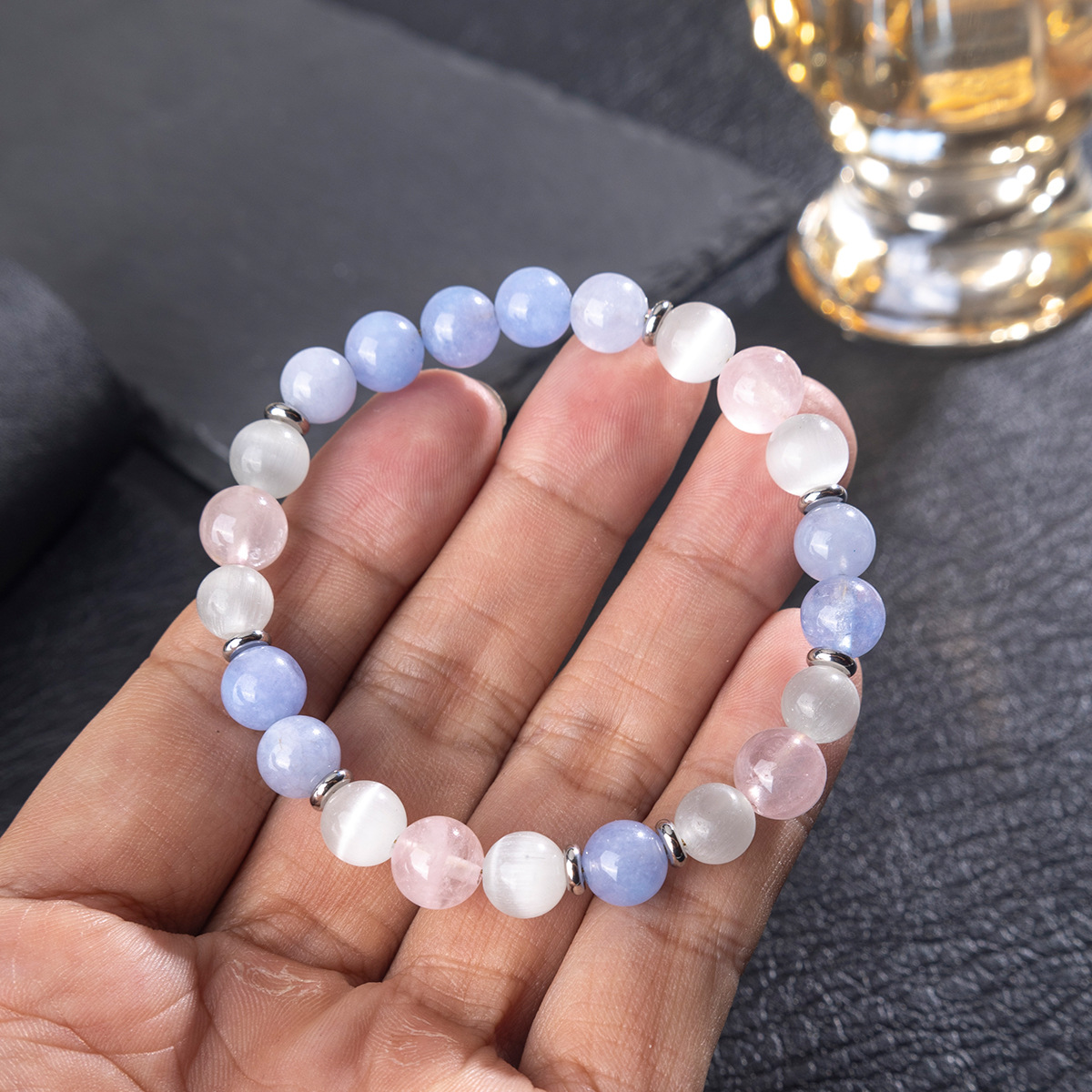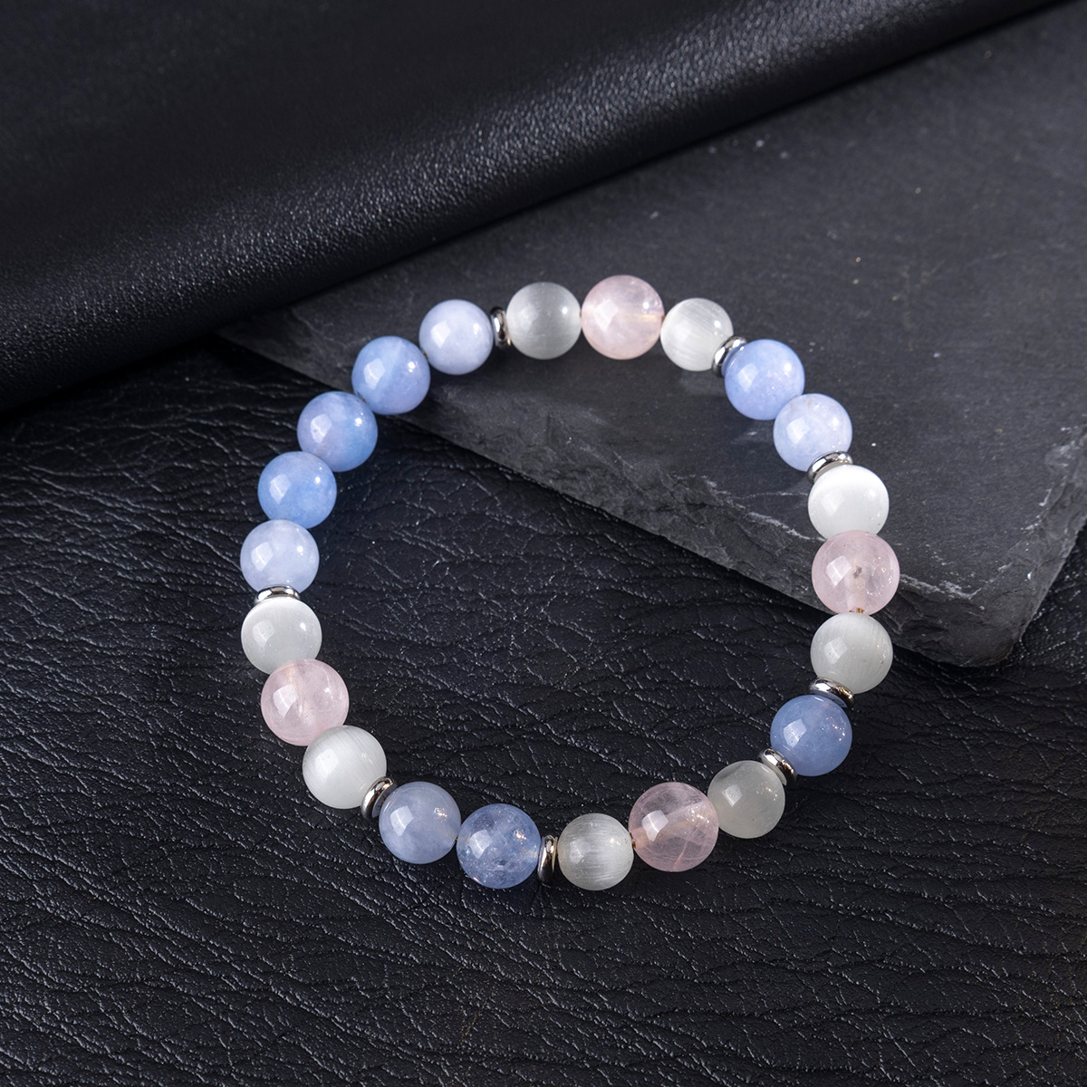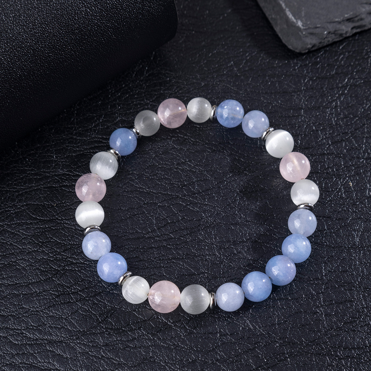Gemstone Bracelets Cats Eye with Elastic Thread & Aquamarine & Rose Quartz handmade fashion jewelry & for woman Sold By PC