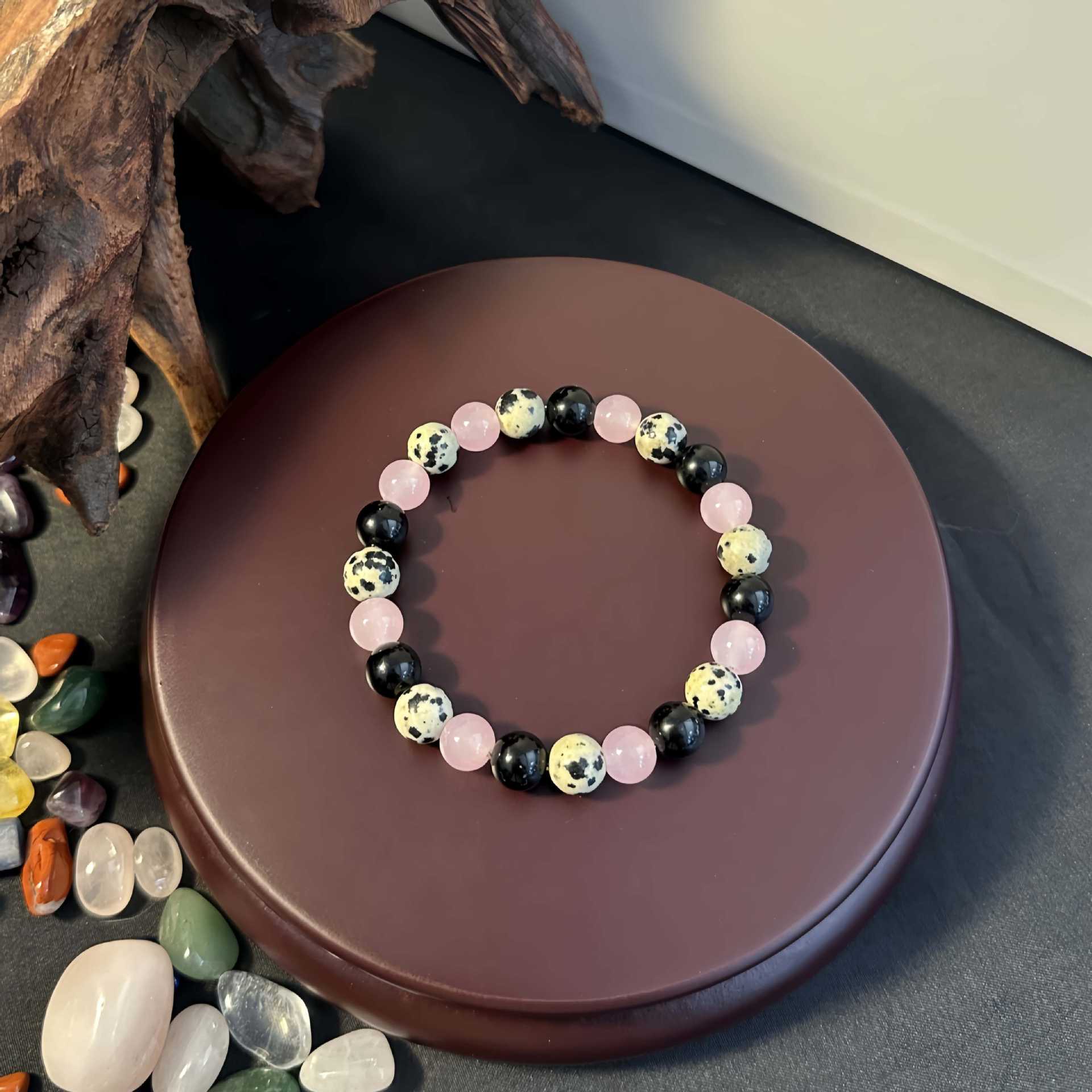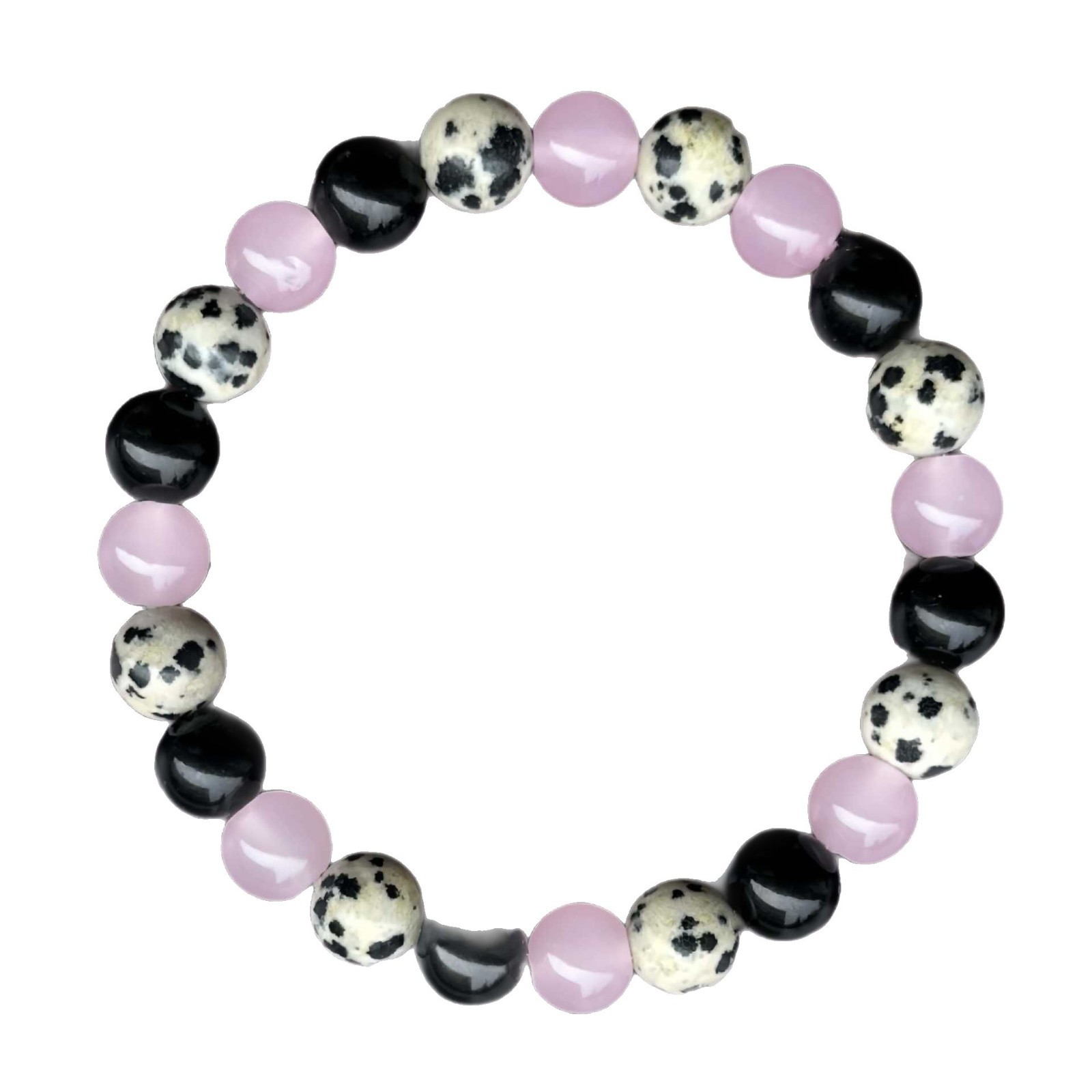 Gemstone Bracelets Dalmatian with Obsidian & Rose Quartz gold color plated fashion jewelry Sold By PC