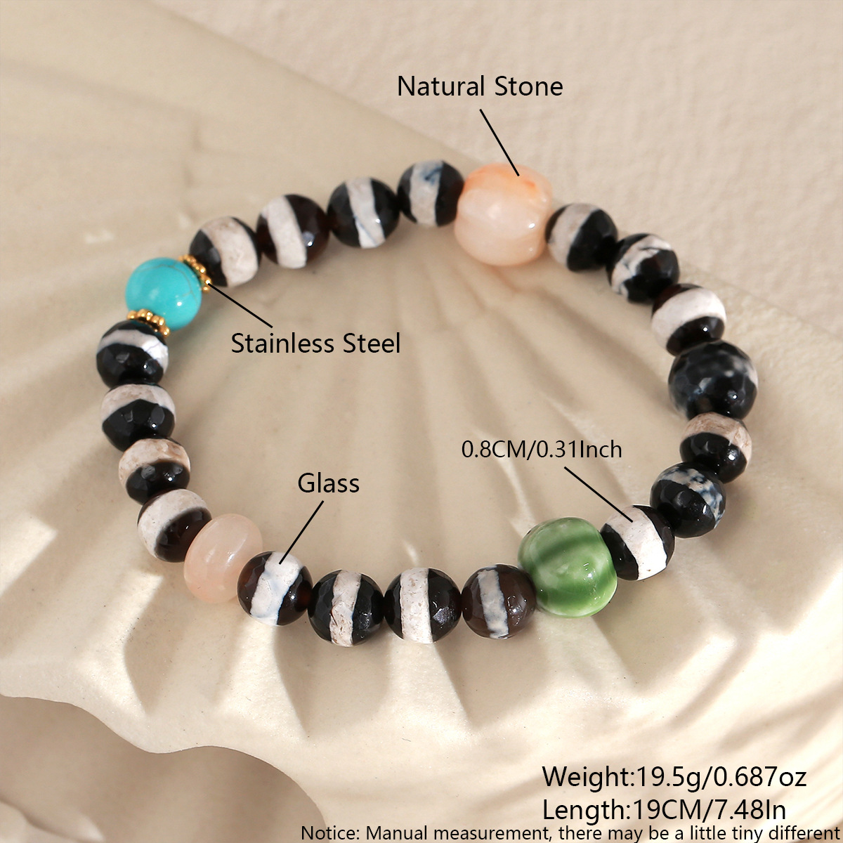 Gemstone Bracelets Glass with Natural Stone & 304 Stainless Steel handmade fashion jewelry & Unisex multi-colored Sold By PC