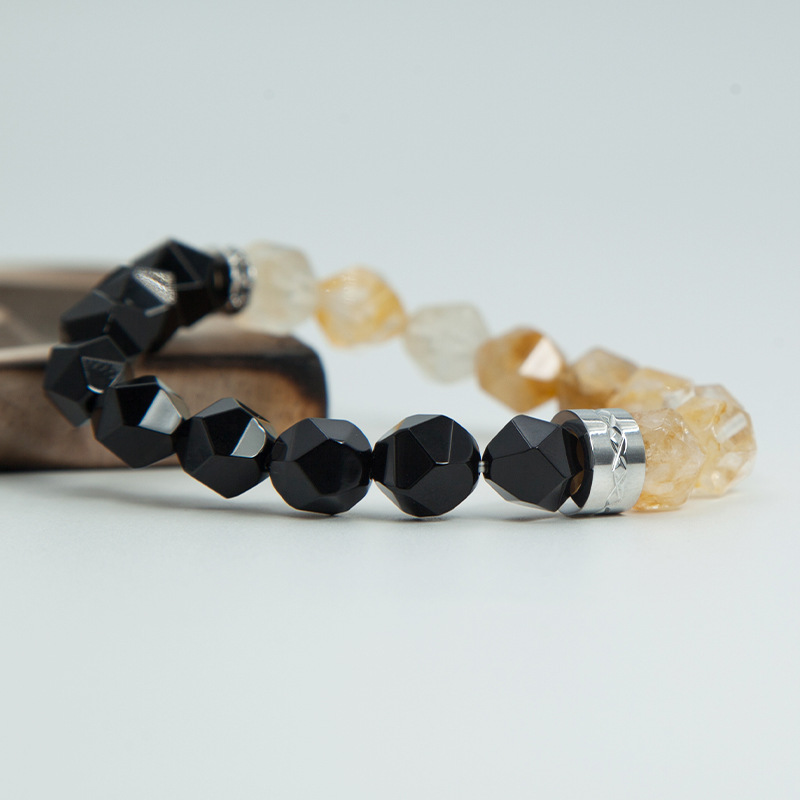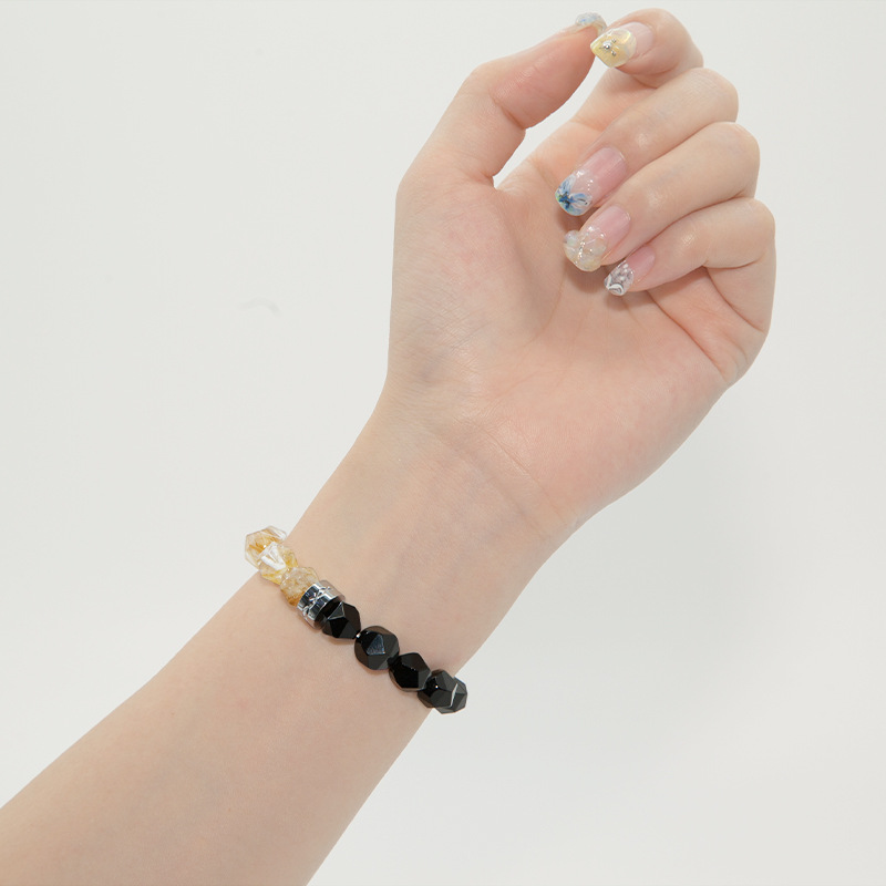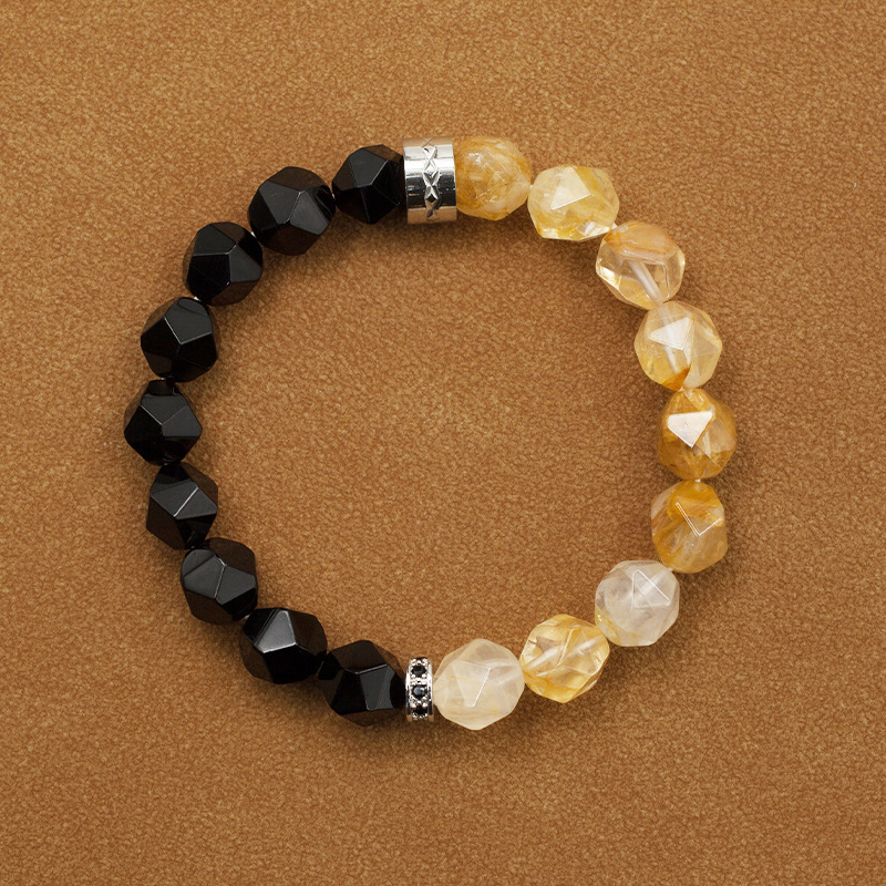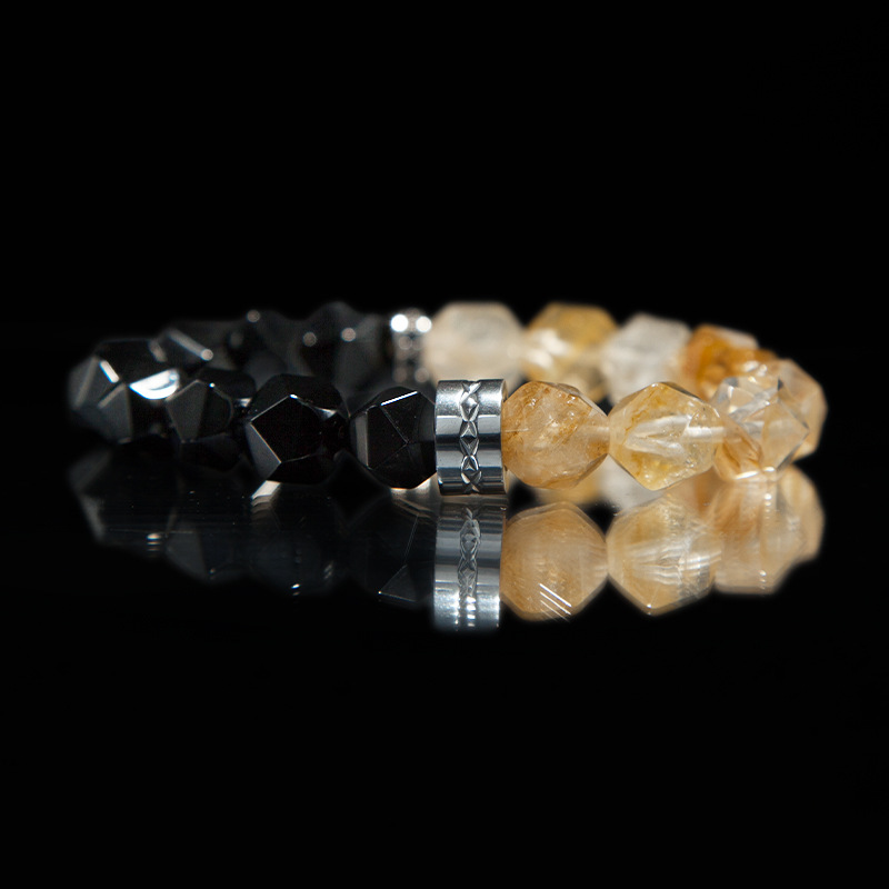Gemstone Bracelets Golden Healer Quartz with Titanium Steel & Black Agate fashion jewelry mixed colors 10mm Length 20 cm Sold By PC